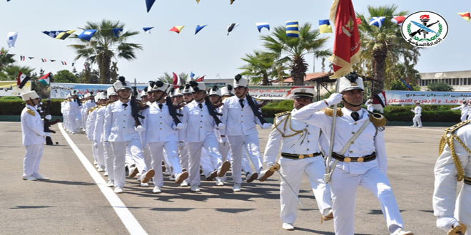 Bajo los auspicios del presidente Bashar al-Assad, comandante en jefe del Ejército y las Fuerzas Armadas, y en conmemoración del 73º aniversario de las Fuerzas Navales y Defensa Costera, se celebró la egresión de una nueva promoción de cadetes de la Academia Marítima.