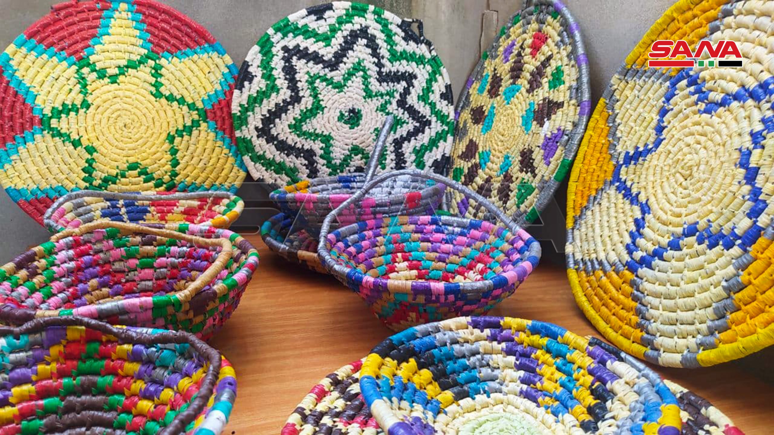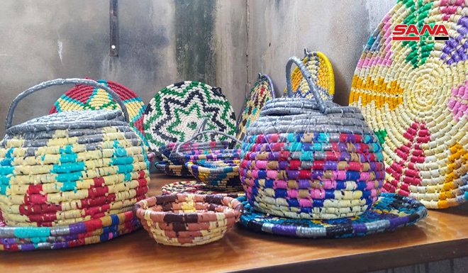 Creatividad y talento de una mujer siria que fabrica cestas y platos de paja