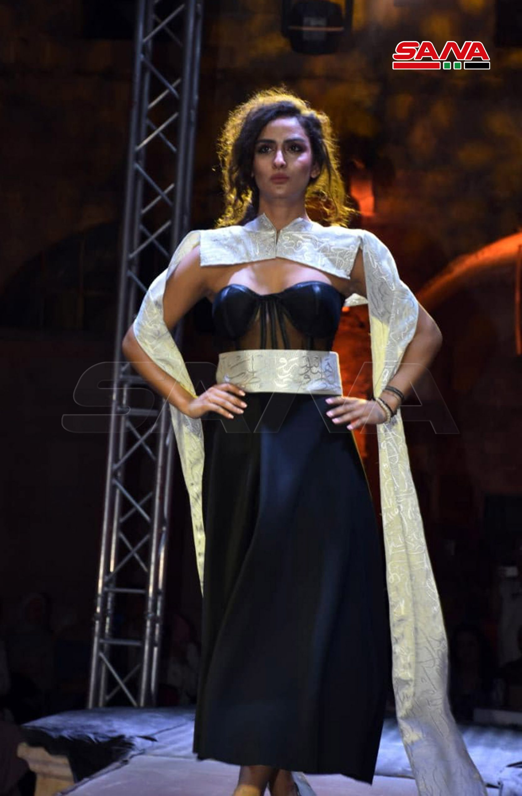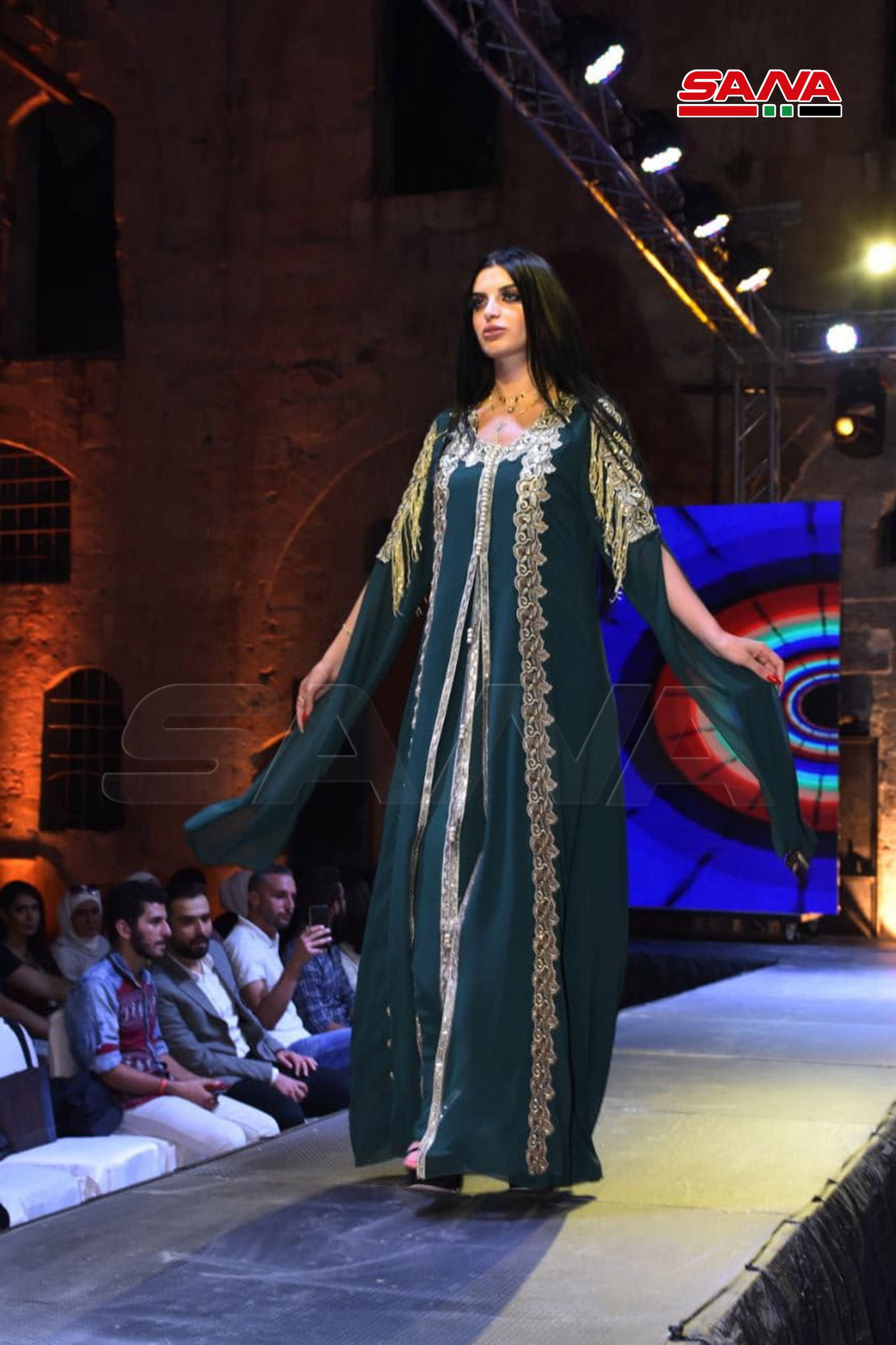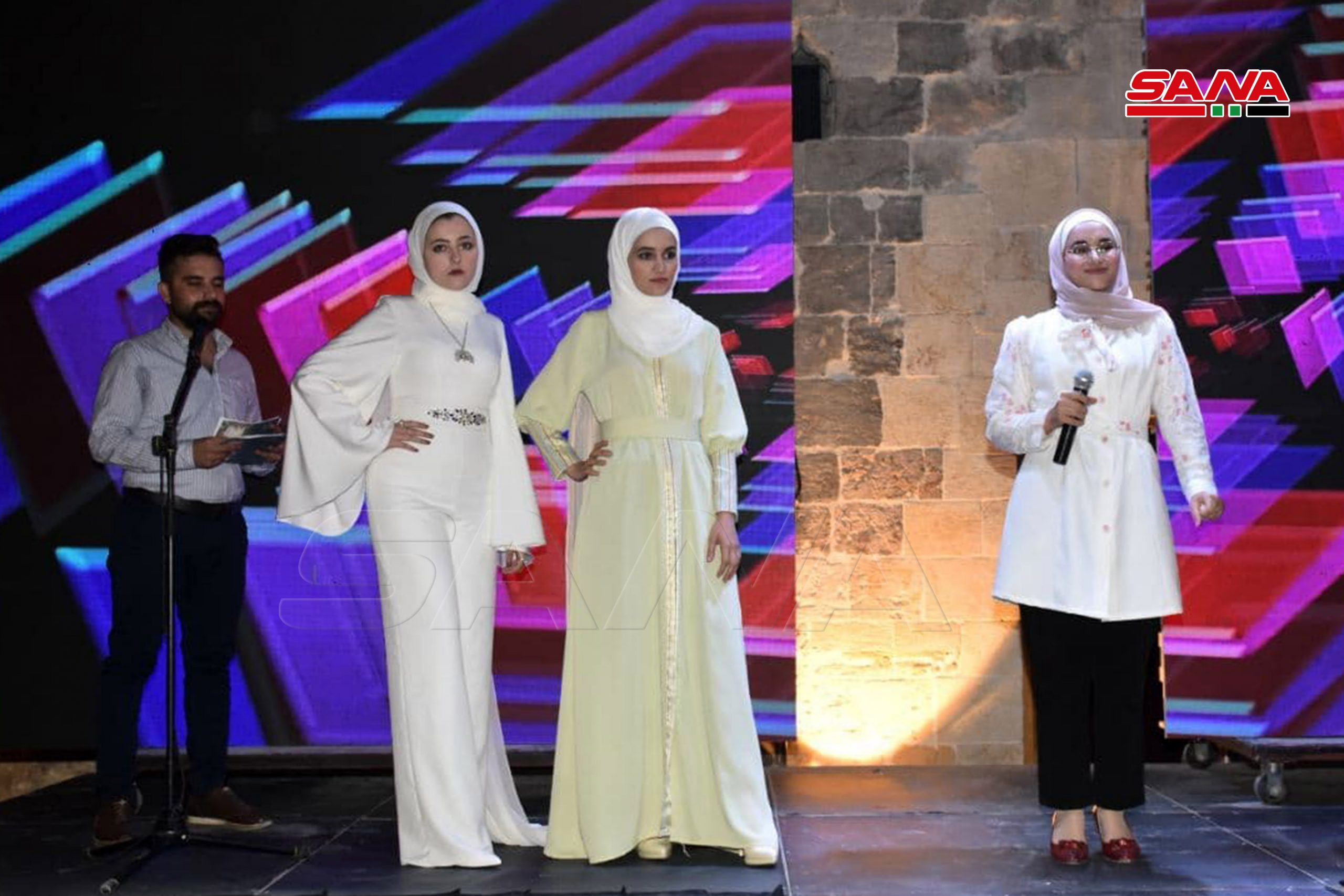 Durante la ceremonia, un grupo de estudiantes de la Facultad de Bellas Artes de la Universidad de Alepo presentó un conjunto de trajes y diseños que imitan la antigua vestimenta árabe en Alepo y algunos países árabes.