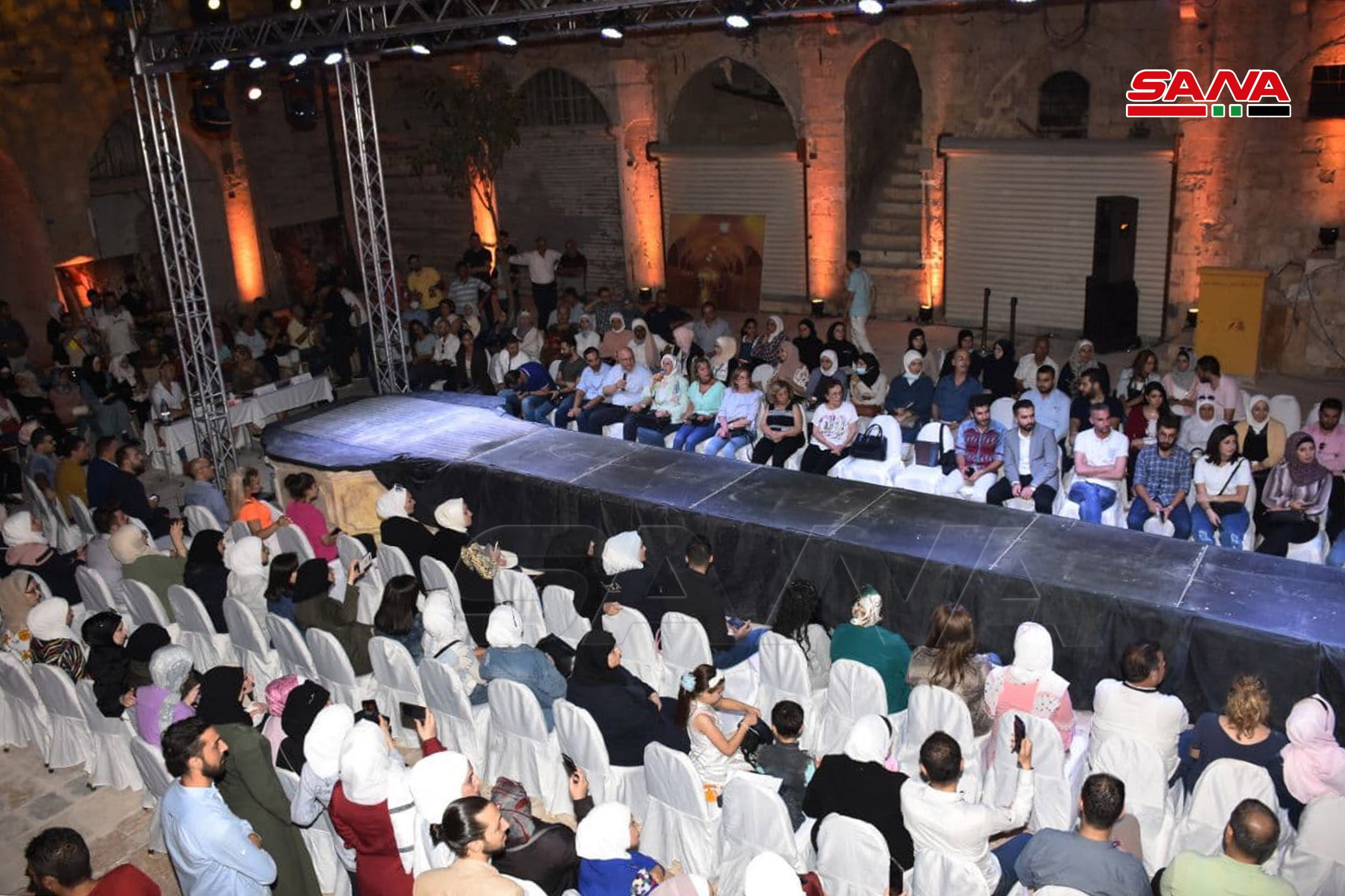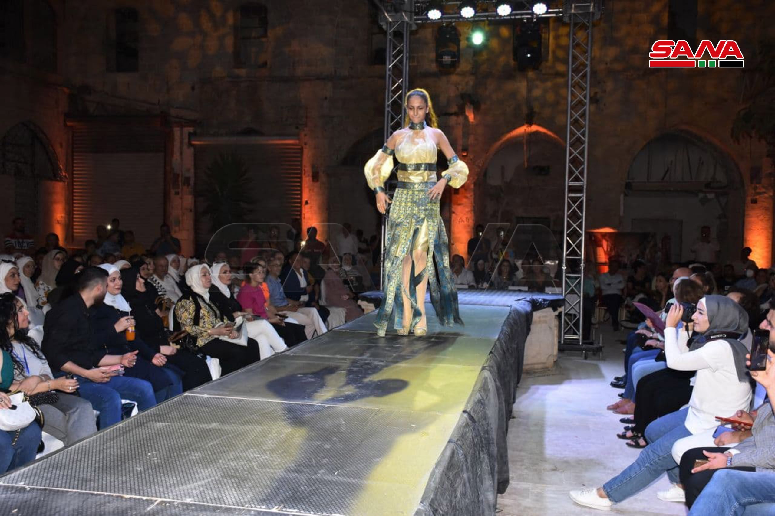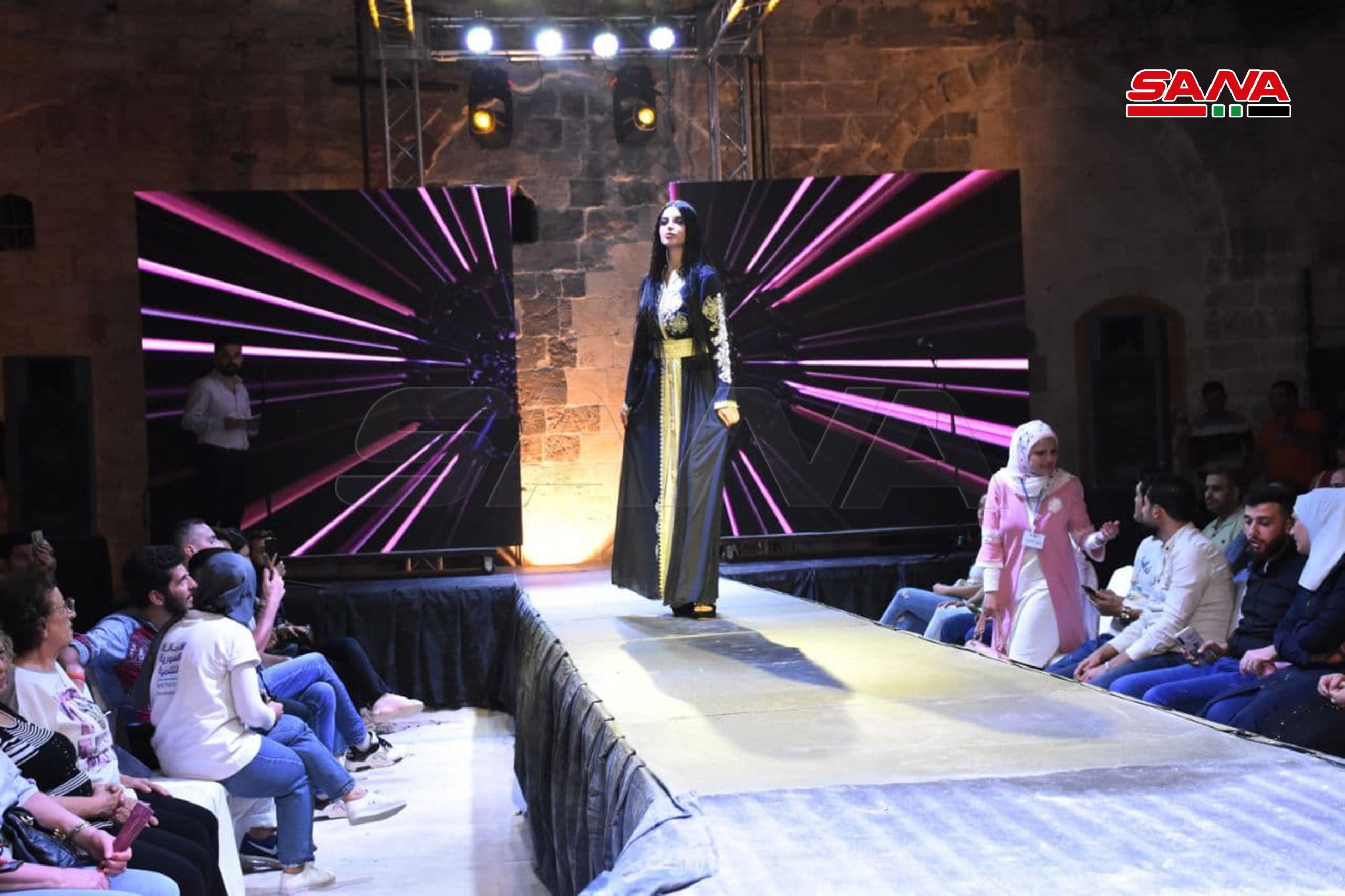 Durante la ceremonia, un grupo de estudiantes de la Facultad de Bellas Artes de la Universidad de Alepo presentó un conjunto de trajes y diseños que imitan la antigua vestimenta árabe en Alepo y algunos países árabes.