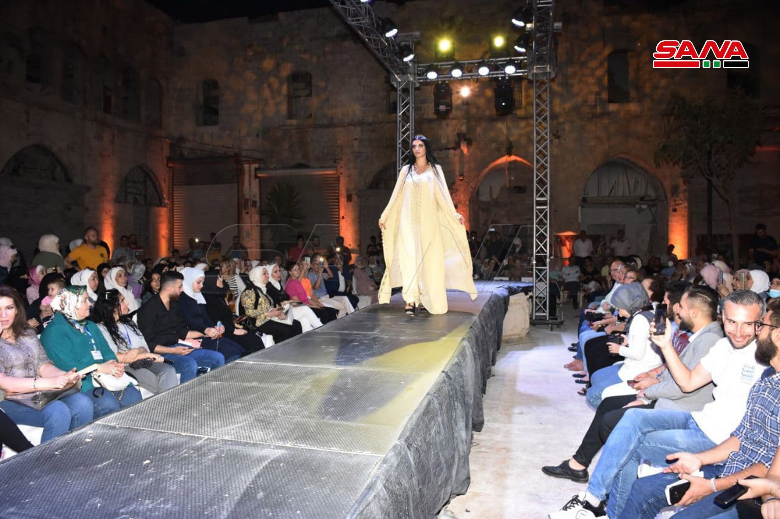 Con motivo de la reapertura del zoco Khan Al Harir y la plaza al-Fustuk en el casco antiguo de Alepo, se celebró un desfile de moda tradicional dentro como parte de las actividades de las “Noches de Alepo” organizadas por la provincia de Alepo y la Fundación Siria para el Desarrollo.