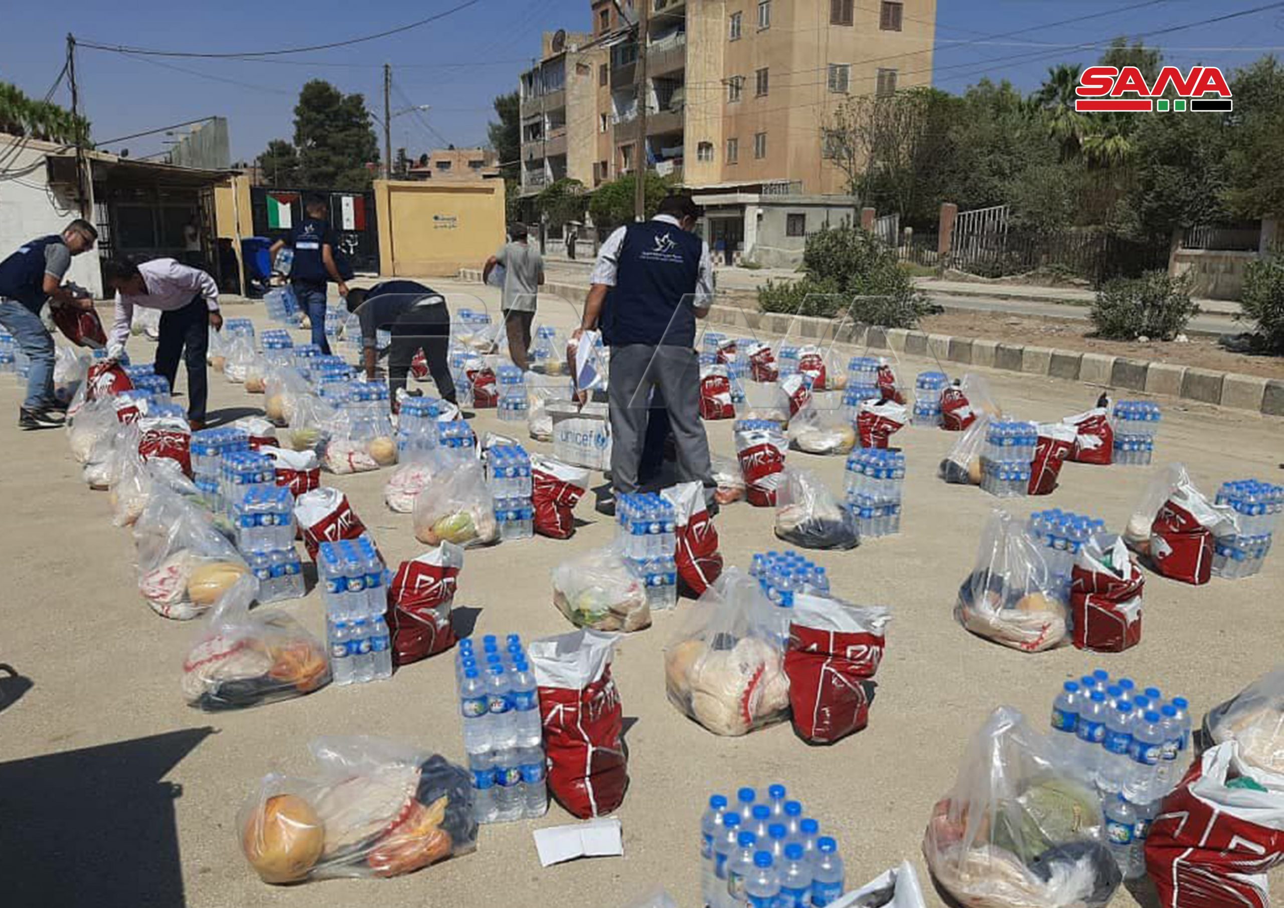 En este contexto, Ibrahim Khalaf, Director de Asuntos Sociales y Trabajo, declaró que el Subcomité, en cooperación con la Media Luna Roja Árabe Siria y varias organizaciones benéficas, proporcionaron canastas de alimentos a las familias desplazadas, además de pan y agua mineral.