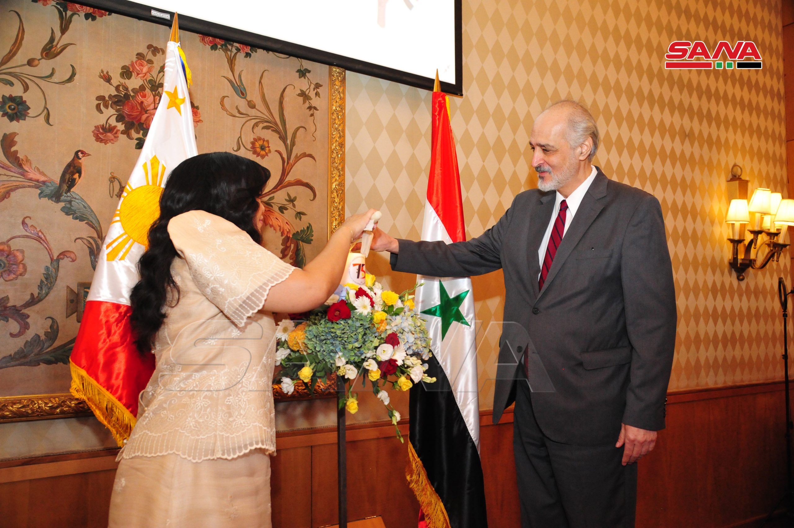 El viceministro de Exteriores y Expatriados, Bashar al-Jaafari, destacó en un discurso, la profunda amistad entre los dos países, y señaló que Siria fue uno de los primeros cinco países que reconoció la independencia de Filipinas en 1946.