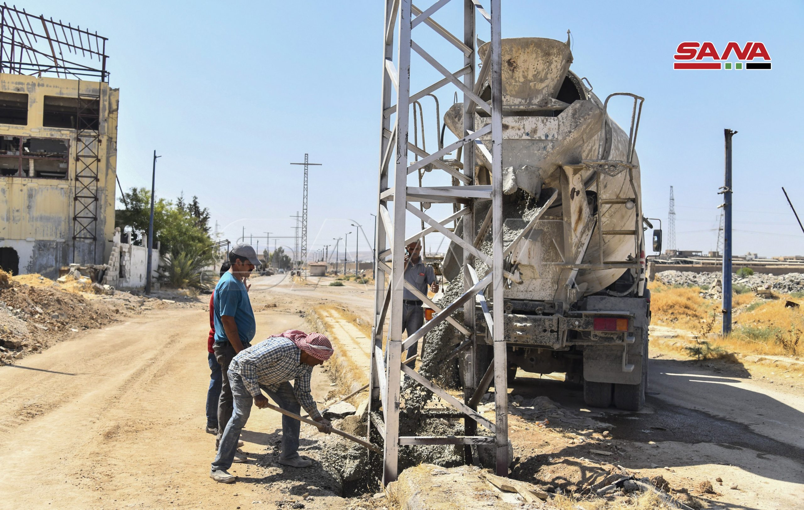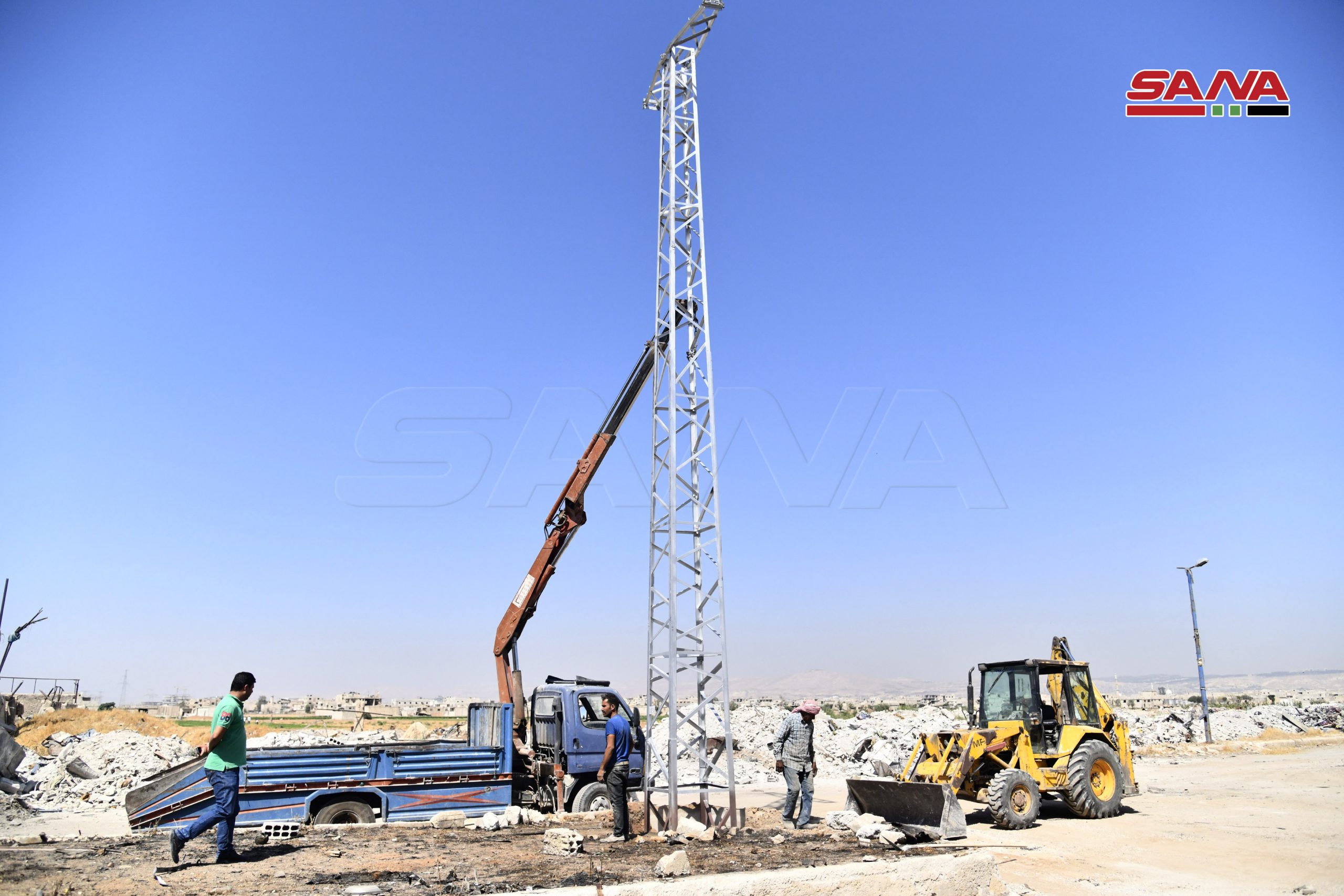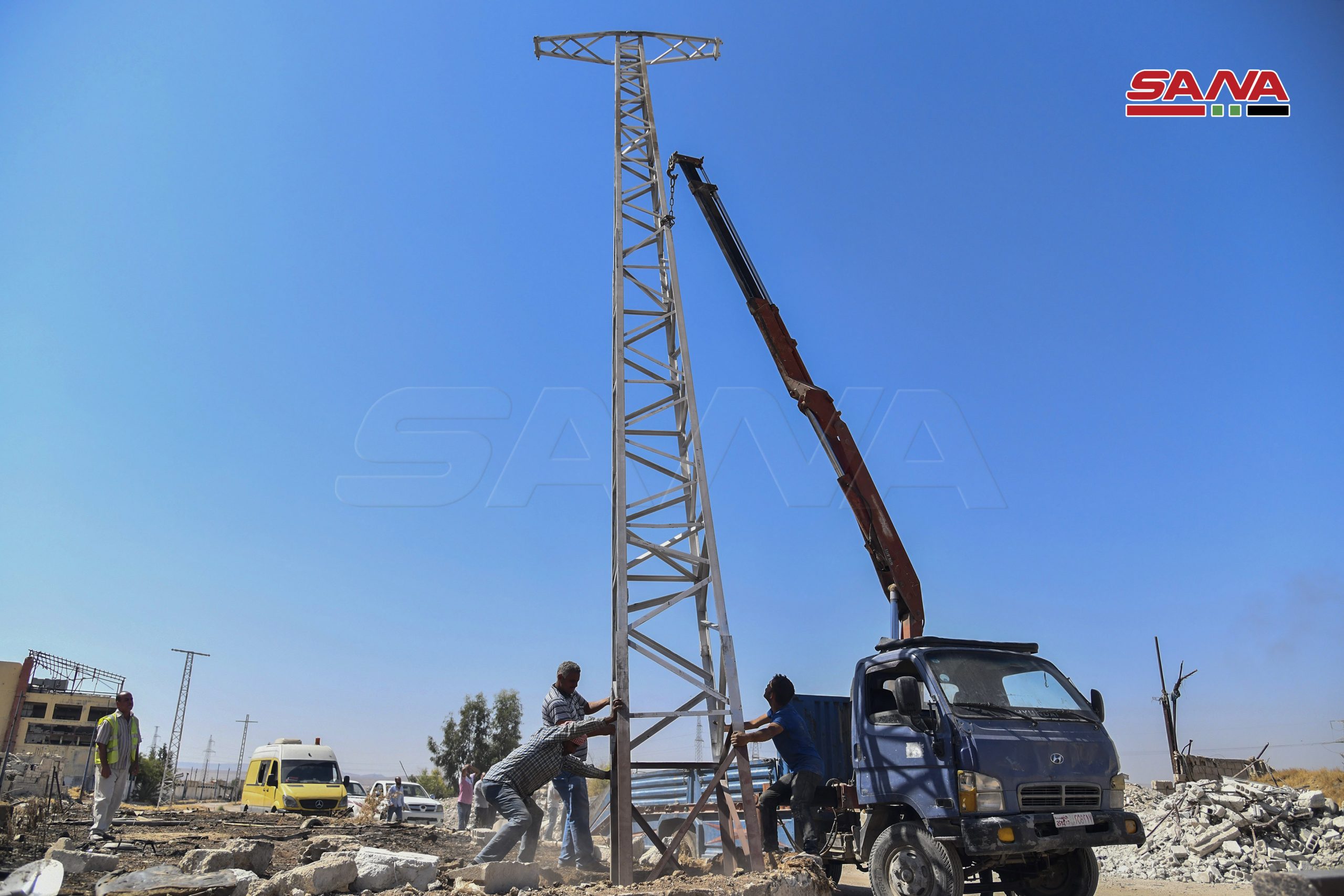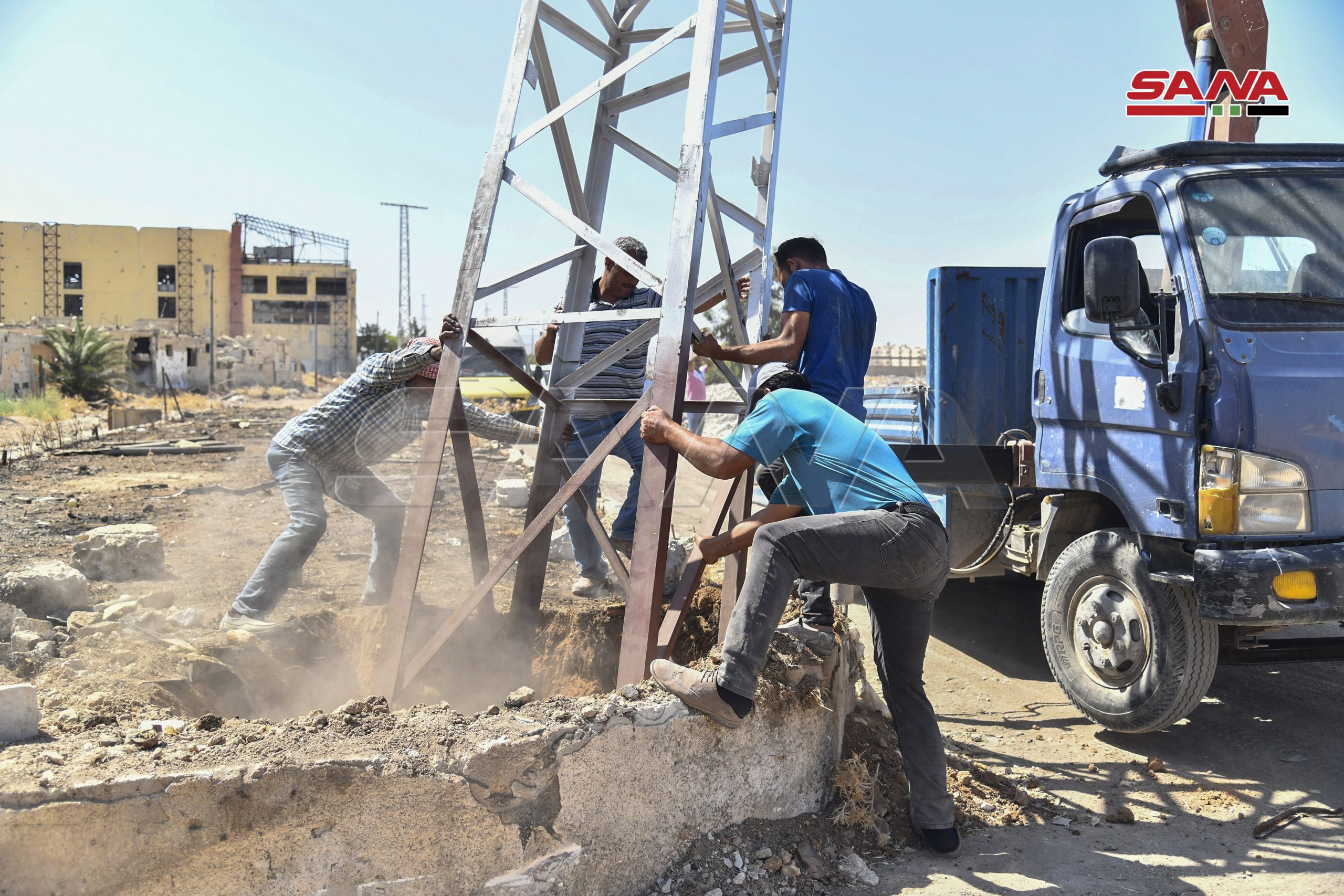 Obras de rehabilitación del sistema eléctrico dañado por el terrorismo en Hajjar Assawd