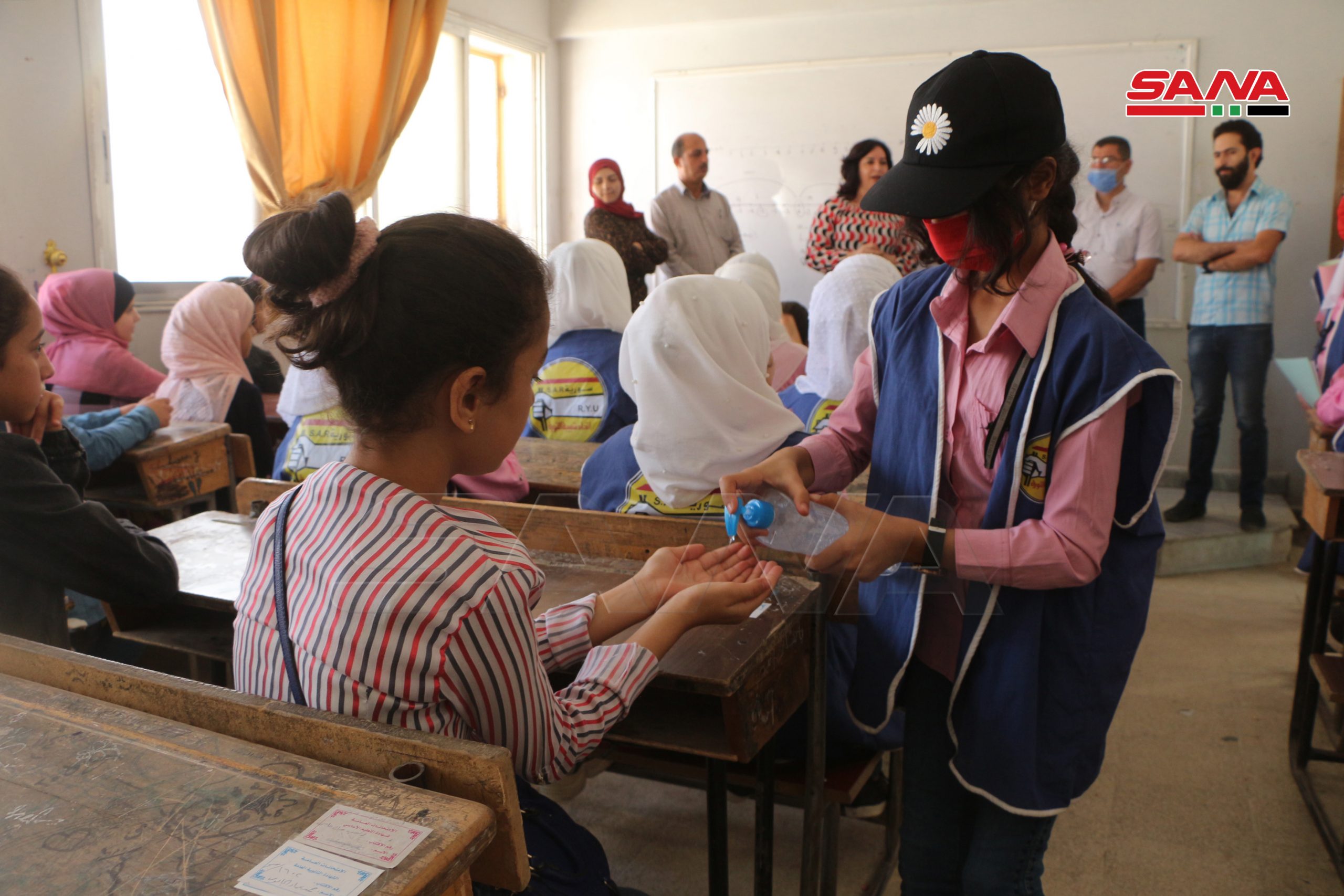 La Unión de la Juventud Revolucionaria en la provincia sureña de Deraa organizó una jornada para esterilizar y desinfectar los centros de enseñanza bajo el lema: “Tu escuela es tu responsabilidad”.