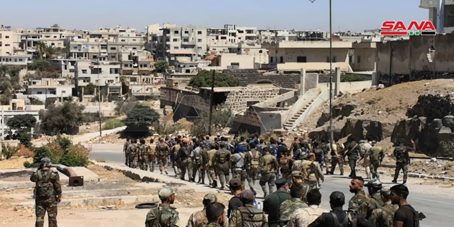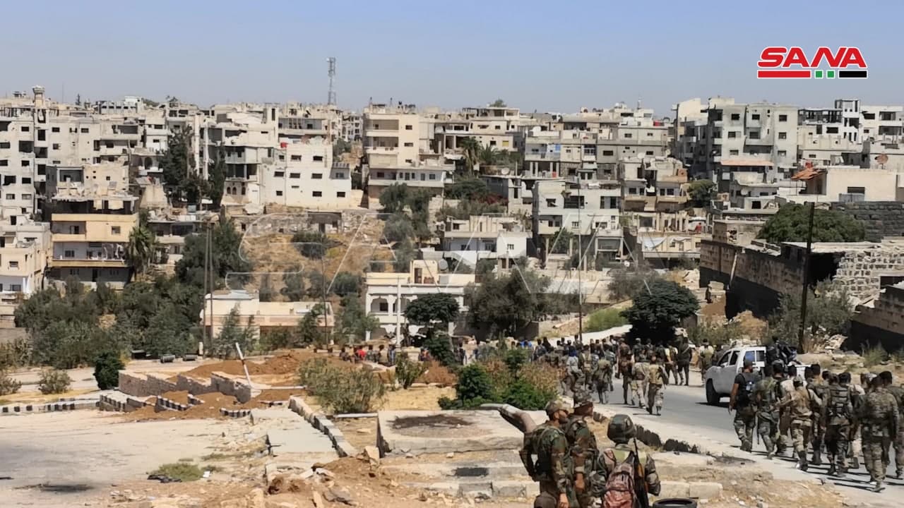Unidades del Ejército Árabe Sirio y de las Fuerzas de Seguridad entraron hoy en el vecindario de Deraa al-Balad, en implementación del acuerdo de reconciliación propuesto por el Estado sirio que estipula la entrega de armados y la recuperación de la autoridad del Estado.