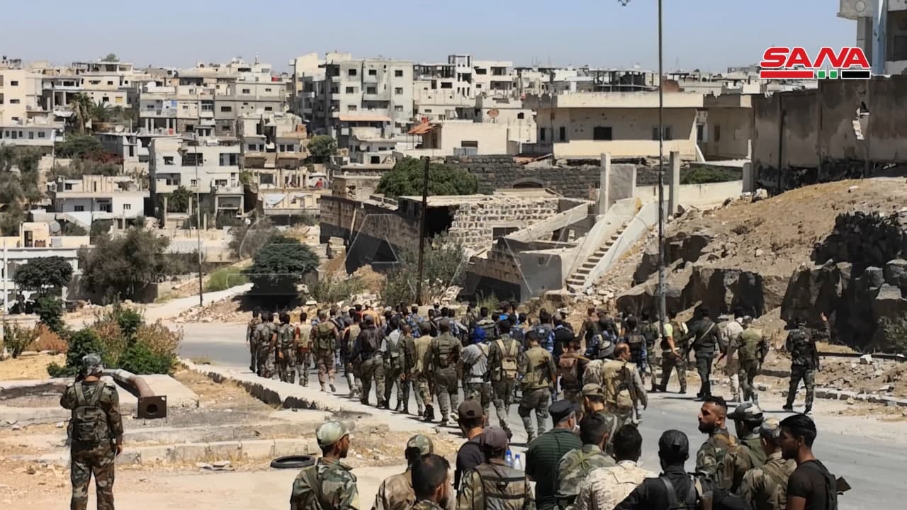 Según reportes de la corresponsal de guerra de SANA, los militares y efectivos de seguridad entraron en Deraa al-Balad donde izaron la bandera nacional y comenzaron a fijar puntos y peinar las zona para luego declararla libre del terrorismo.