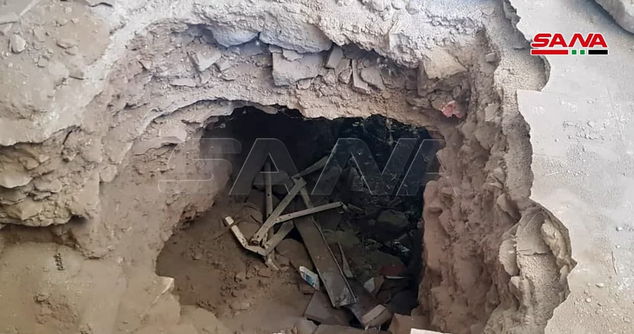 Unidades del Ejército Árabe Sirio encontraron un túnel cavado debajo de edificios residenciales en el barrio de Deraa Al-Balad que los grupos terroristas utilizaban para infiltrarse y atacar los barrios residenciales y puestos de control del ejército en la ciudad de Deraa.