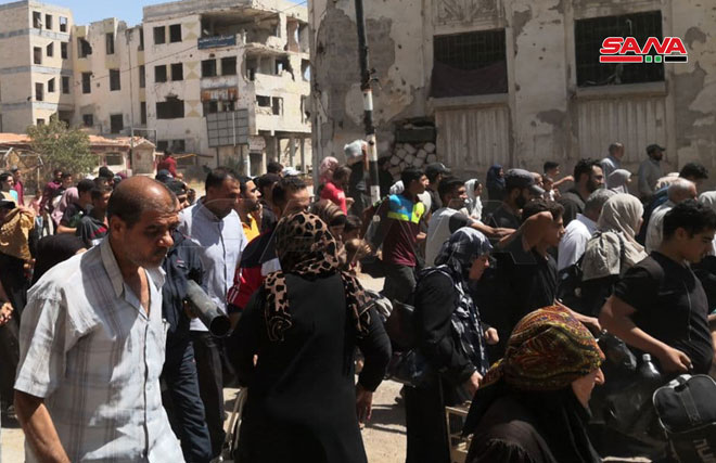 En cumplimiento del Acuerdo de arreglo presentado por el Estado sirio para reestablecer la seguridad en el vecindario de Deraa al-Balad, miles de personas comenzaron a regresar a sus hogares después del despliegue de unidades del Ejército Árabe Sirio.