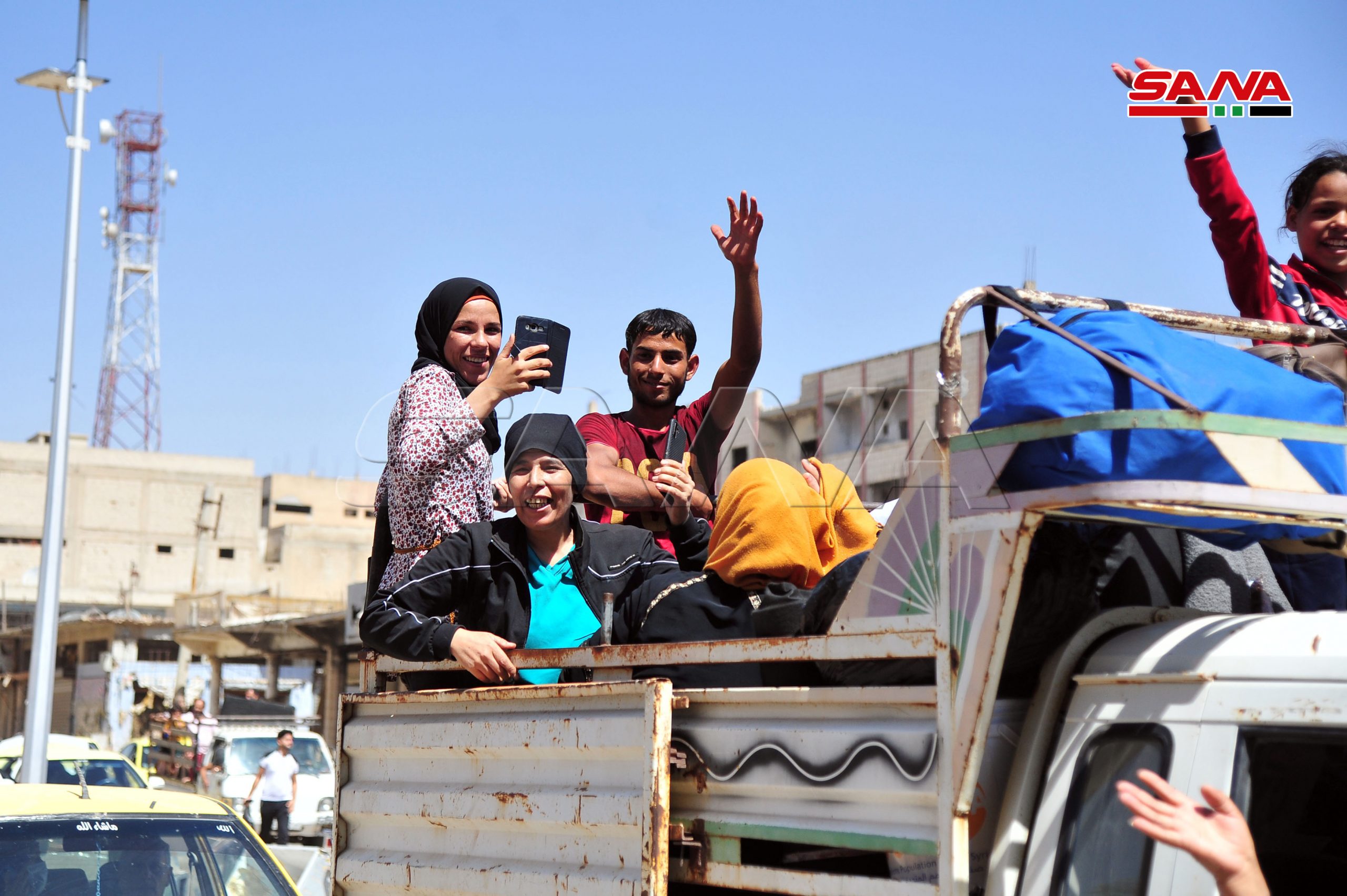 El corresponsal de SANA declaró que miles de vecinos del barrio de Deraa comenzaron a ingresar al vecindario, regresando a sus hogares por medio de decenas de autos y transporte público y privado.