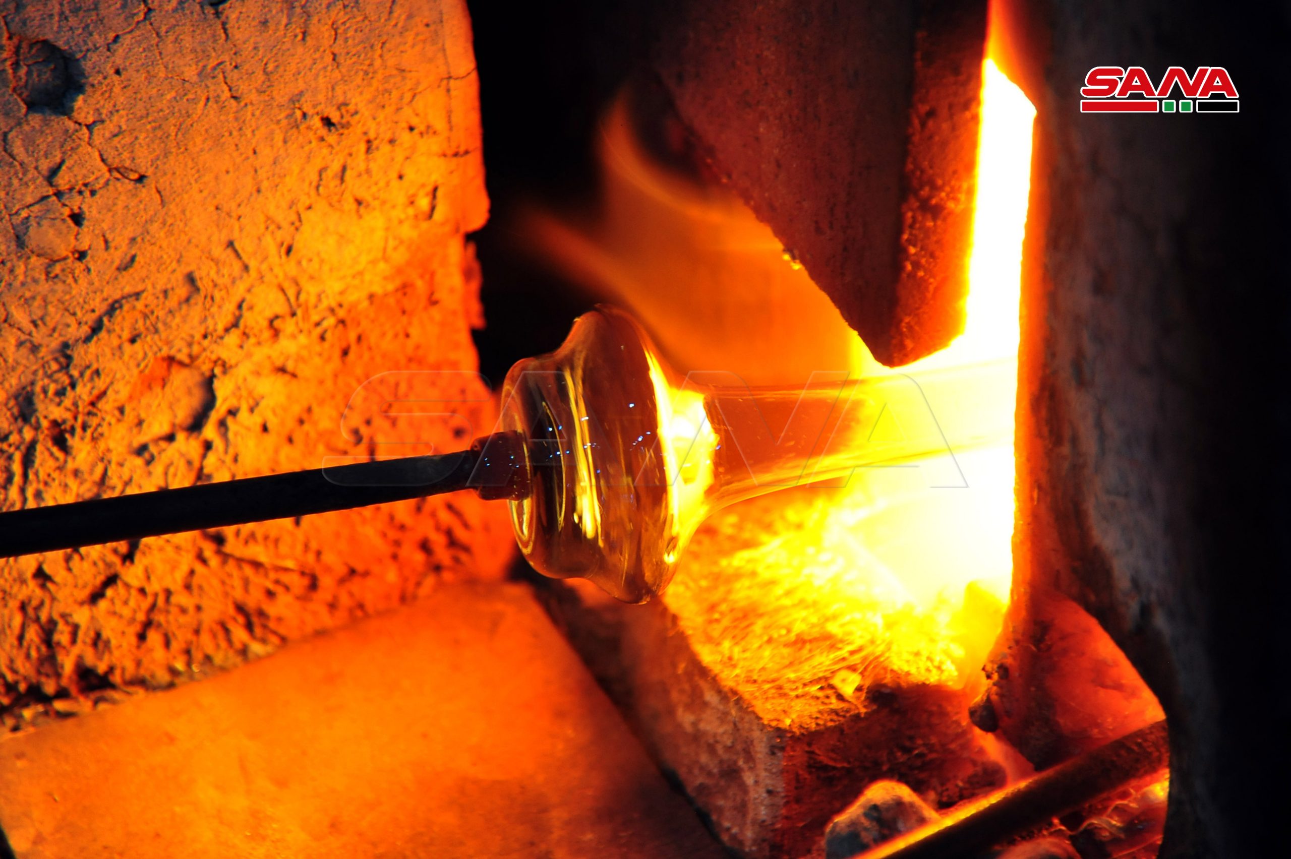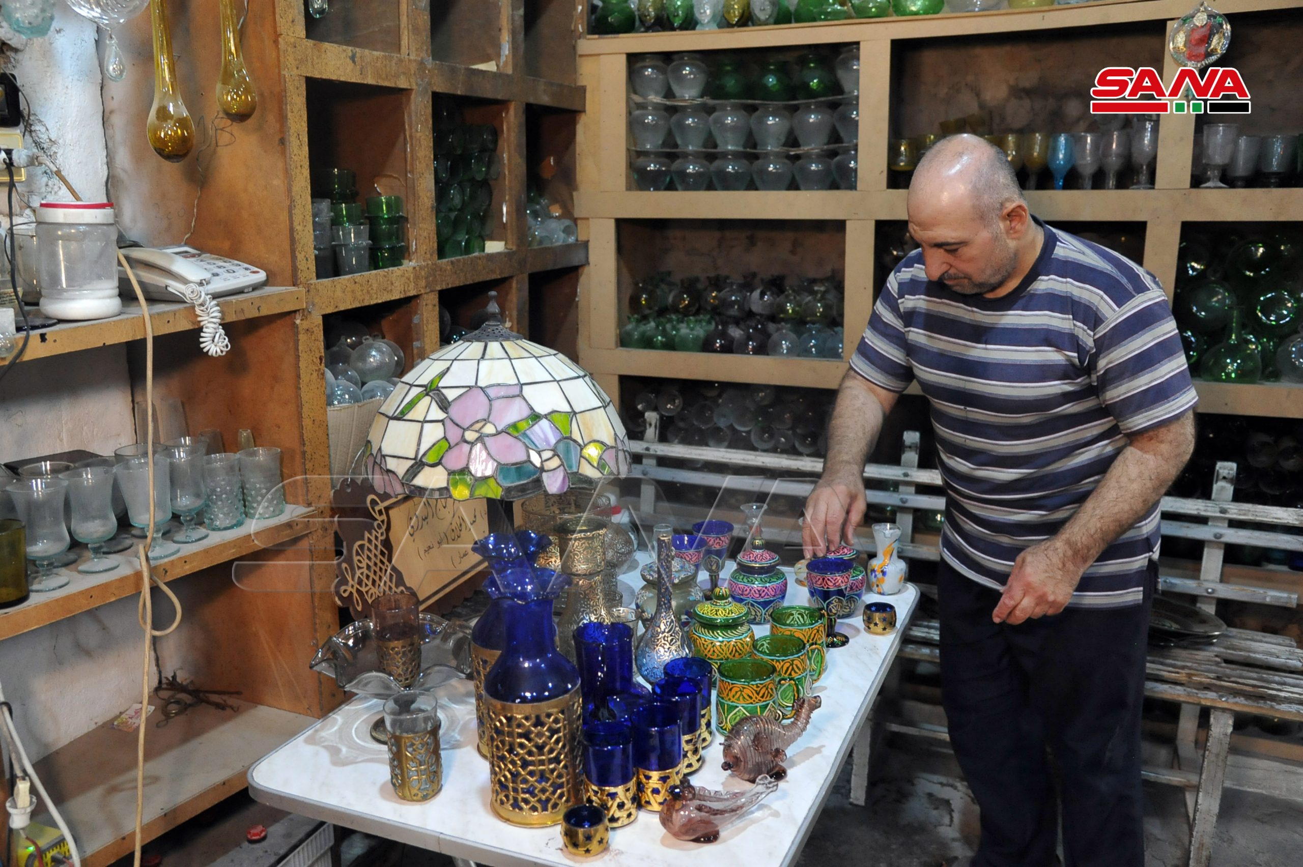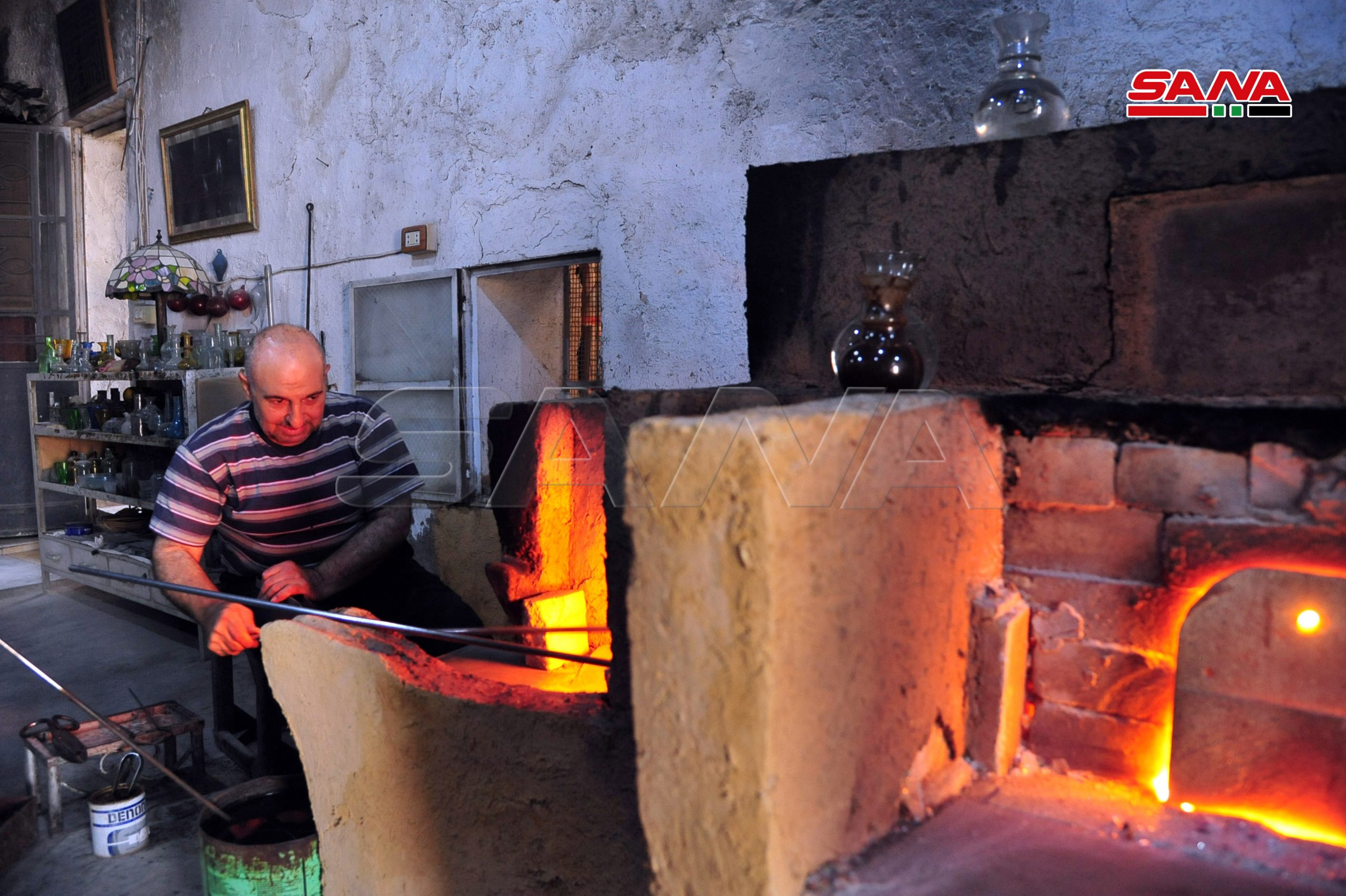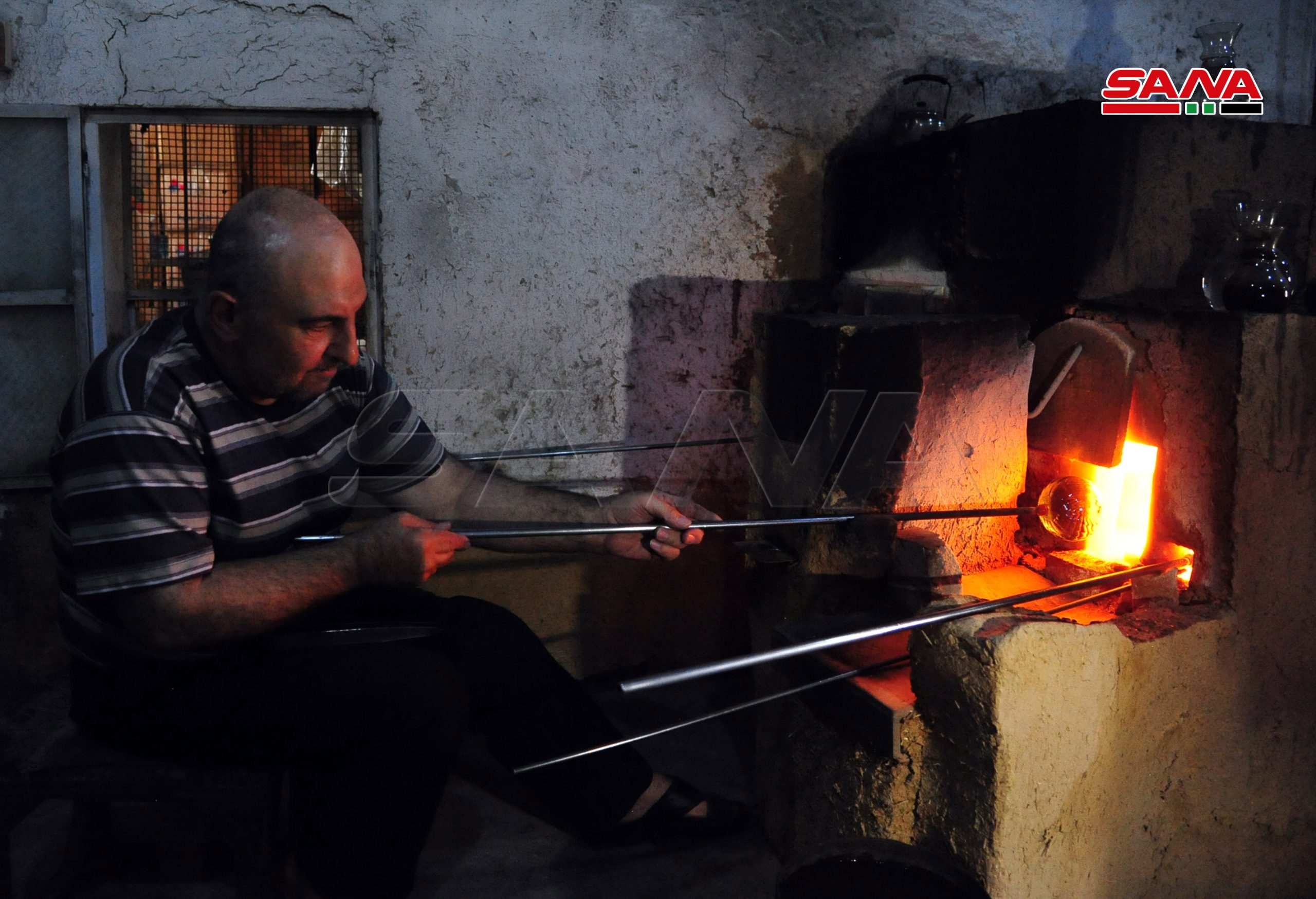 El artesano, Ahmed al-Hallaq, de 65 años de edad, cuenta a SANA su largo trayecto con la artesanía del vidrio soplado que junto a sus hermanos heredó de su padre y abuelo.