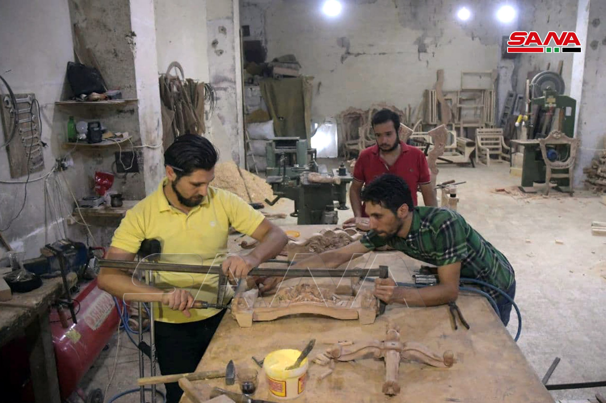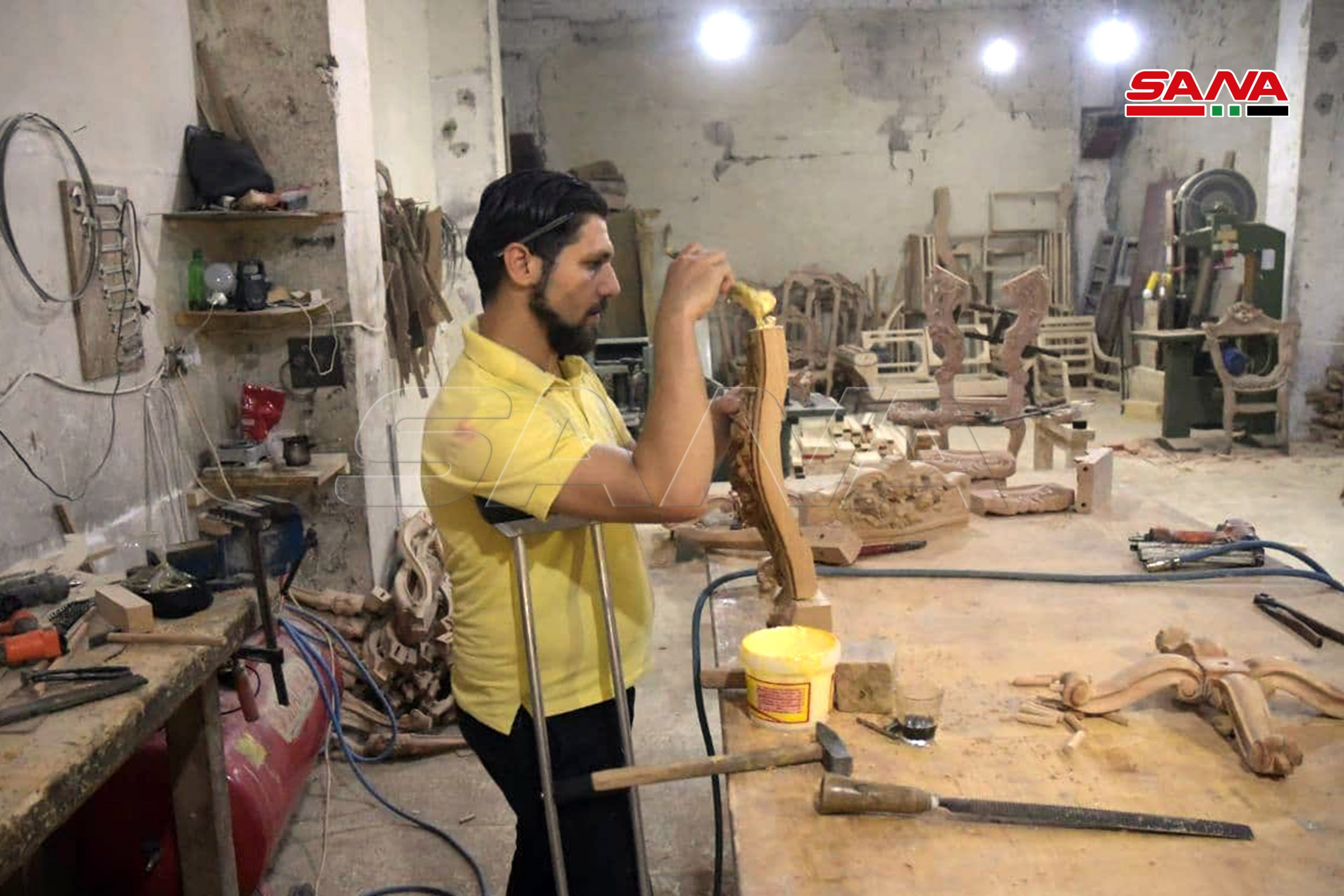¨Me recuperé gradualmente después de dos años de recibir tratamiento y luego decidí trabajar como carpintero en el año 2019 y abrir mi propio taller en el antiguo barrio de “Mowasalat” en Alepo, gracias al apoyo de la Secretaría Siria para el Desarrollo (Proyecto Herido de Patria)”, dijo Ali a SANA.
