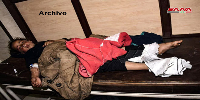 Tres niños sufrieron lesiones este lunes debido al estallido de una mina plantada por las agrupaciones terroristas antes de su derrota en la localidad de Al-Sharia, en el campo norte de la provincia de Hama.
