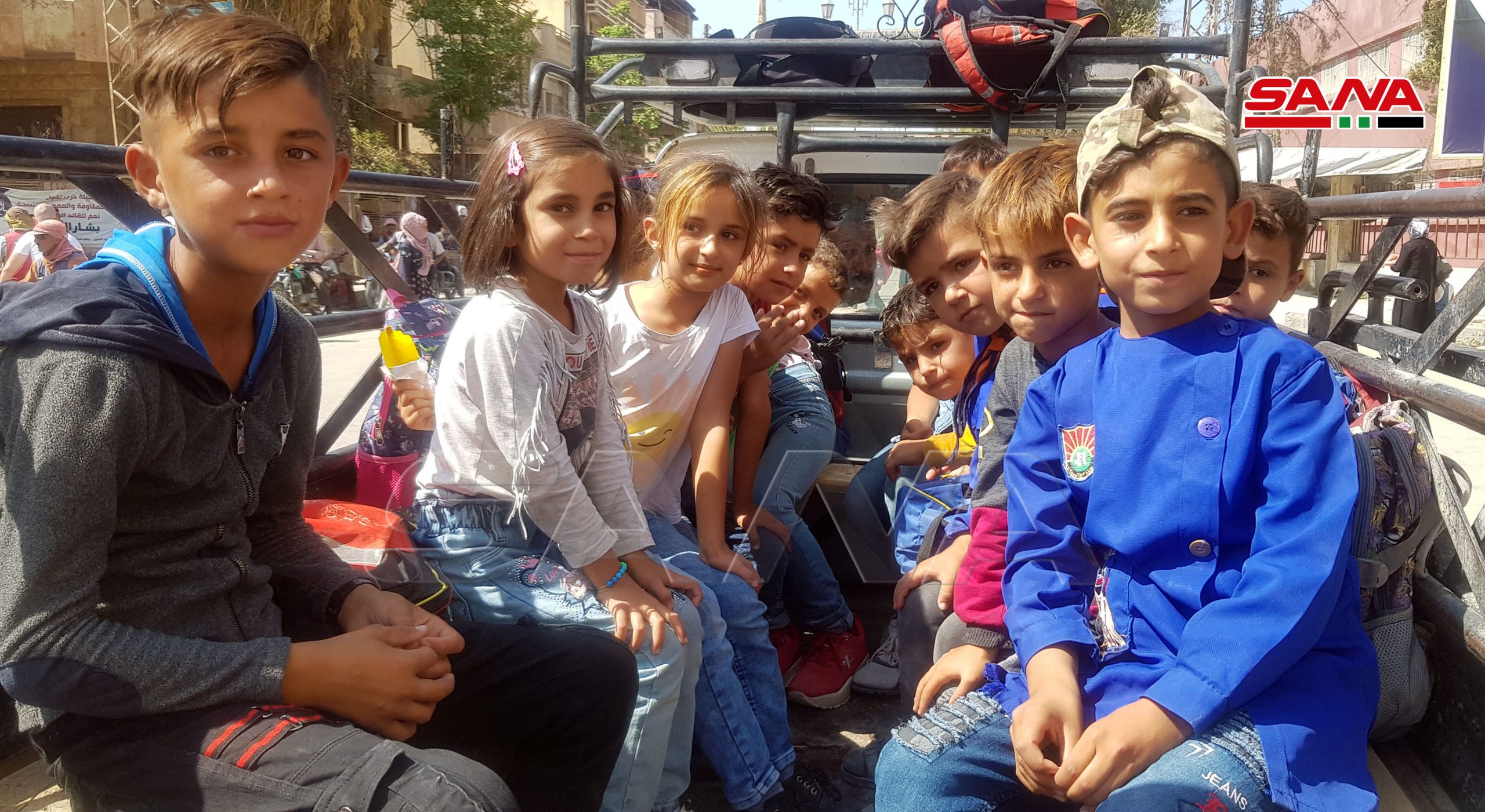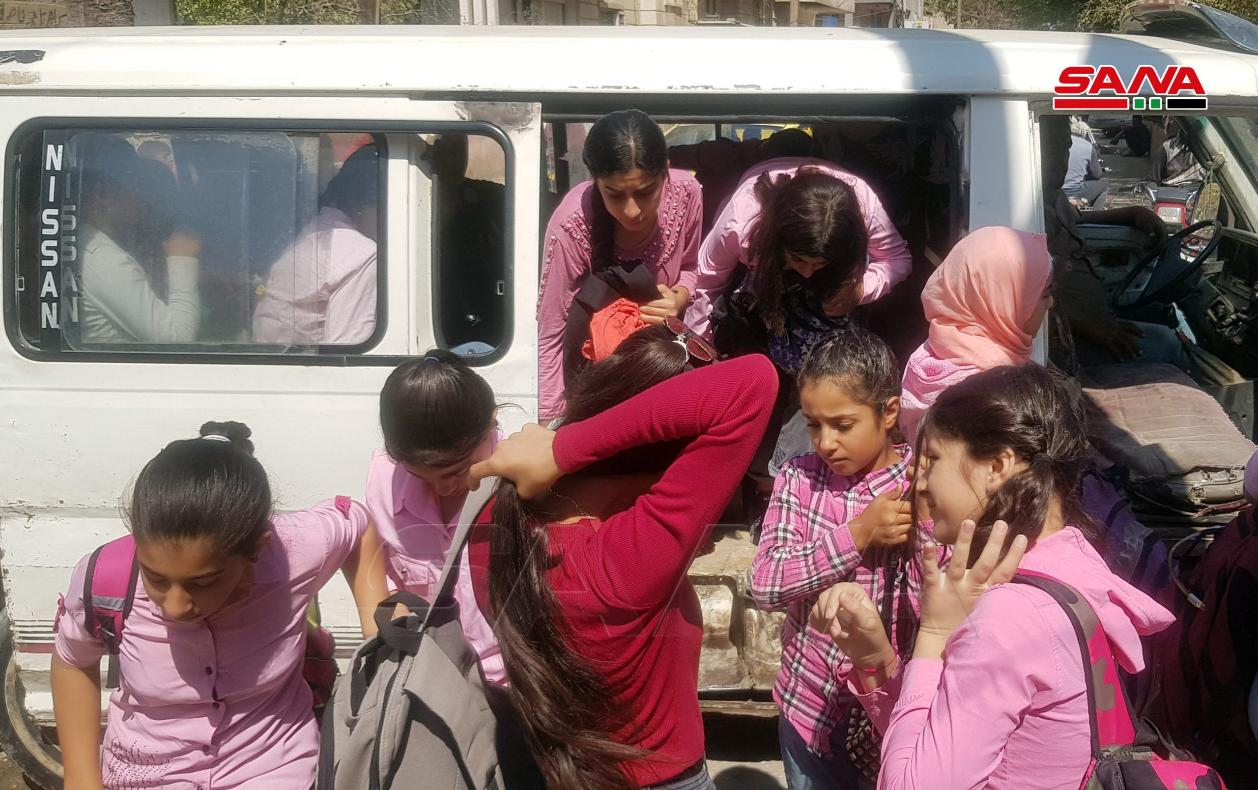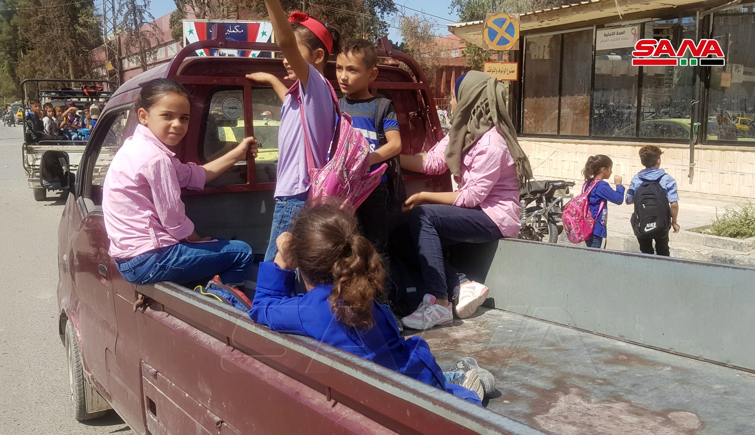 Los padres de los niños acompañan a sus hijos que son obligados a desplazarse varios kilómetros a las escuelas estatales en las ciudades de Qamishli y Hasakeh mediante medios transporte masivos, incluidos camiones, pues esa milicia separatista se apoderó de la mayoría de los colegios en las zonas rurales donde impone sus enfoques de enseñanza diferentes a los planes de estudio oficiales.