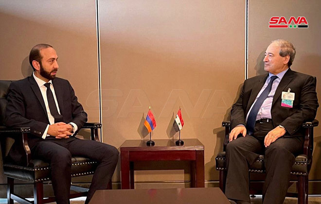 Asimismo, el jefe de la diplomacia siria se reunió con su homólogo armenio Ararat Mirzoyan, con quien revisó las relaciones amistosas y los lazos históricos entre los dos pueblos amigos, y enfatizó la necesidad de mejorar y desarrollar las relaciones bilaterales para servir a los intereses de ambos países.