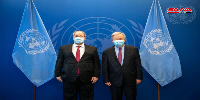 El ministro de Exteriores y Emigrantes, Faisal al-Mekdad, se reunió en Nueva York con Antonio Guterres, Secretario General de las Naciones Unidas.