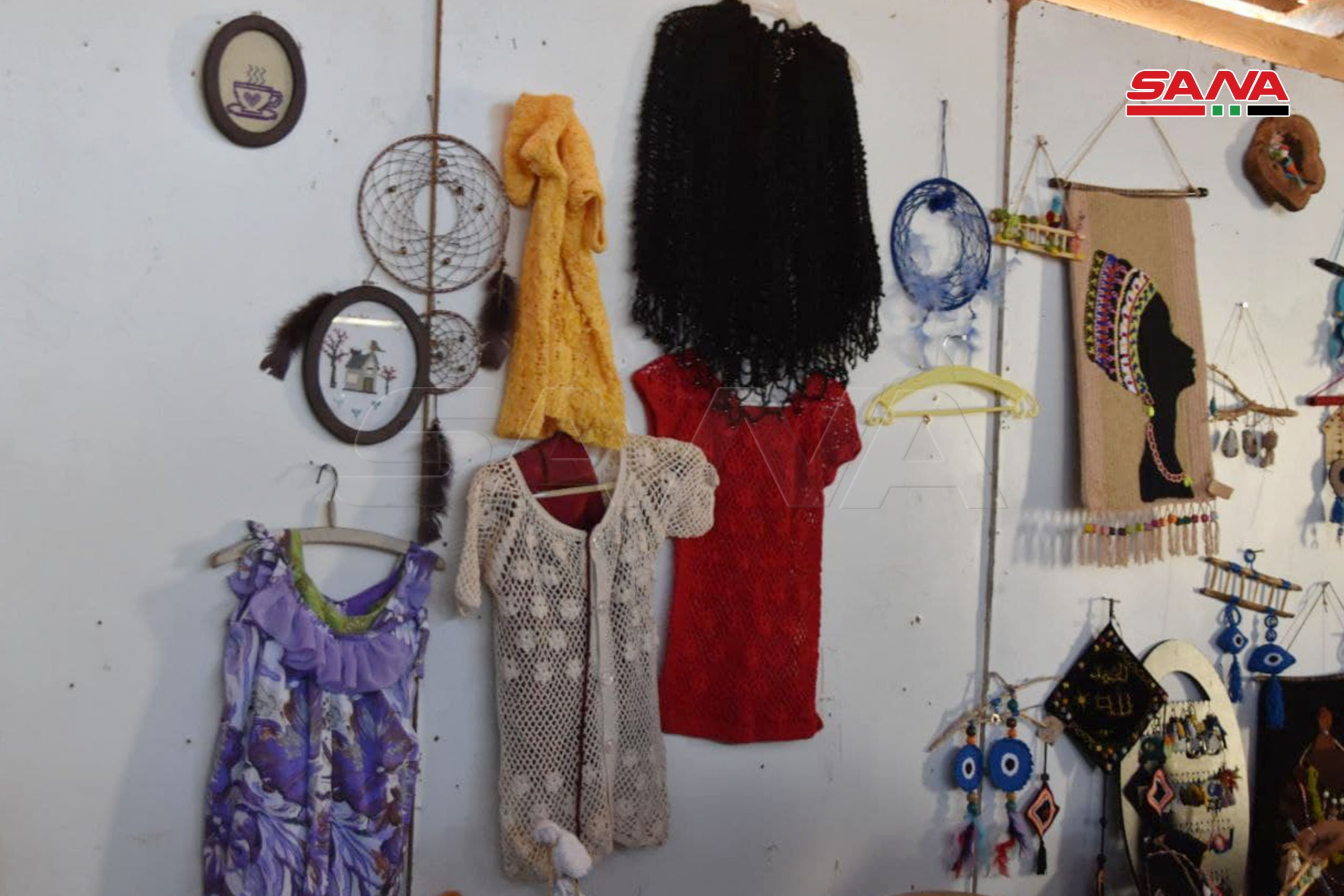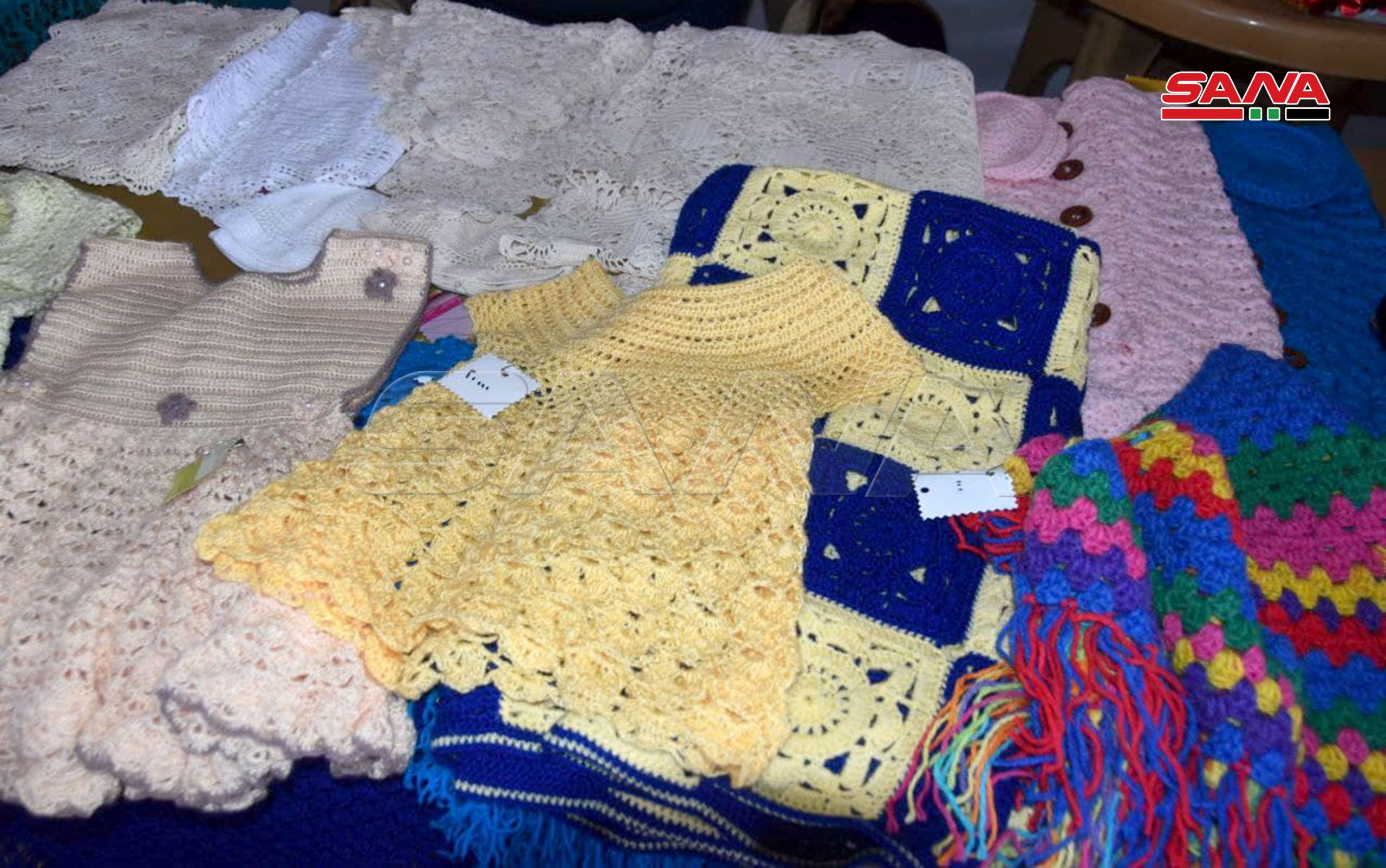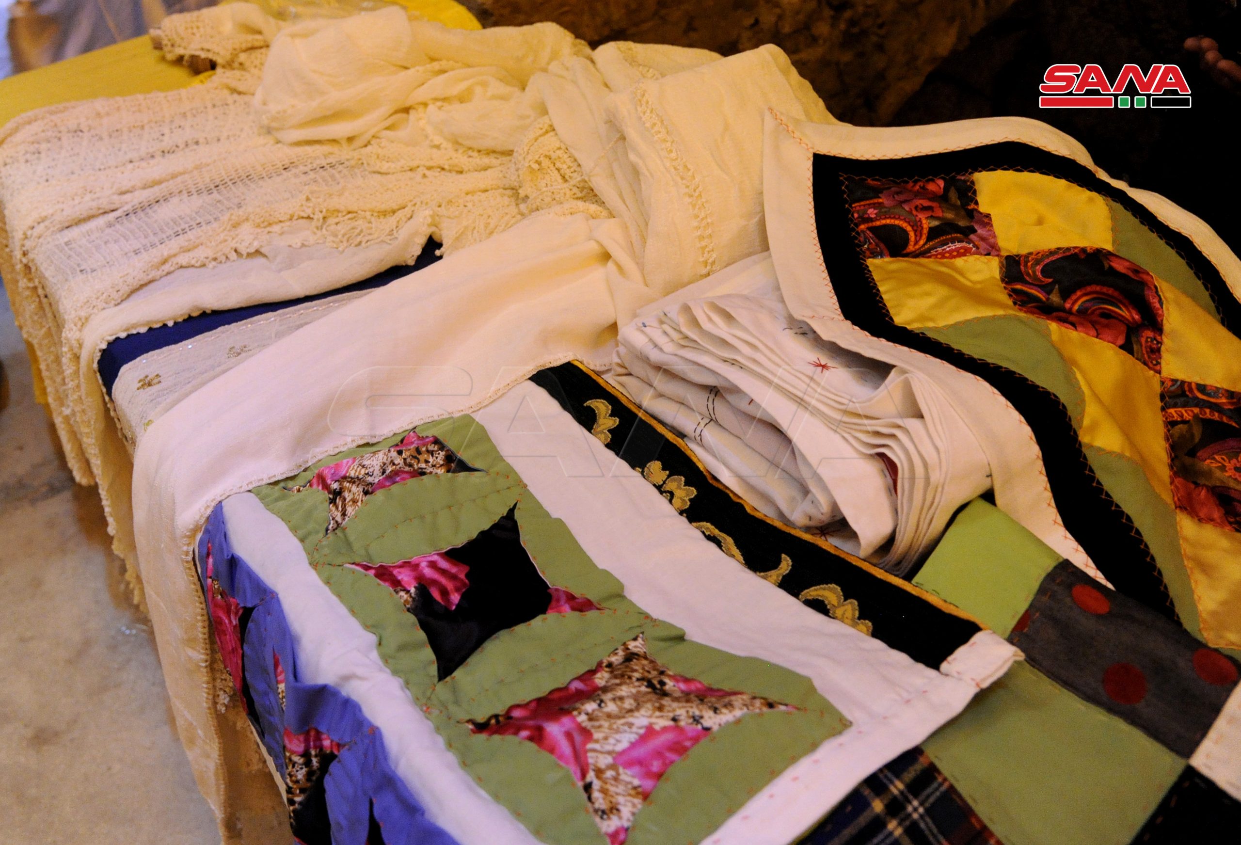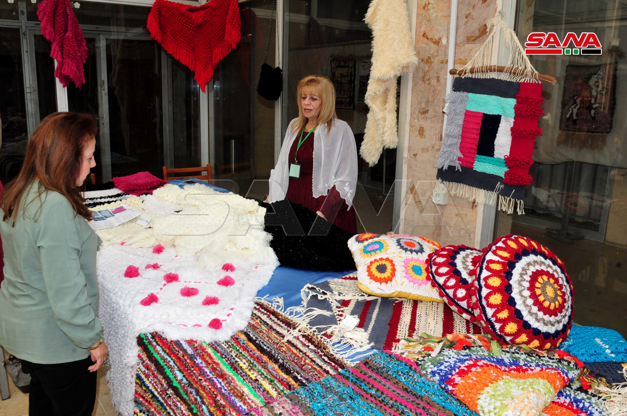 En la ciudad de Hasakeh, el centro cultural acogió una exposición de artesanías que incluyeron telas, bolsos, productos de cuero, tejidos y bordados con hilos de lana y seda.
