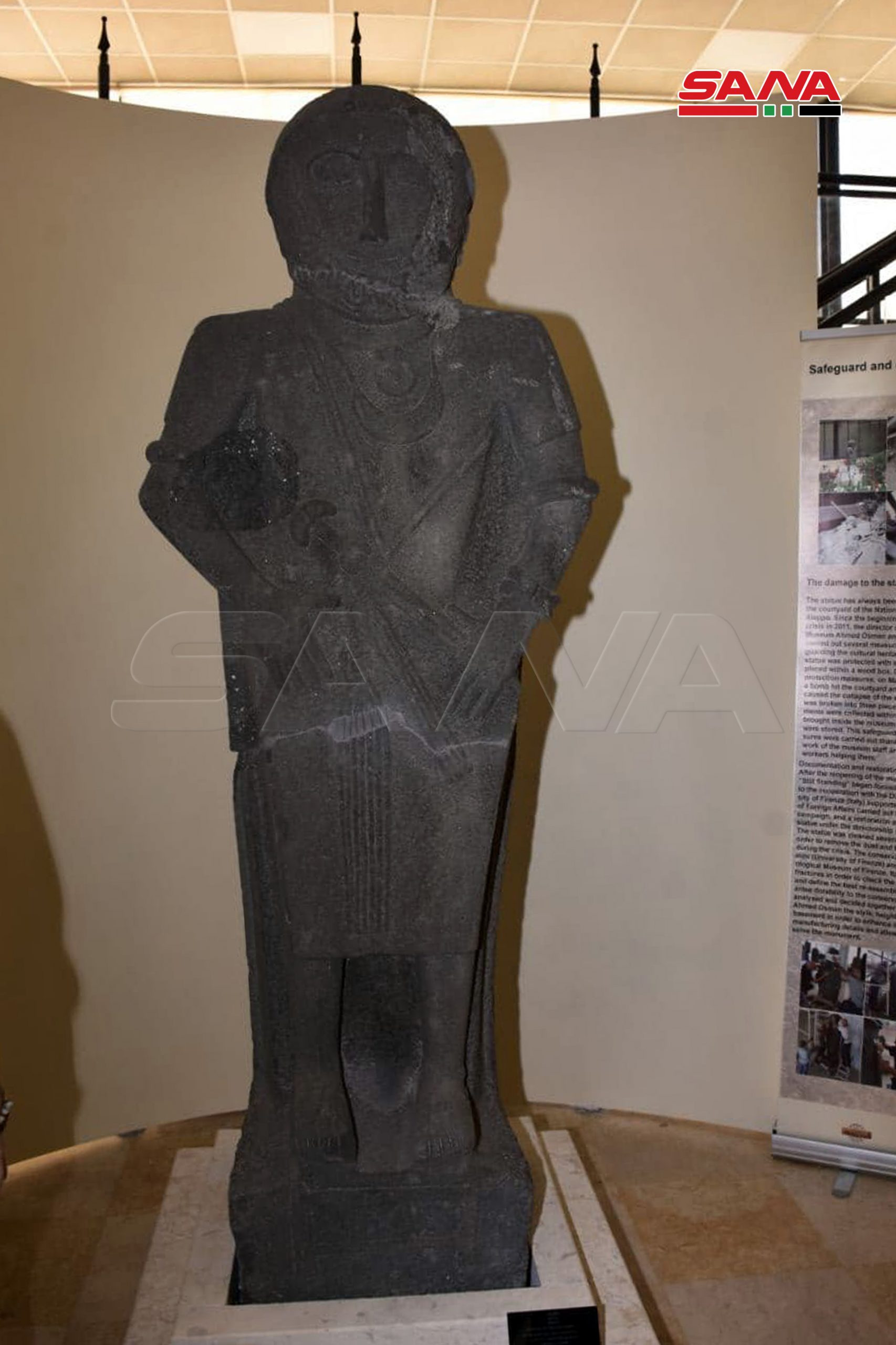 La estatua aramea de Ain al-Tal, que data de finales del siglo IX a.C., fue devuelta a su lugar en el Museo Nacional de Alepo, después de completar su restauración de los daños causados por el terrorismo.