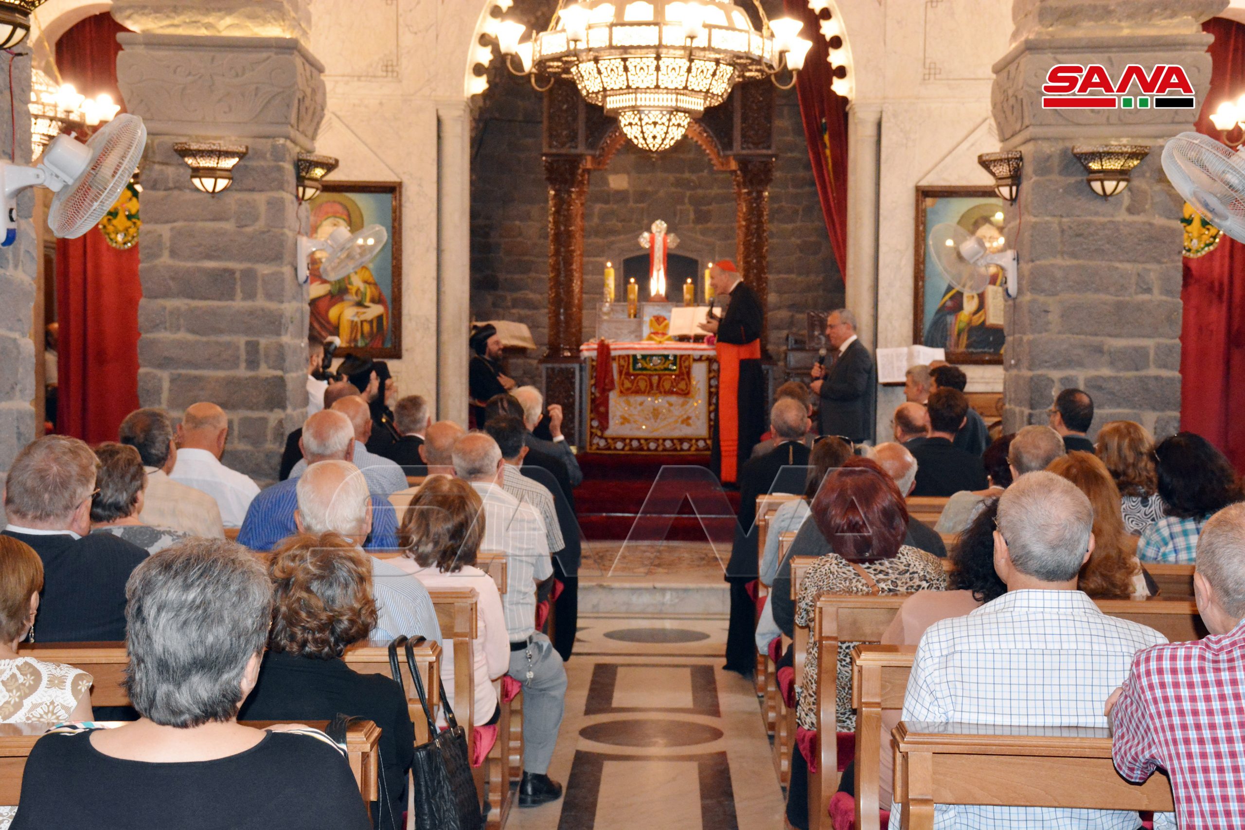 Homs, 03 Oct (SANA) La Iglesia del Sagrado Cinturón de Santa María en la provincia central de Homs acogió hoy una oración por la paz en Siria, presidida por el obispo Mar Timothy Matta El Khoury, arzobispo de Homs, Hama y Tartus para la iglesia siríaco-ortodoxa.