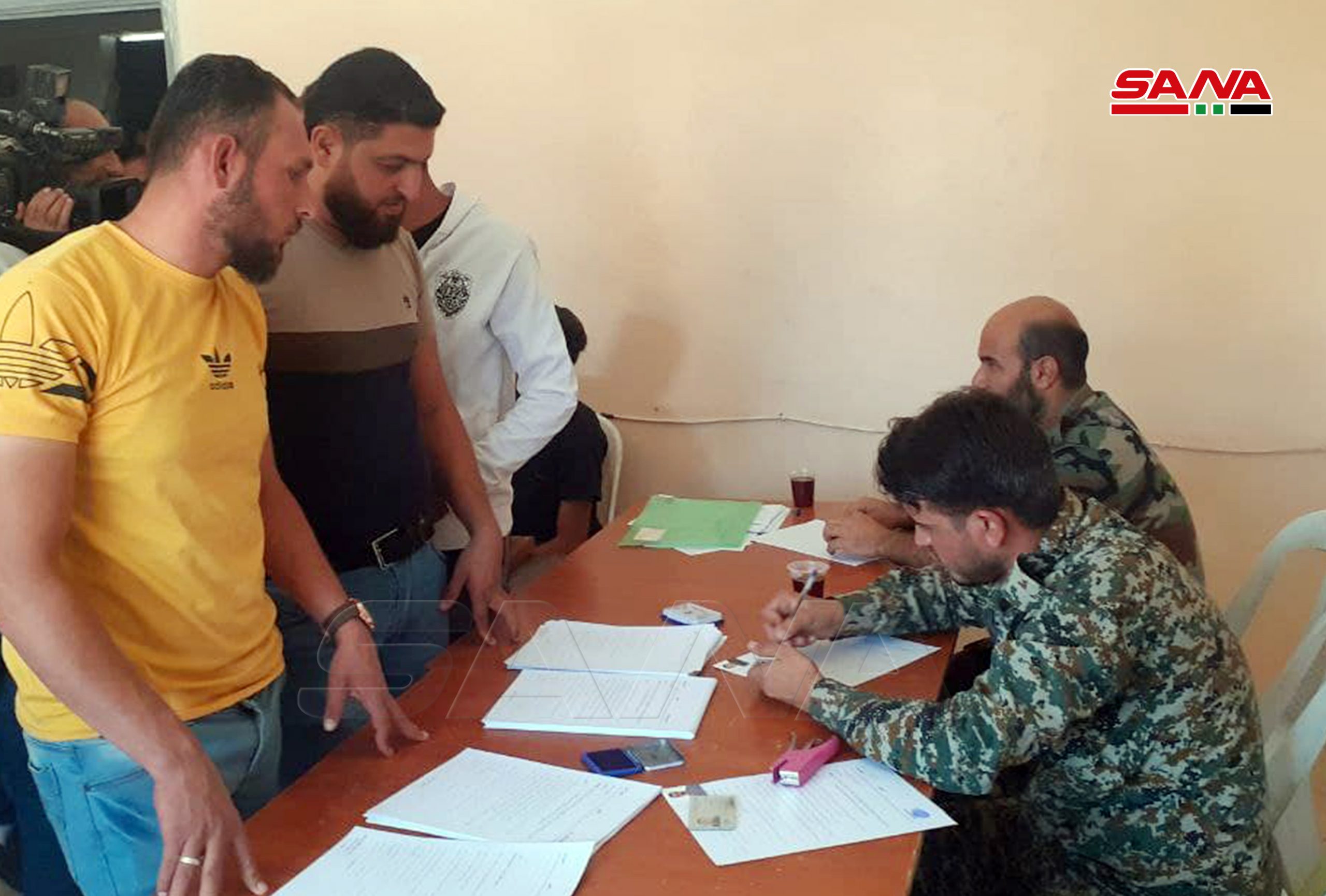 Deraa, 9 oct (SANA) Decenas de armados y prófugos en la localidad de Nassib en el este de la provincia de Deraa, cerca de la frontera con Jordania, comenzaron a entregarse a las autoridades competentes en cumplimiento de arreglo propuesto por el Estado Sirio.