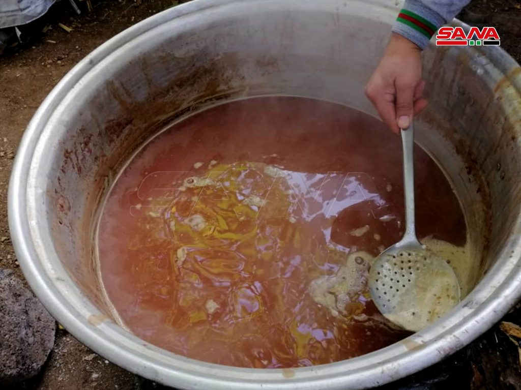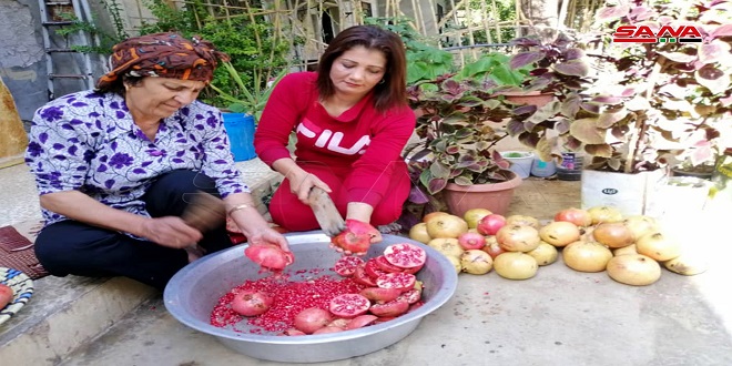 Hama, 12 oct (SANA)- La confección de la melaza de granadas es un trabajo tradicional en varias zonas sirias, especialmente la aldea de Deir Mama situada en el oeste de la provincia de Hama.