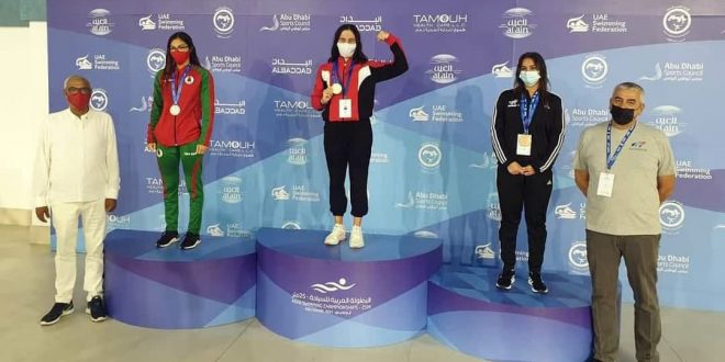 Abu Dabi, 24 oct (SANA) La nadadora siria Inana Suleiman, ganó hoy la medalla de oro por la carrera de 1500 metros estilo libre, en el Campeonato Árabe de Natación celebra en Emiratos Árabes Unidos