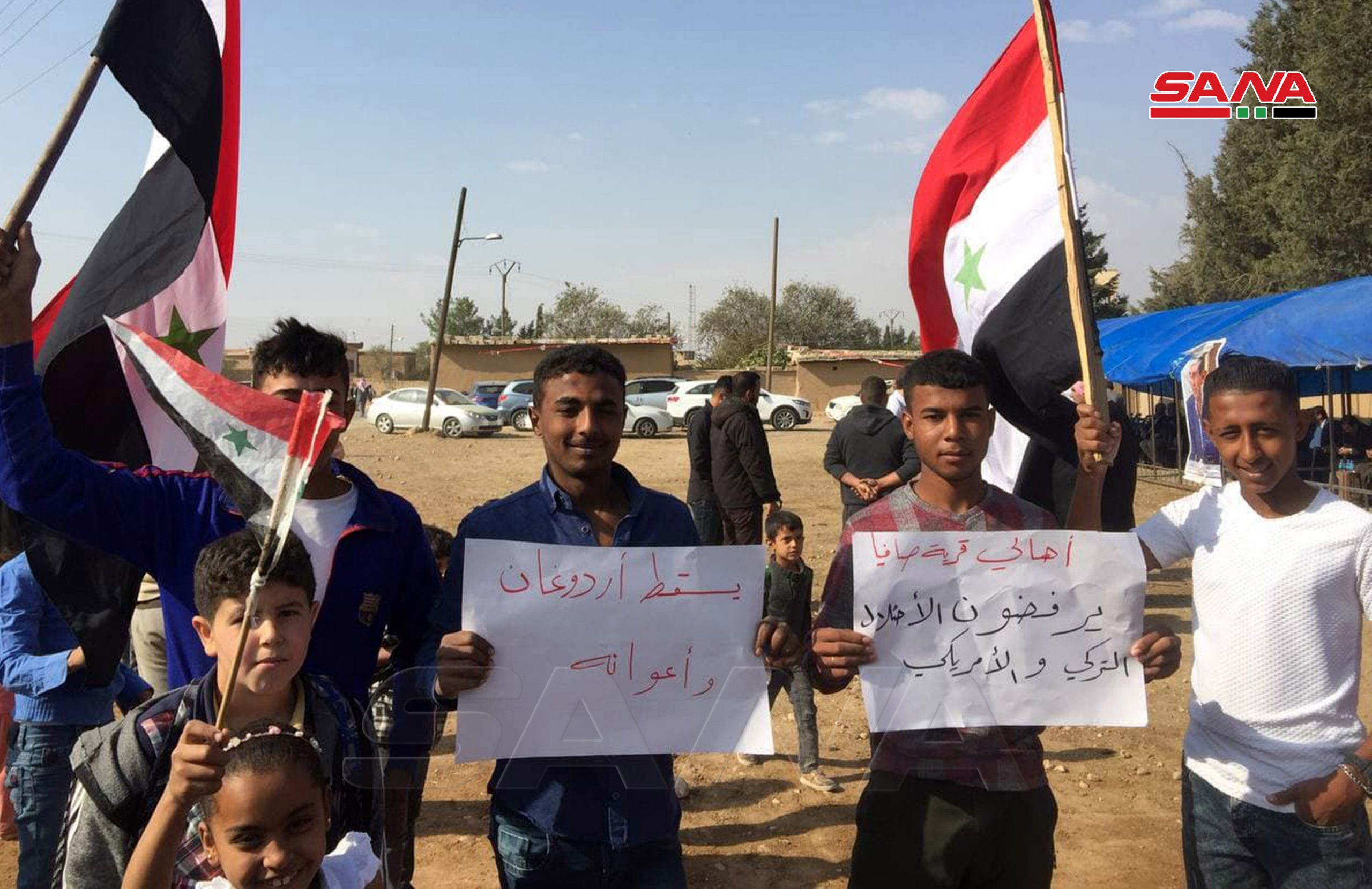 Hasakeh, 28 oct (SANA) Continúan las manifestaciones de ira y rechazo a los ocupanten estadounidense y turco en el norte y nordeste de Siria.