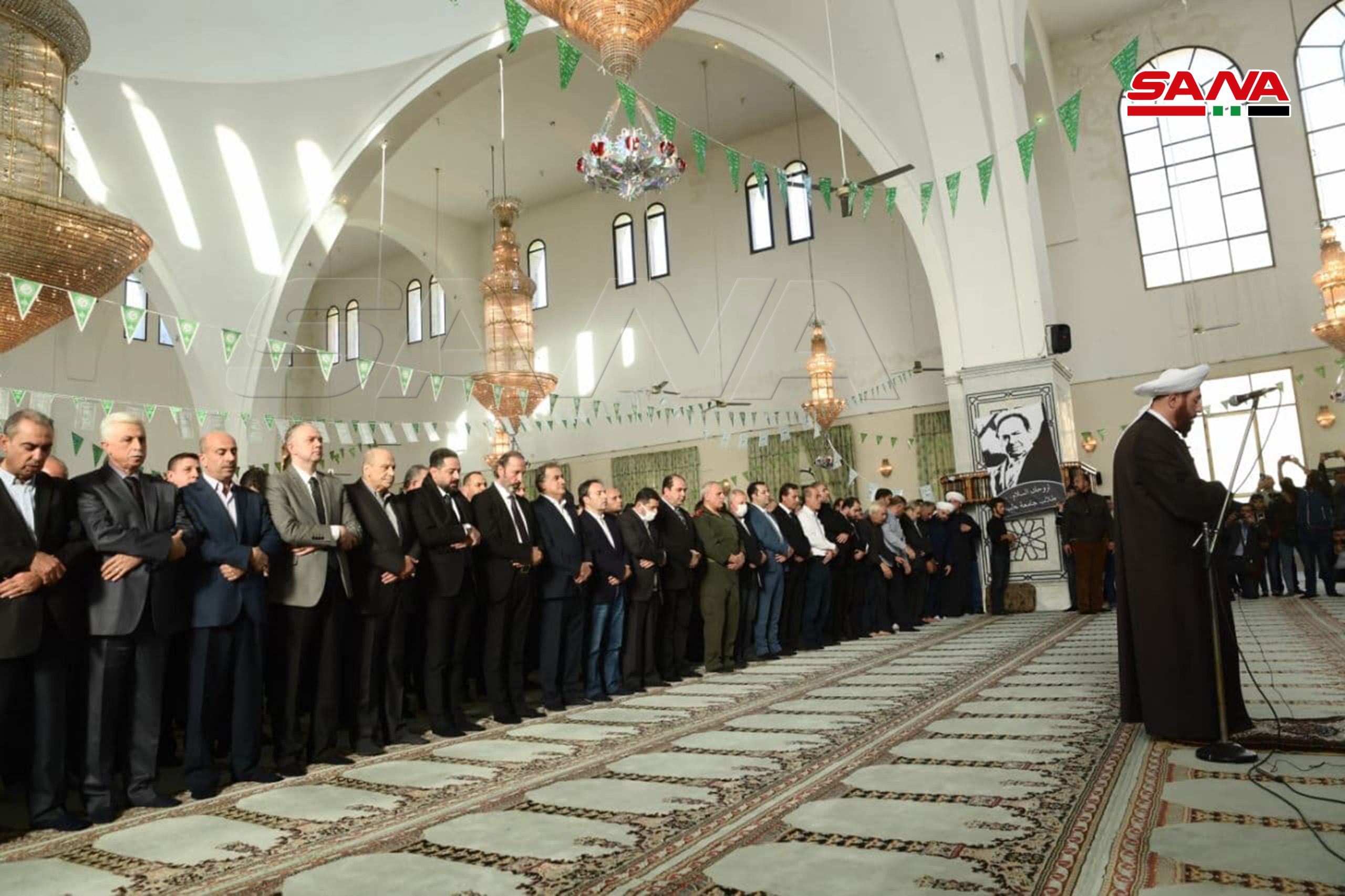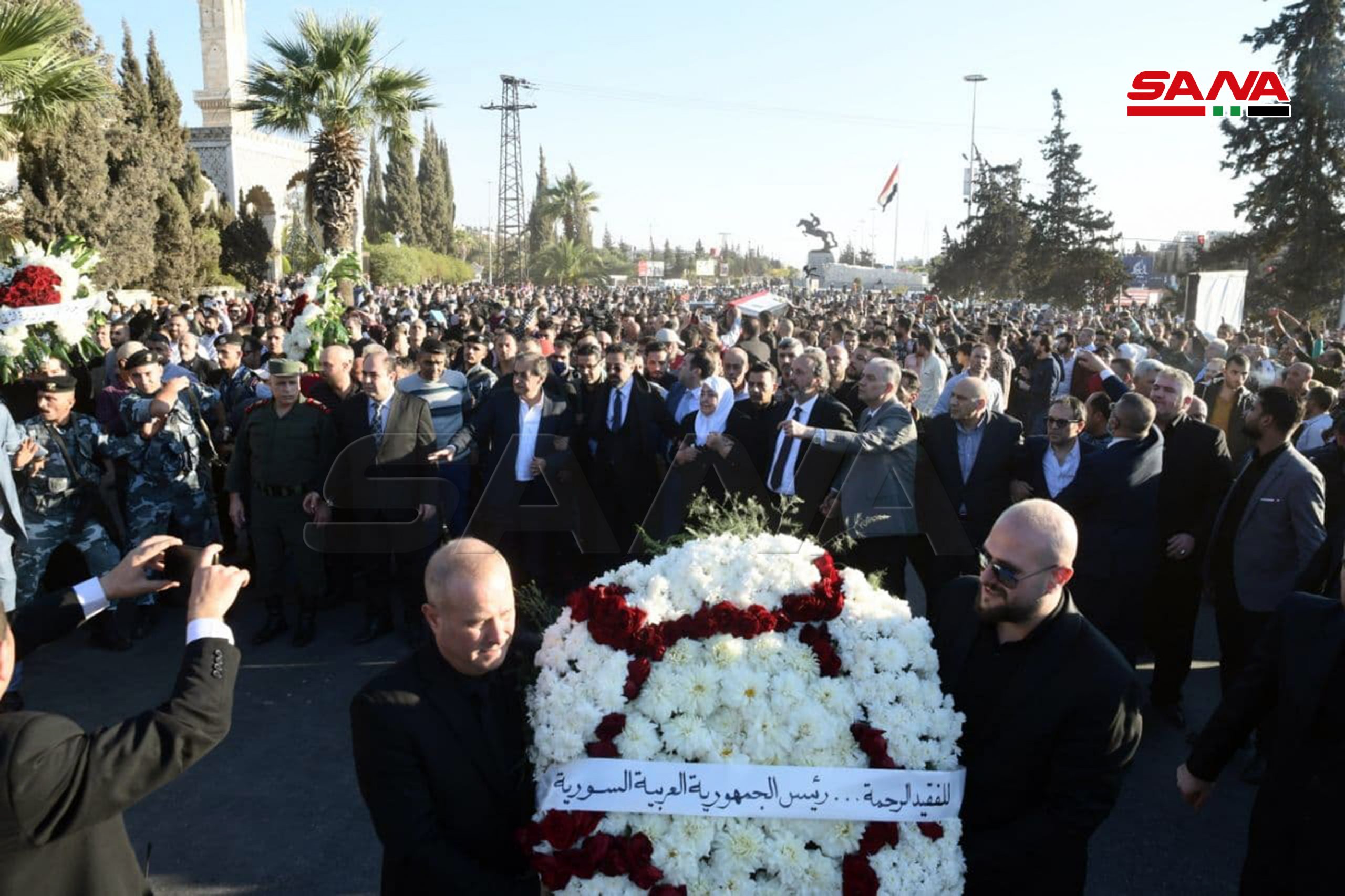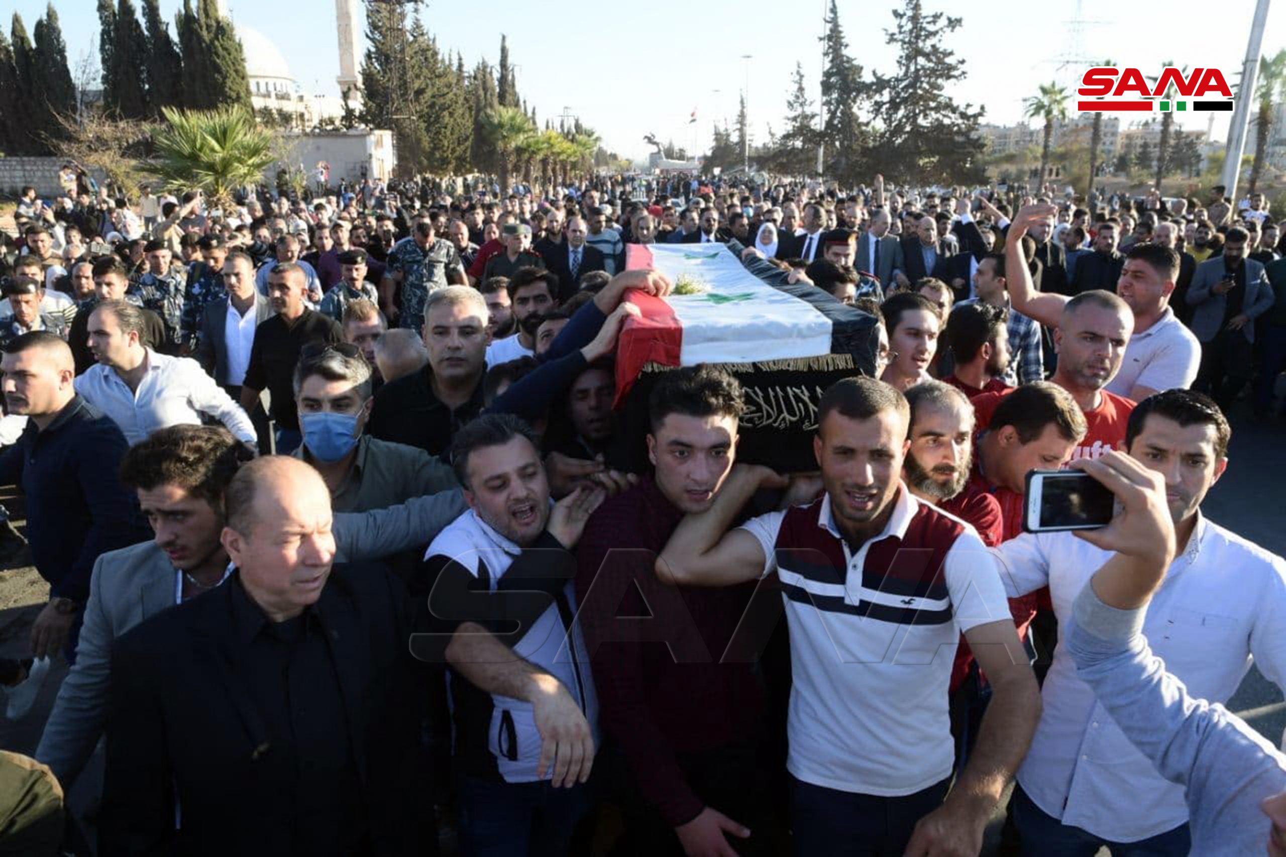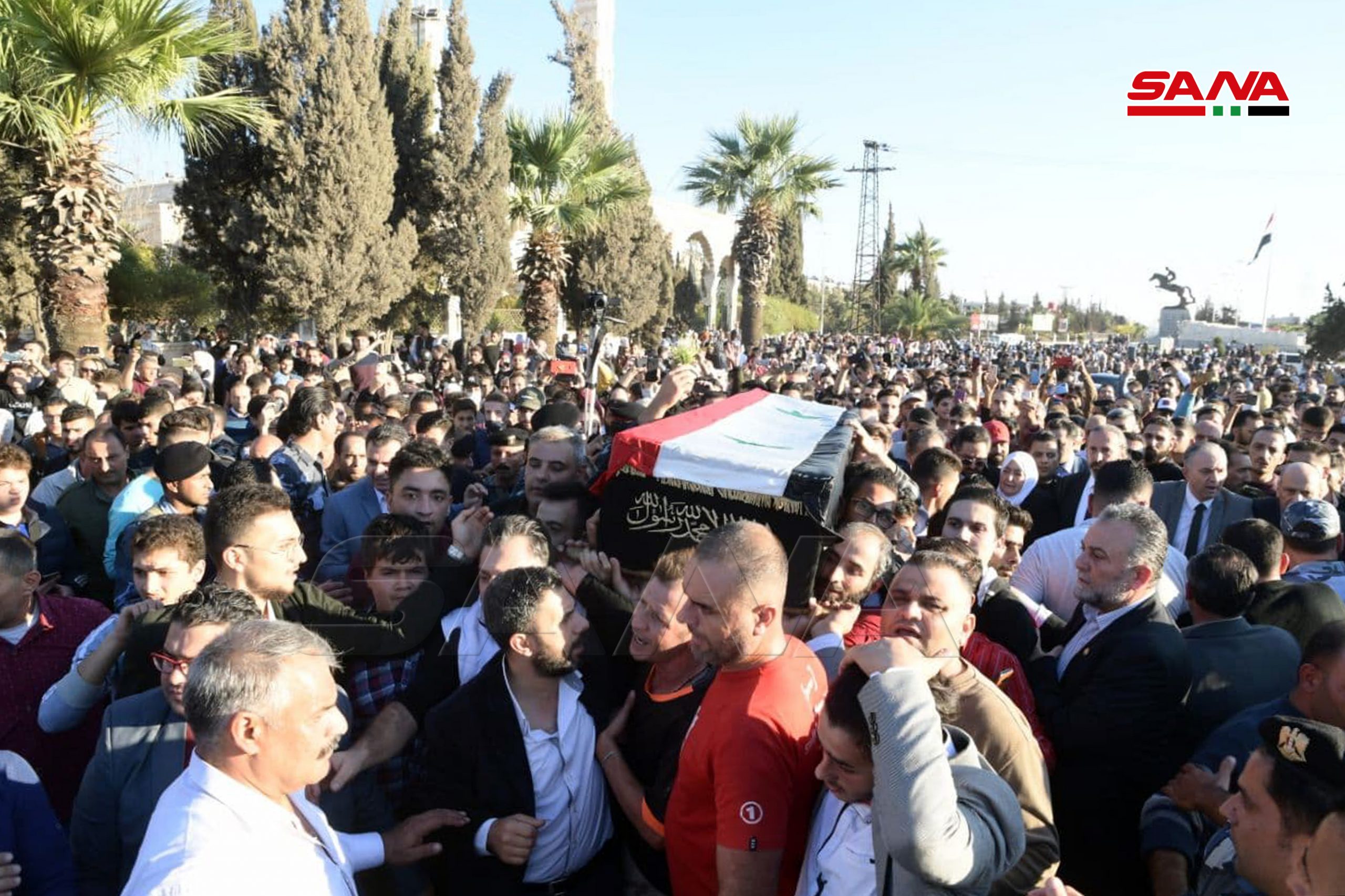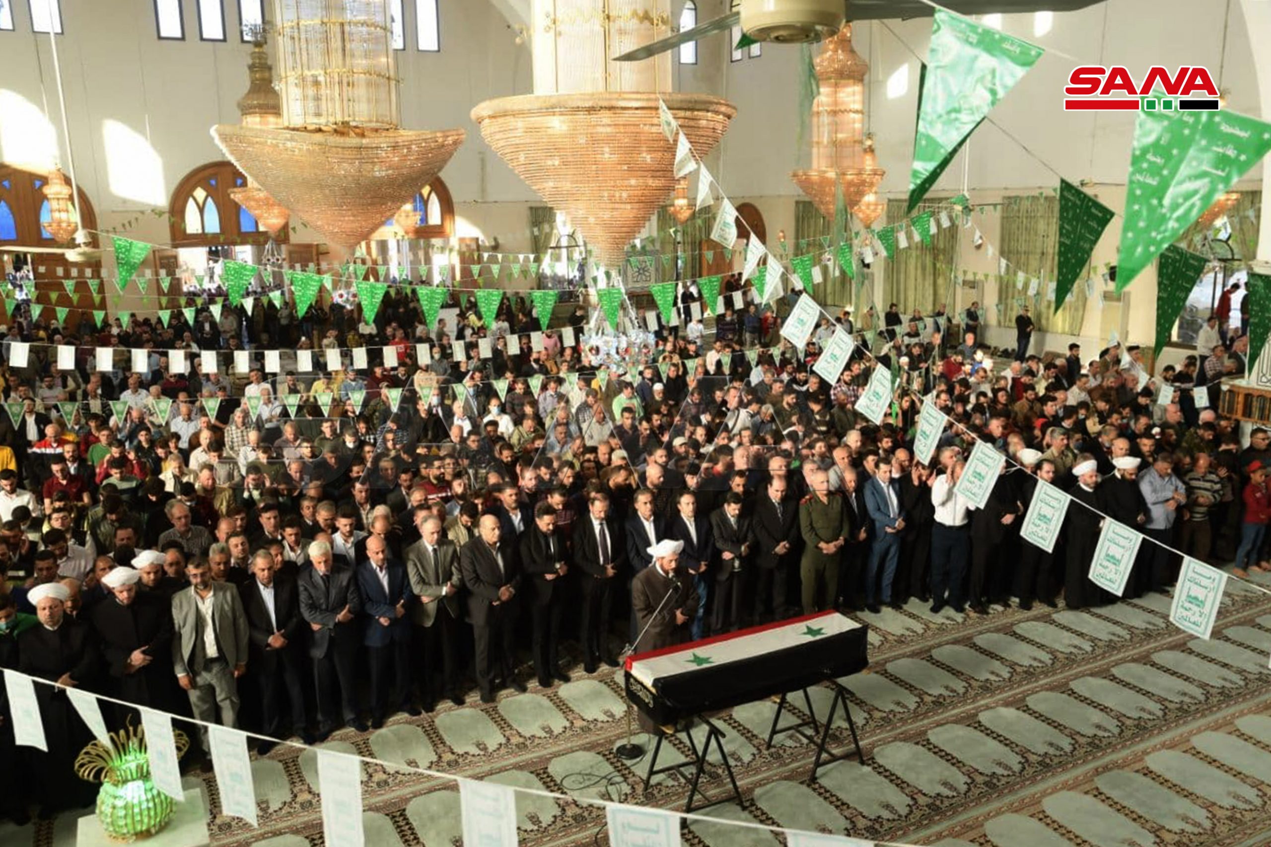 Procedente de Damasco, el cuerpo sin vida envuelto en la bandera nacional, llegó a la Mezquita Abdullah bin Abbas donde fue recibido por multitudes masivas de la gente de Alepo, y allí se realizó la oración fúnebre por el difunto.