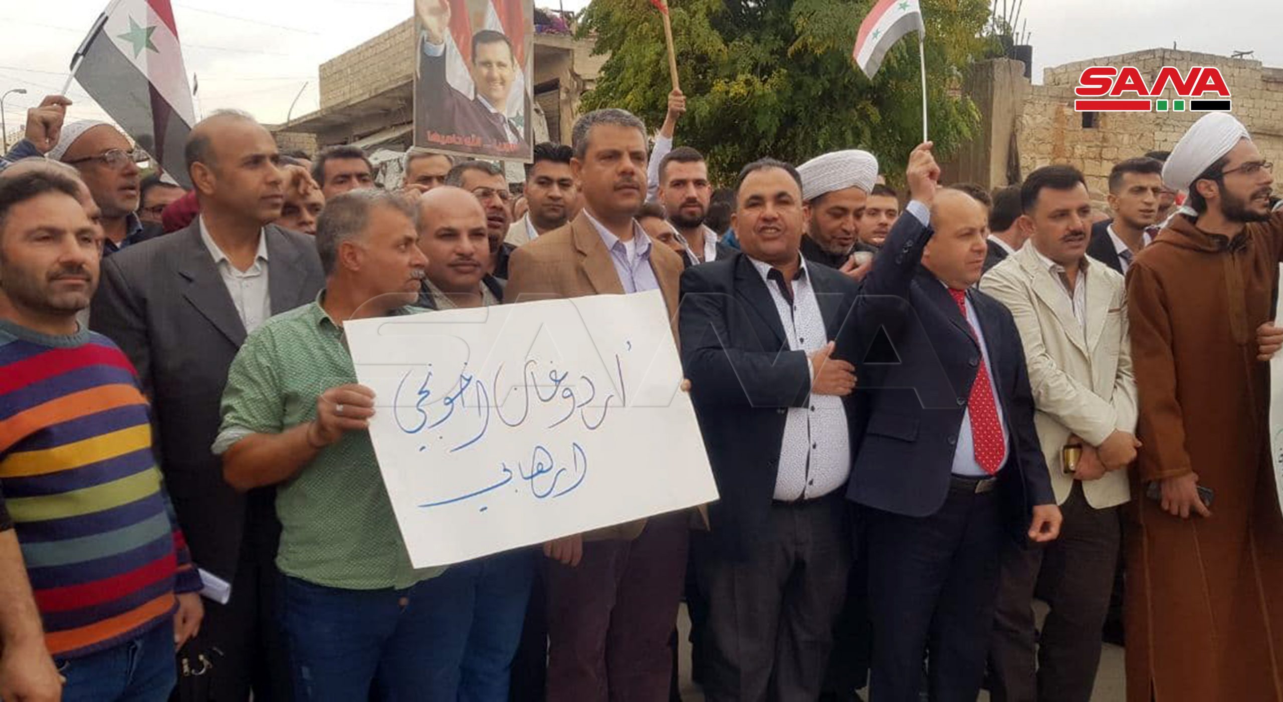 Alepo, 10 nov (SANA) El municipio de Tel Rifat en el norte de la provincia de Alepo fue testigo hoy de una nueva concentración popular multitudinaria en rechazo a la ocupación turca y en repulsa a sus agresiones brutales contra zonas residenciales.
