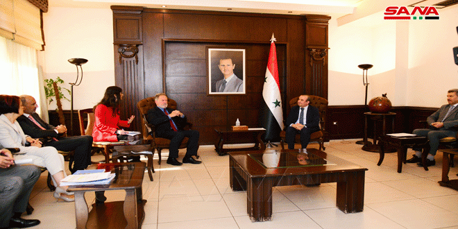 Damasco, 10 nov (SANA) El ministro de Administración Municipal y Medio Ambiente, Hussein Makhlouf, abordó con David Beasley, el director ejecutivo del Programa Mundial de Alimentos (PMA) y la delegación que lo acompaña, las formas de mejorar y ampliar la cooperación conjunta entre las dos partes mediante el aumento del apoyo brindado a Siria.