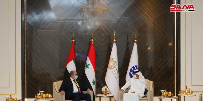 Dubái, 14 nov (SANA) El Ministro de Economía y Comercio Exterior de Siria, Mohammed Samer Al Khalil, debatió con el Ministro de Estado para Comercio Exterior de los Emiratos Árabes Unidos, Thani bin Ahmed Al Zayoudi, las formas de mejorar la cooperación económica entre los dos países hermanos.