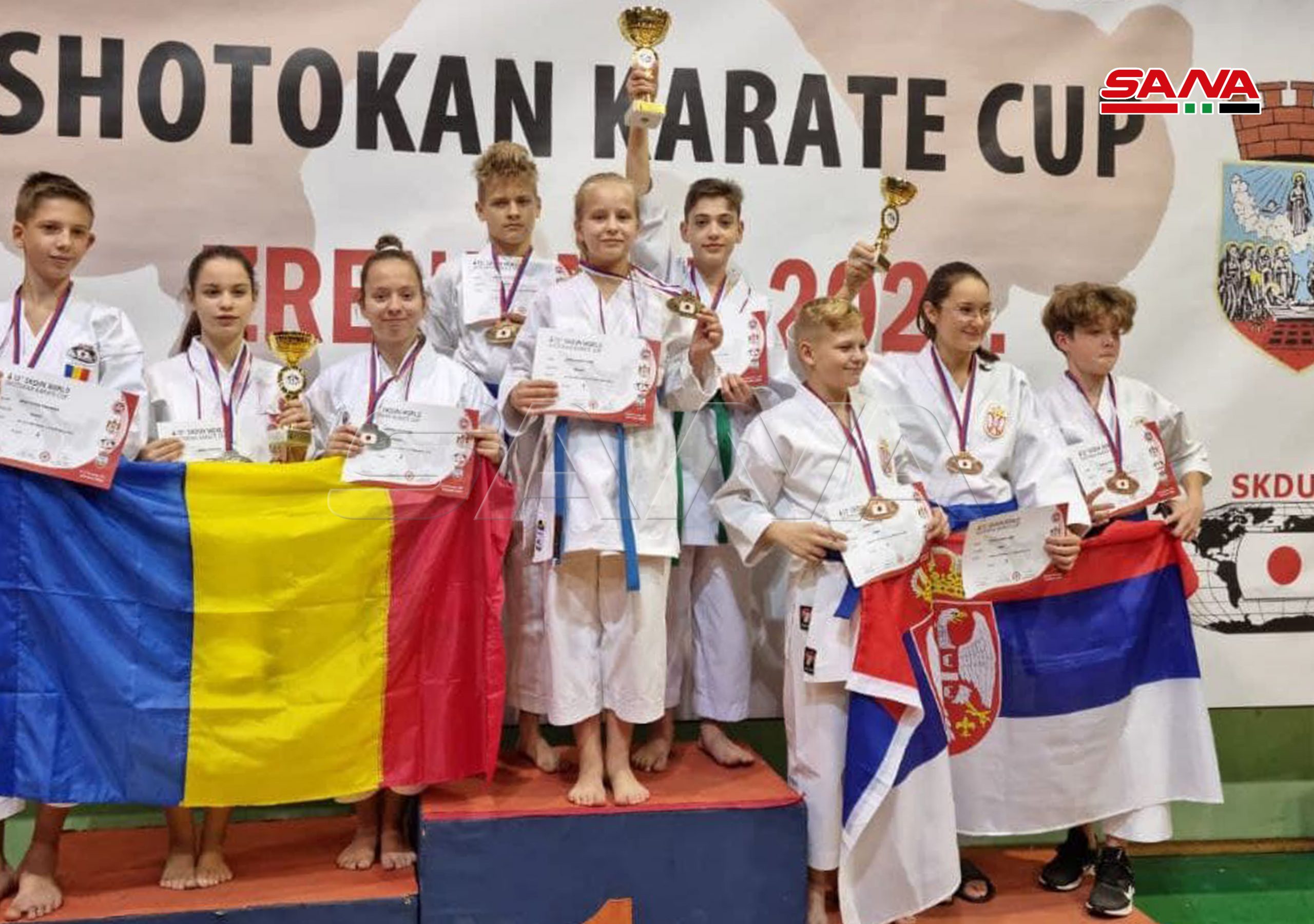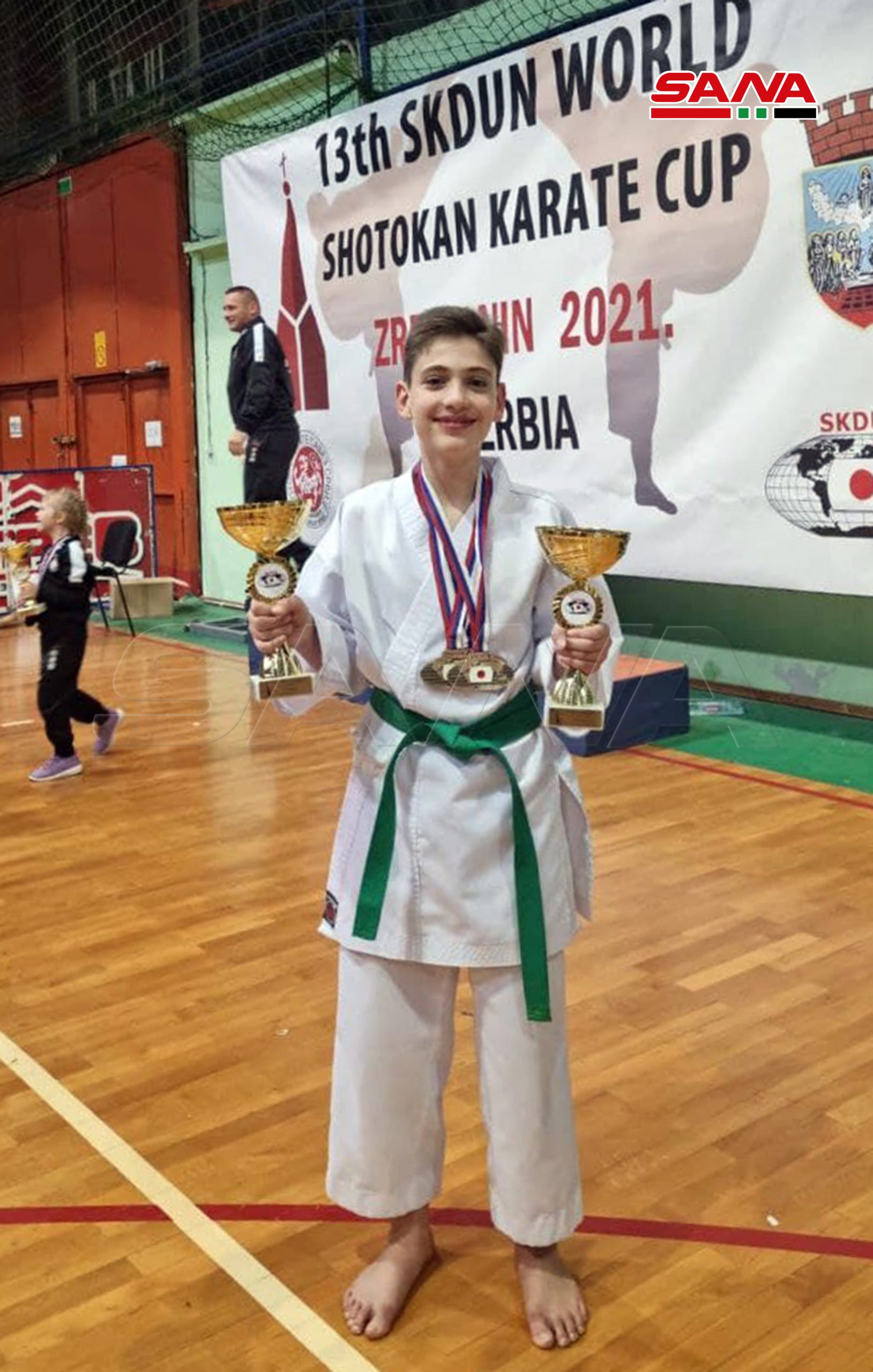 Belgrado, 15 nov (SANA) El niño sirio Daniel Ayman Abaza, ganó dos medallas de oro en kárate mixto y kárate colectivo mixto en el 28º Campeonato Mundial de Karate Shotokan, celebrado en la ciudad serbia de Zrenjanin.