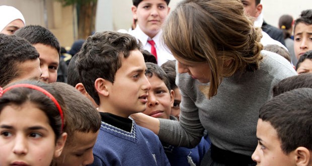 La Primera Dama, Asmaa al-Assad, visitó este jueves el orfanato de “Al-Aman” y la Asociación Cristina Ortodoxa de San Gregorios que presta atención a los huérfanos y ancianos.