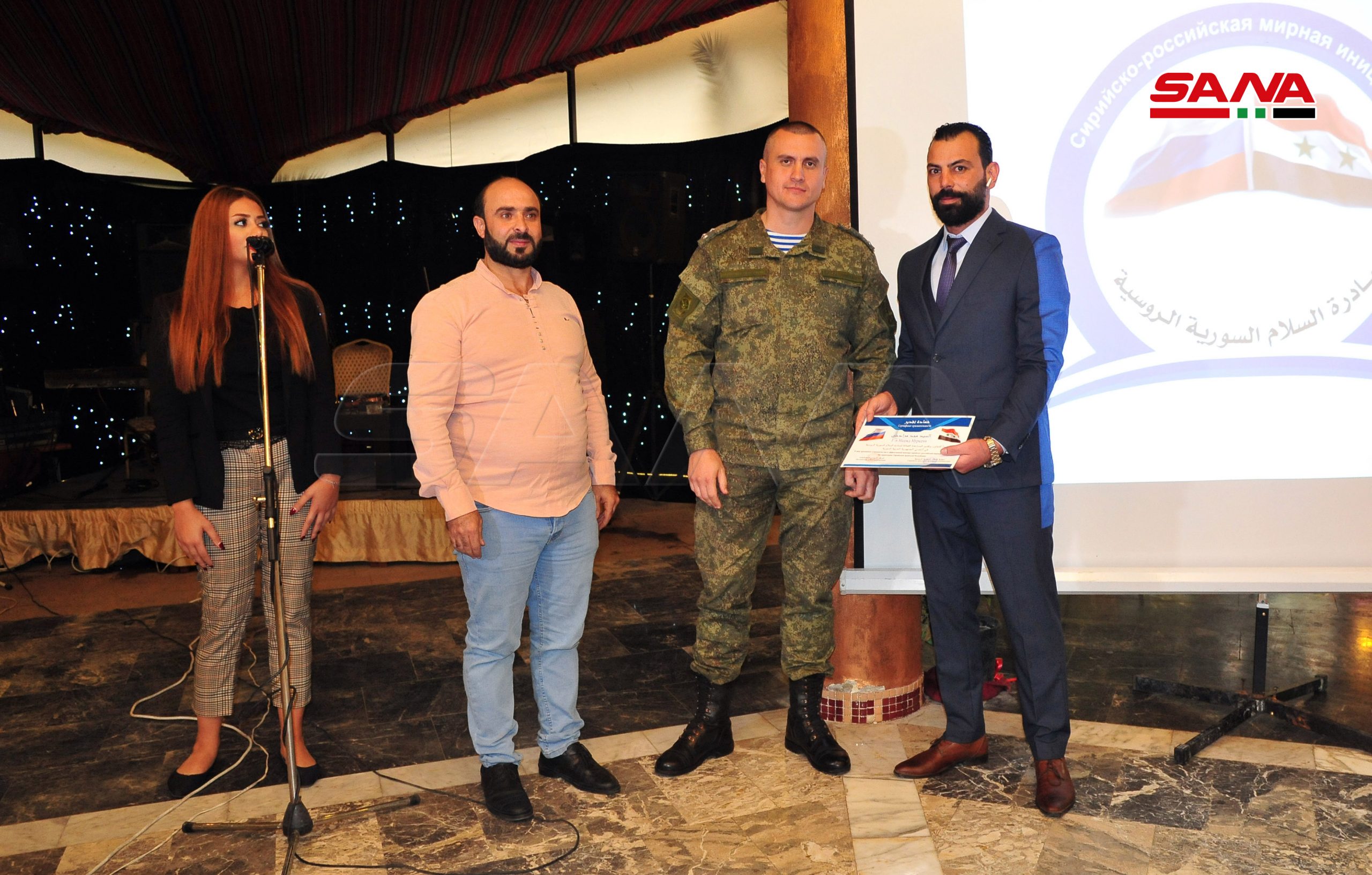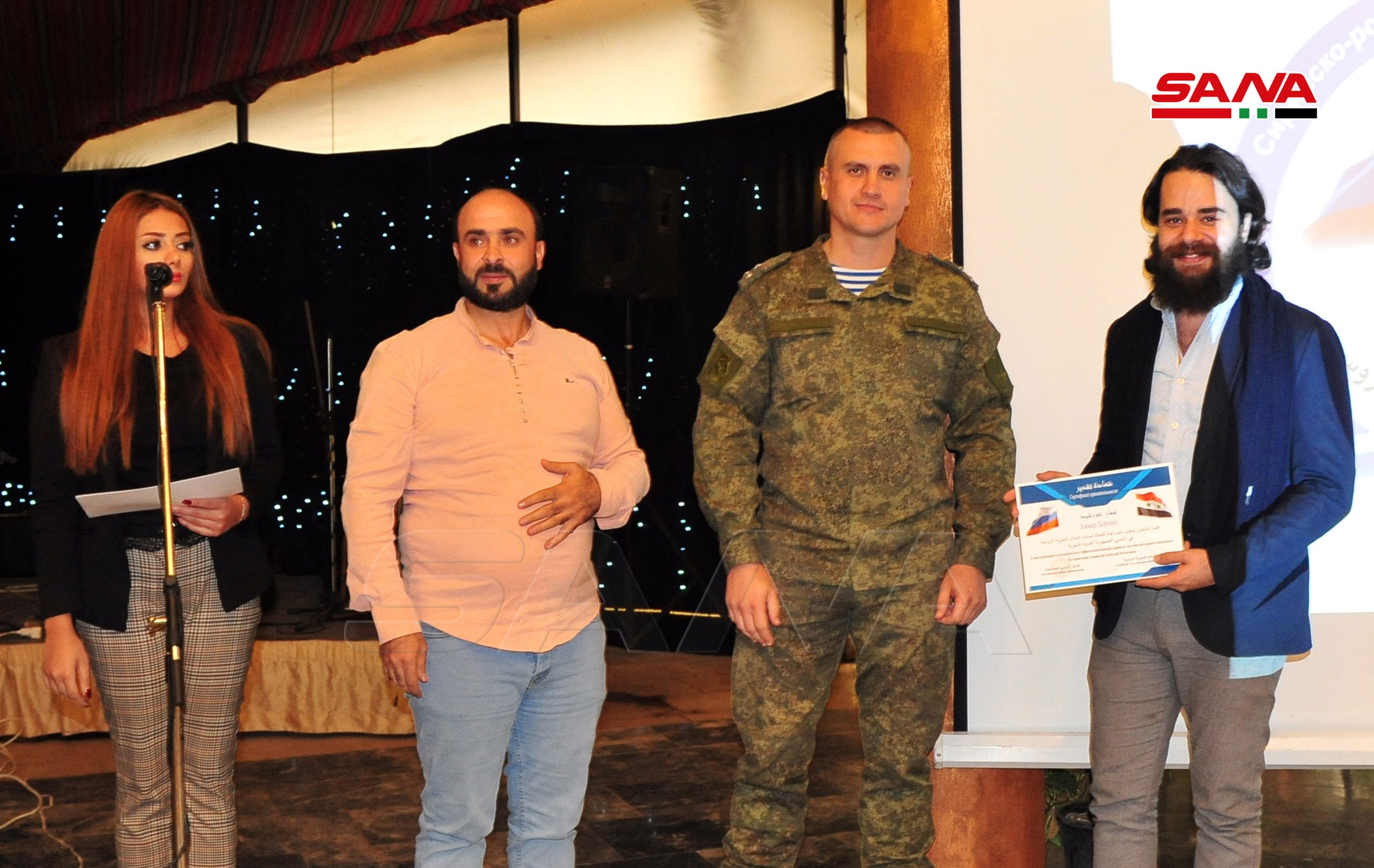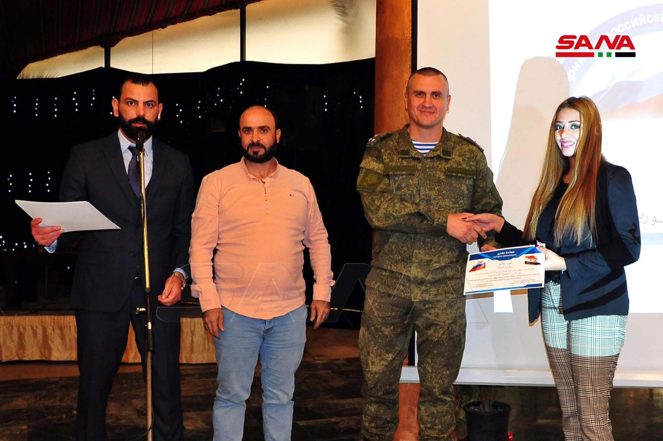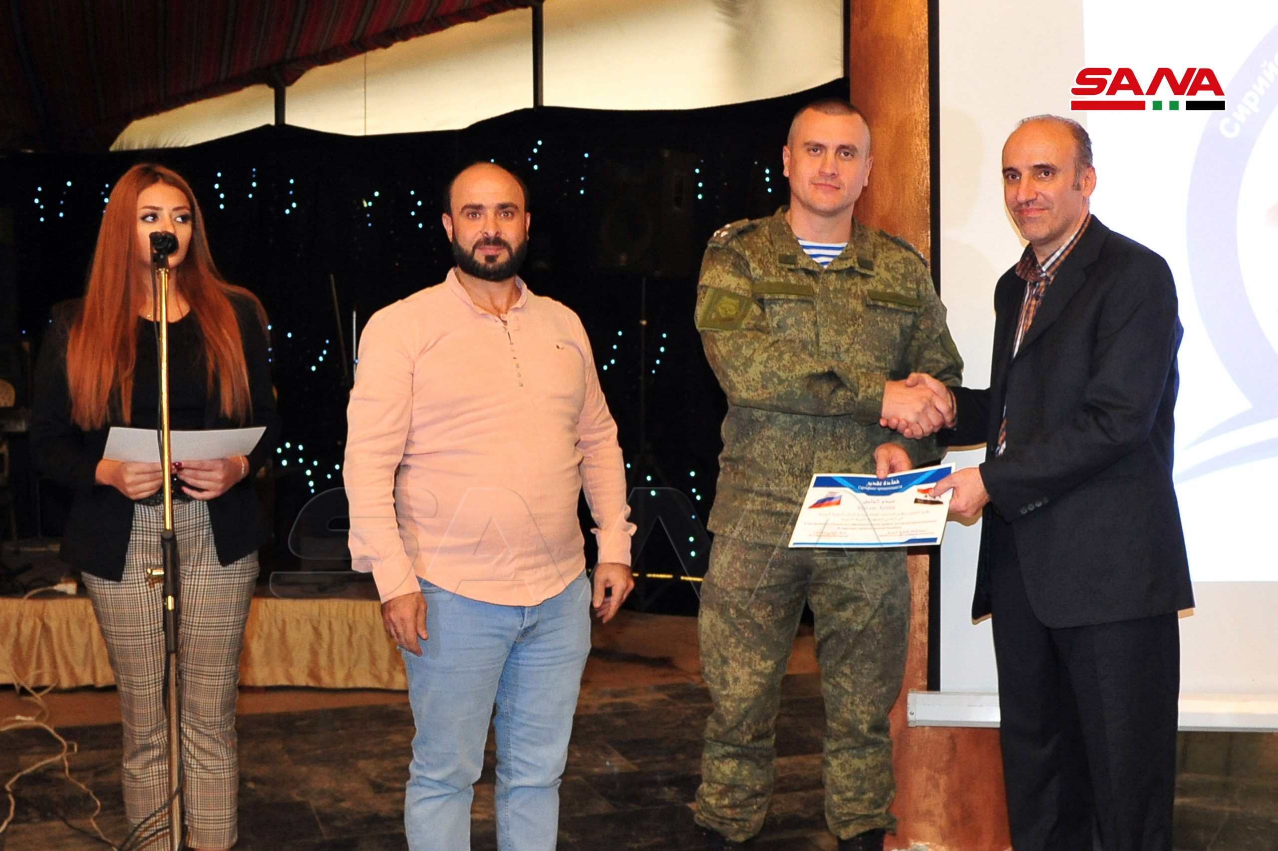 La ceremonia incluyó segmentos de canto y un filme corto sobre los sacrificios del ejército sirio y el posicionamiento de Rusia en la batalla contra el terrorismo.