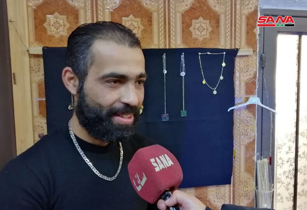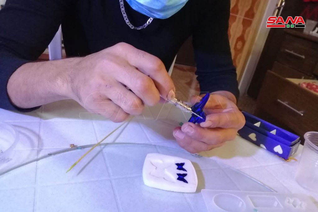 Swaida, 23 nov (SANA) Con moral alta y fuerte voluntad, el herido de guerra Hazem Nasr desafió su lesión montando un miniproyecto de accesorios, durante el año en curso desde su casa en la ciudad sureña de Swaida.