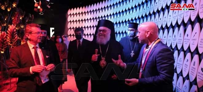 Dubái, 25 nov (SANA) Yohanna X Yazaji, patriarca de Antioquía y todo el Oriente para los greco-ortodoxos, y la delegación que le acompaña, visitaron el pabellón sirio en Expo 2020, donde fue recibido por el comisionado del pabellón, el embajador de Siria en Emiratos Árabe Unidos, Ghassan Abbas, y por el director del pabellón, Khaled al-Sham’a.