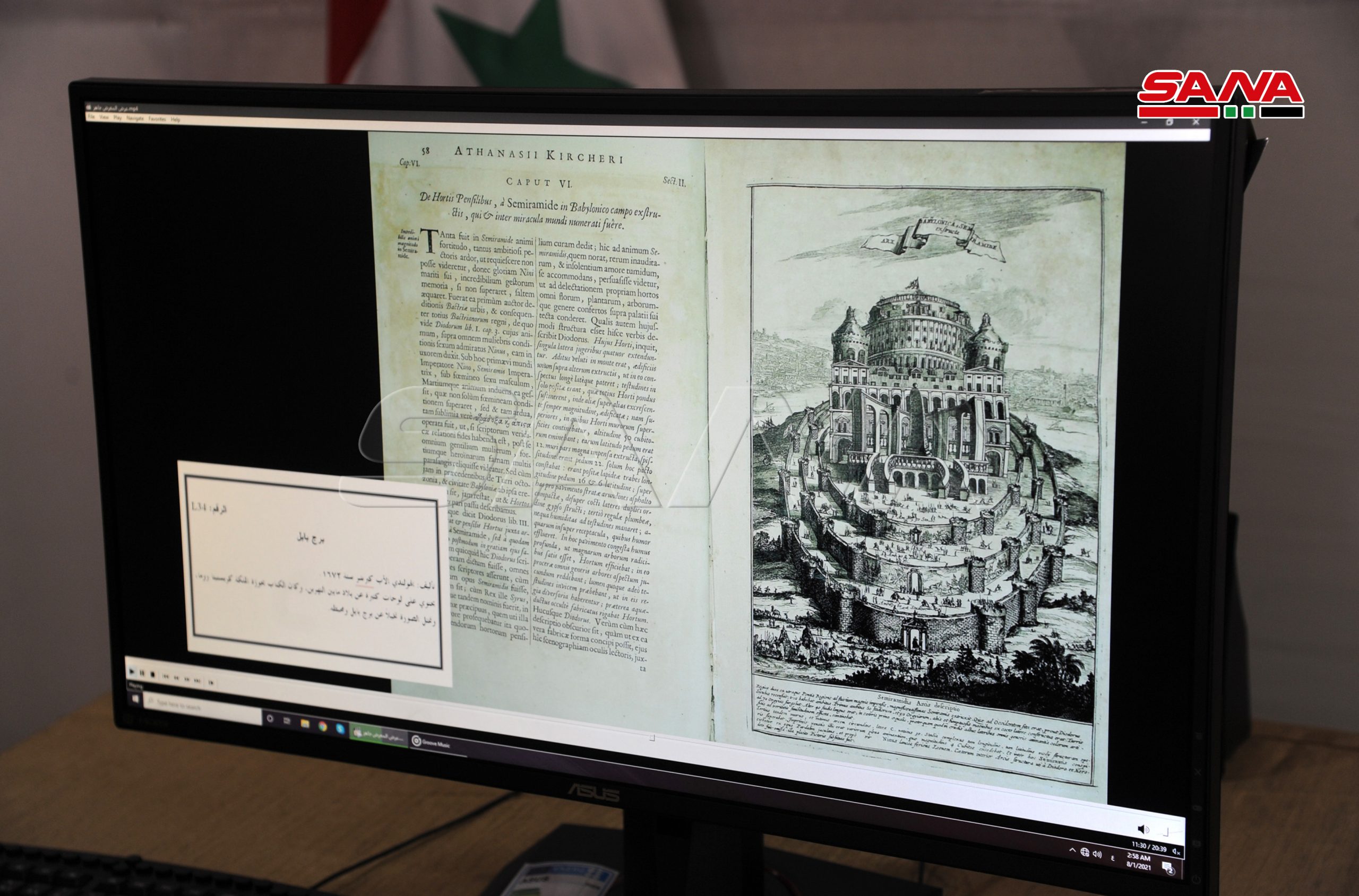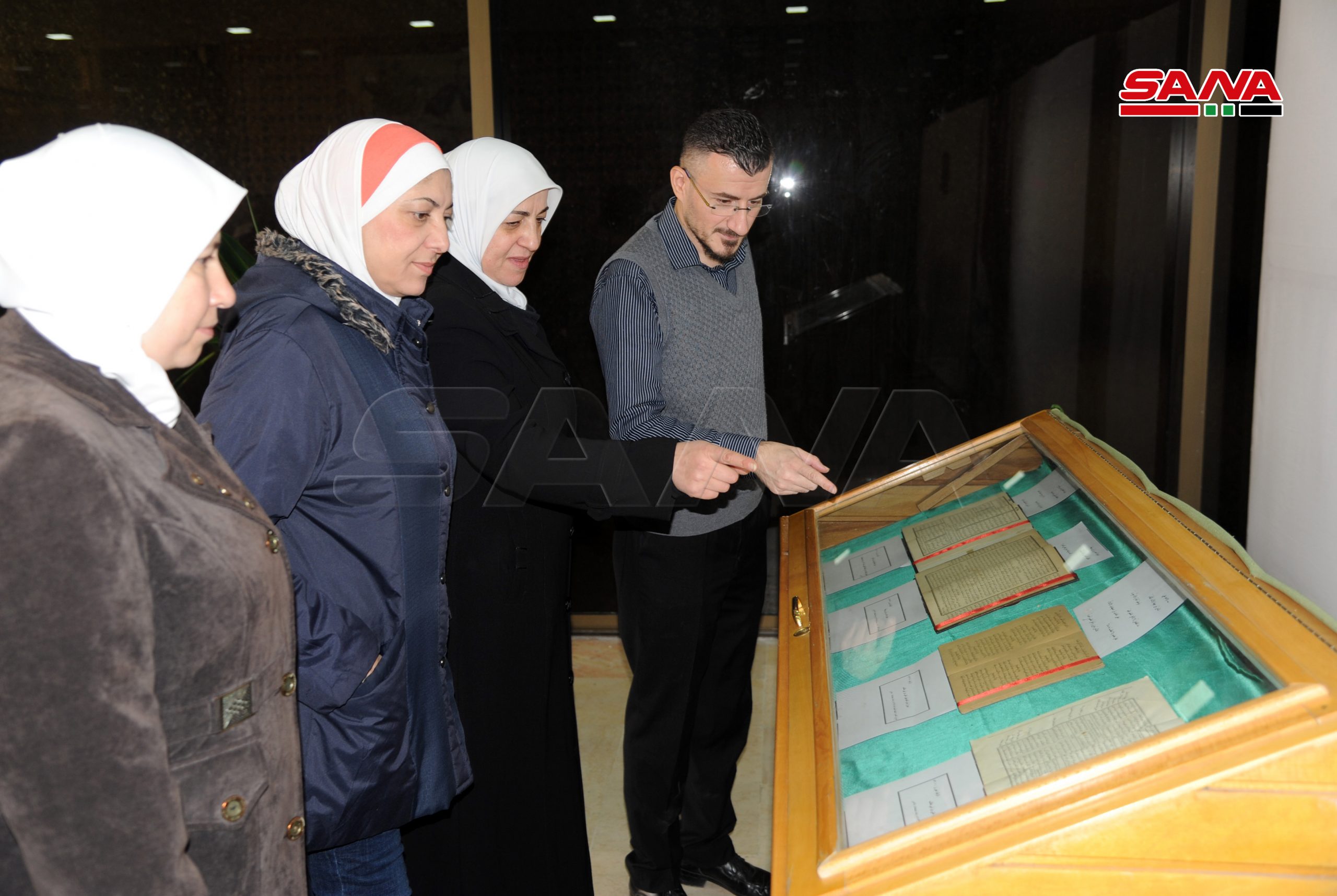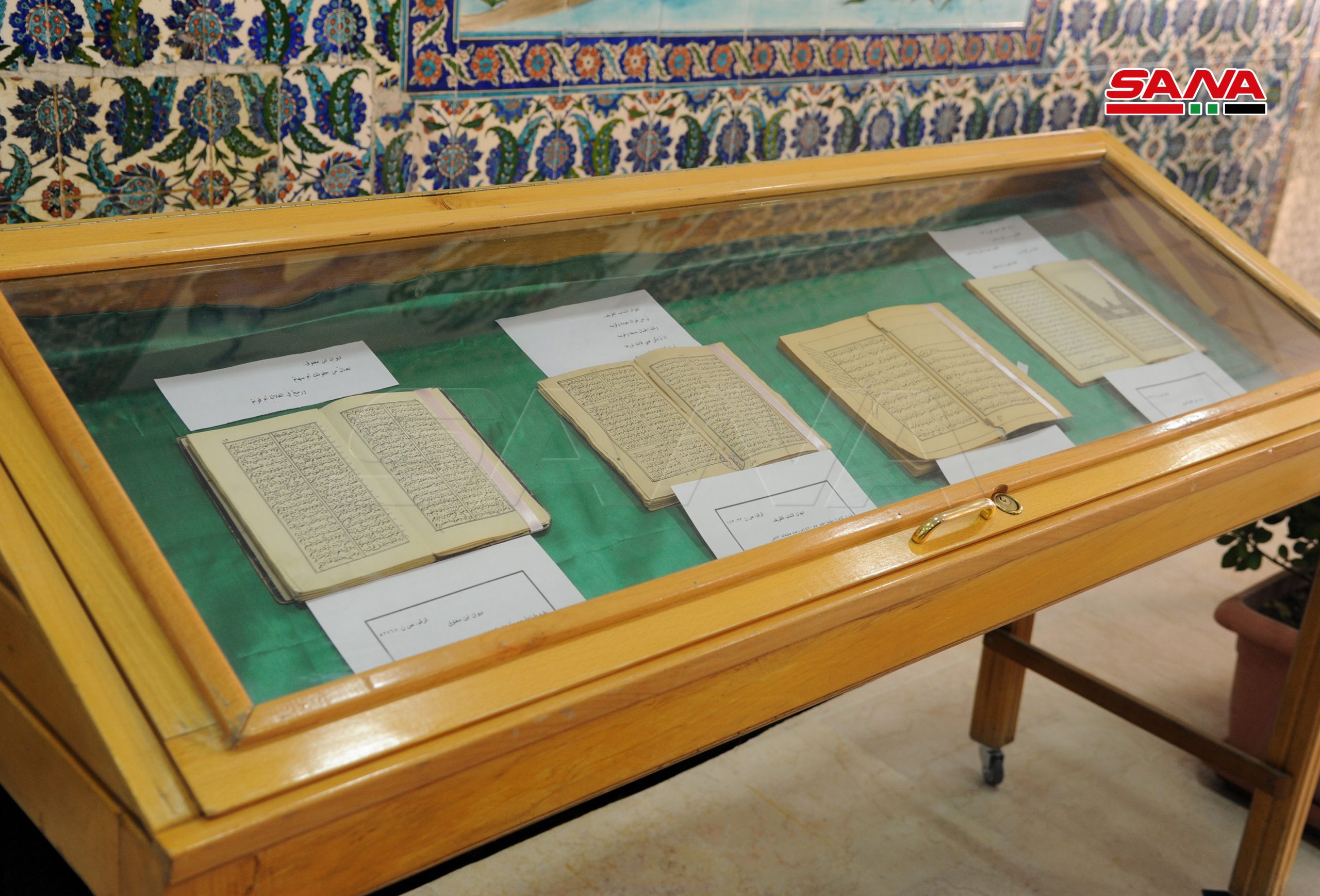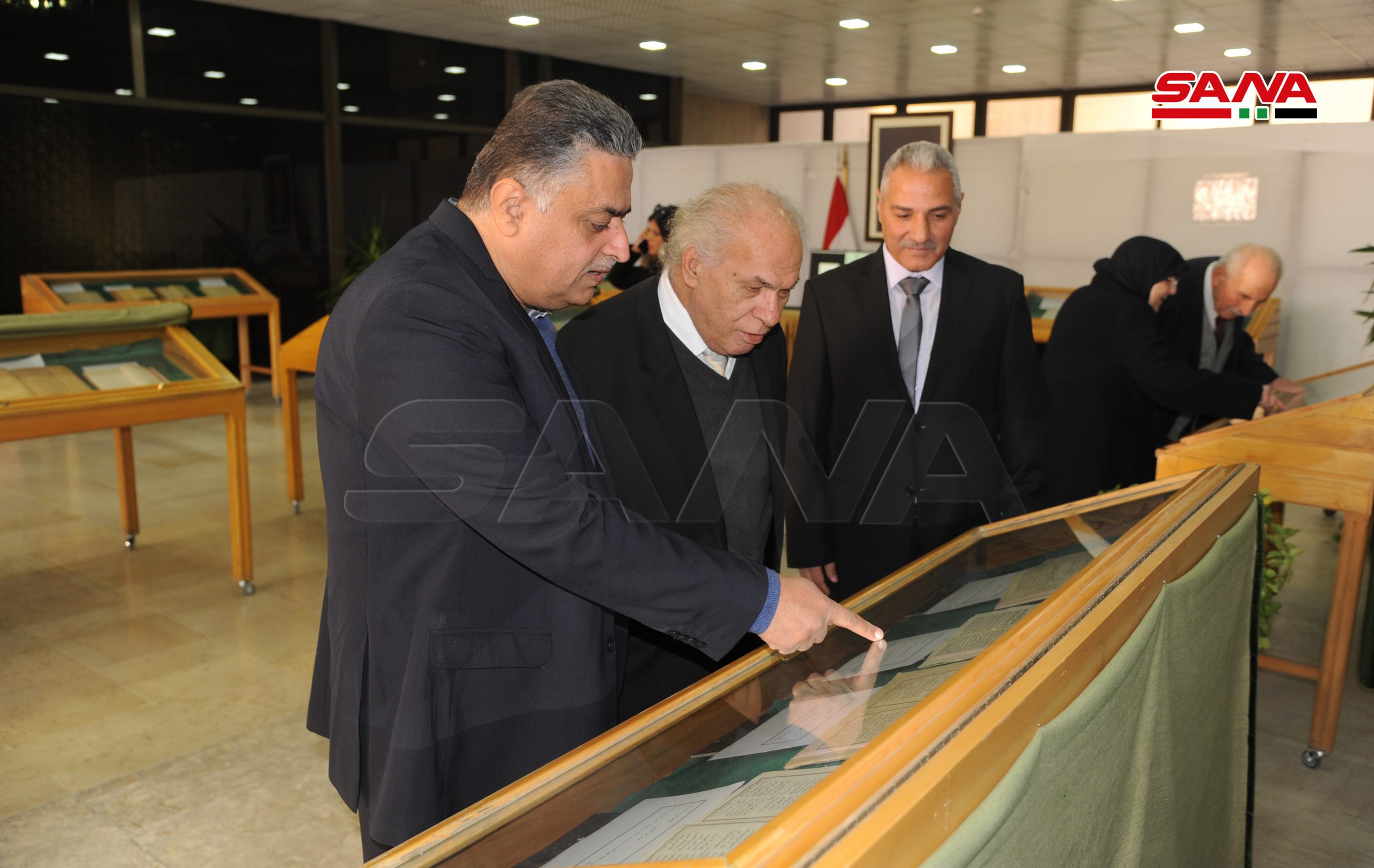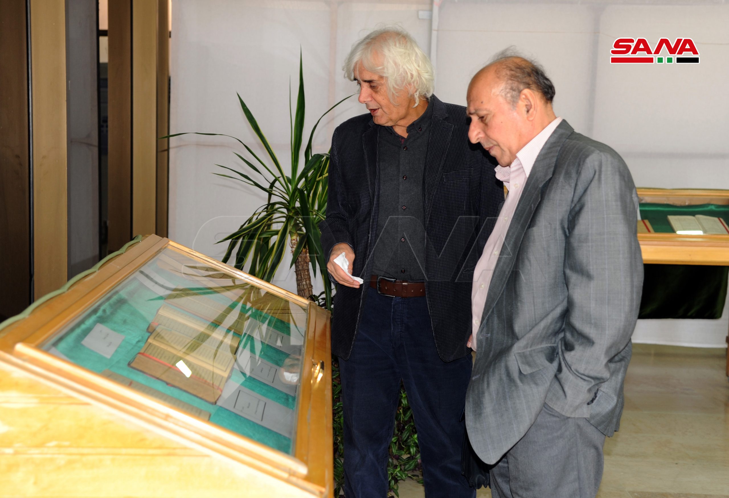 “Esta muestra de libros en la biblioteca de Al-Assad que se imprimieron en etapas anteriores, es un tesoro en todo el sentido de la palabra por la belleza de estas publicaciones en forma de caligrafía y por los contenidos que contienen”, dijo el Director General del Comité Sirio del Libro, Thaer Zain Al-Din, a SANA.