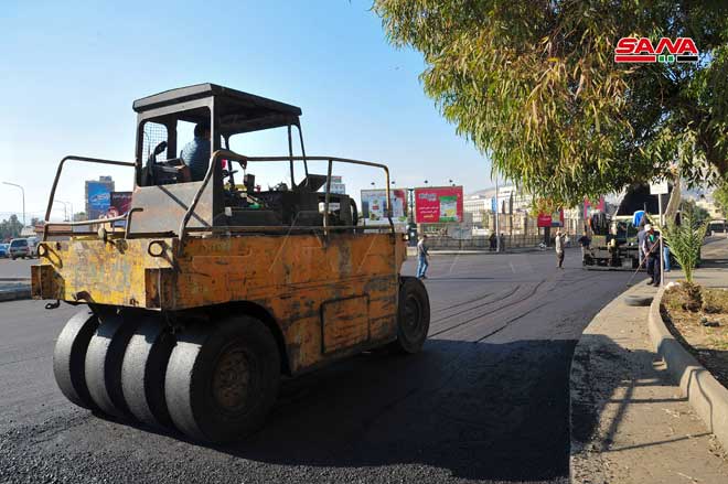 26/11/2021 Damasco, 26 nov (SANA) Mantenimiento y pavimentación de calles y avenidas en Damasco 2021-11-26 samer