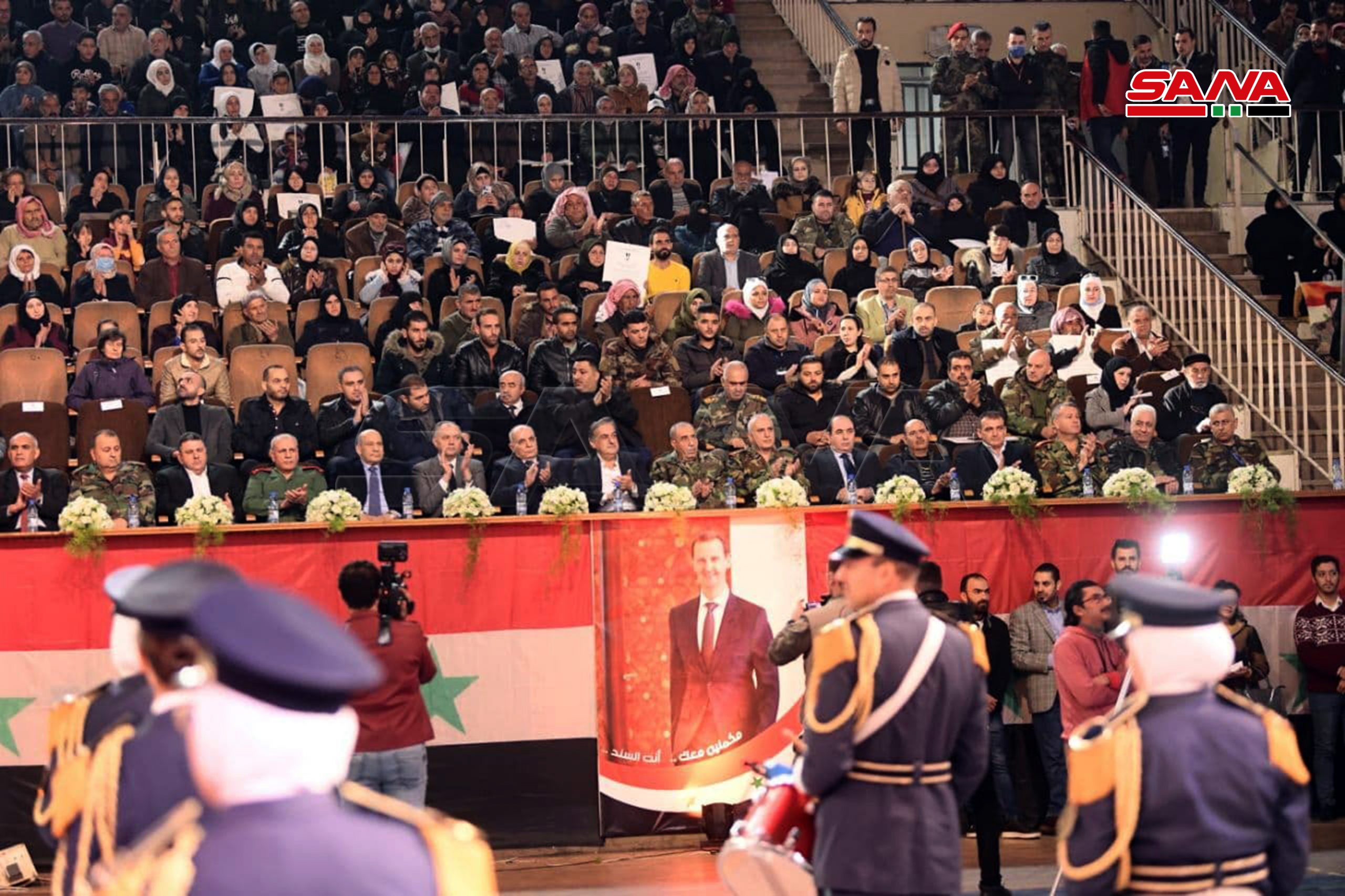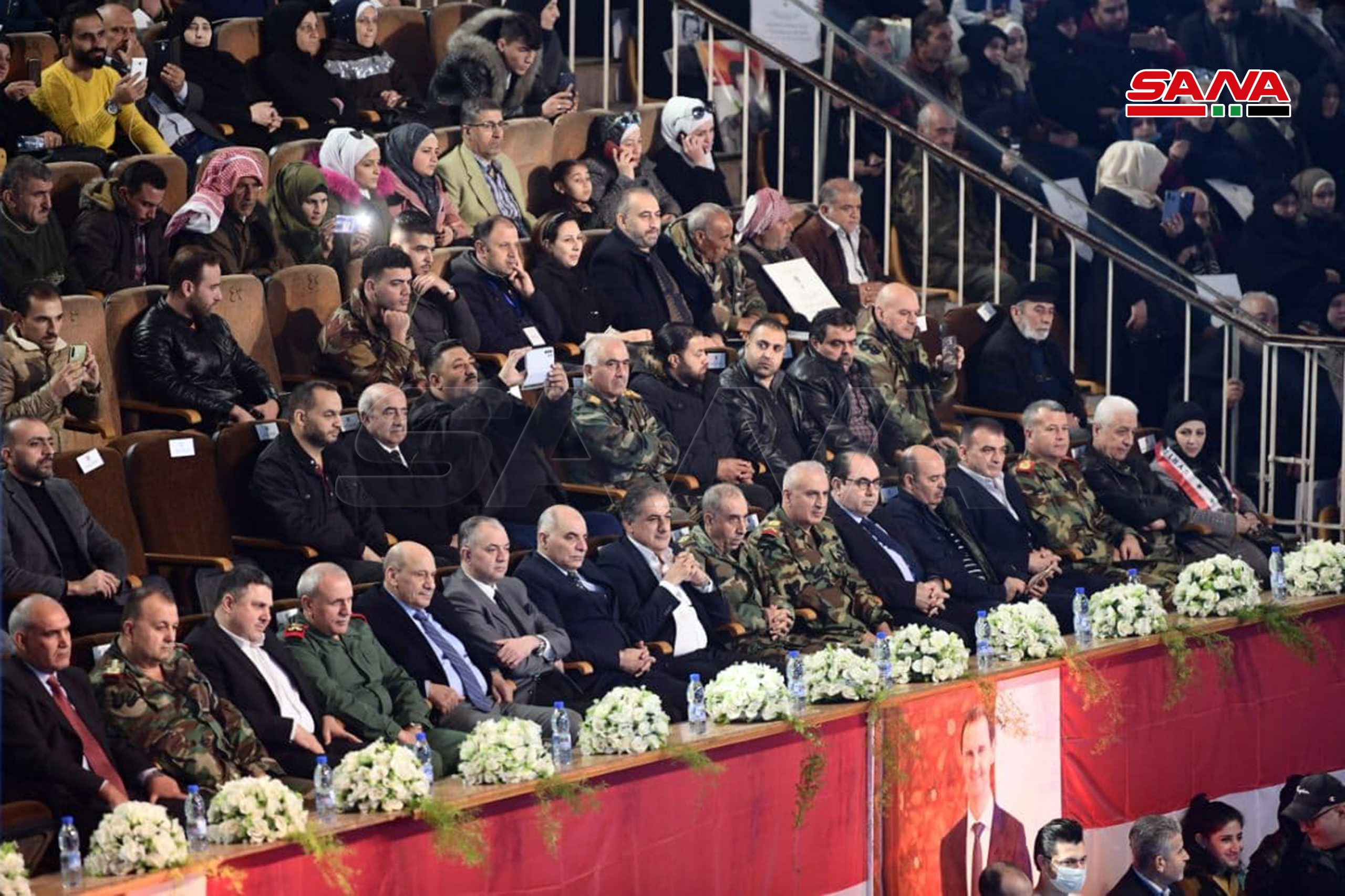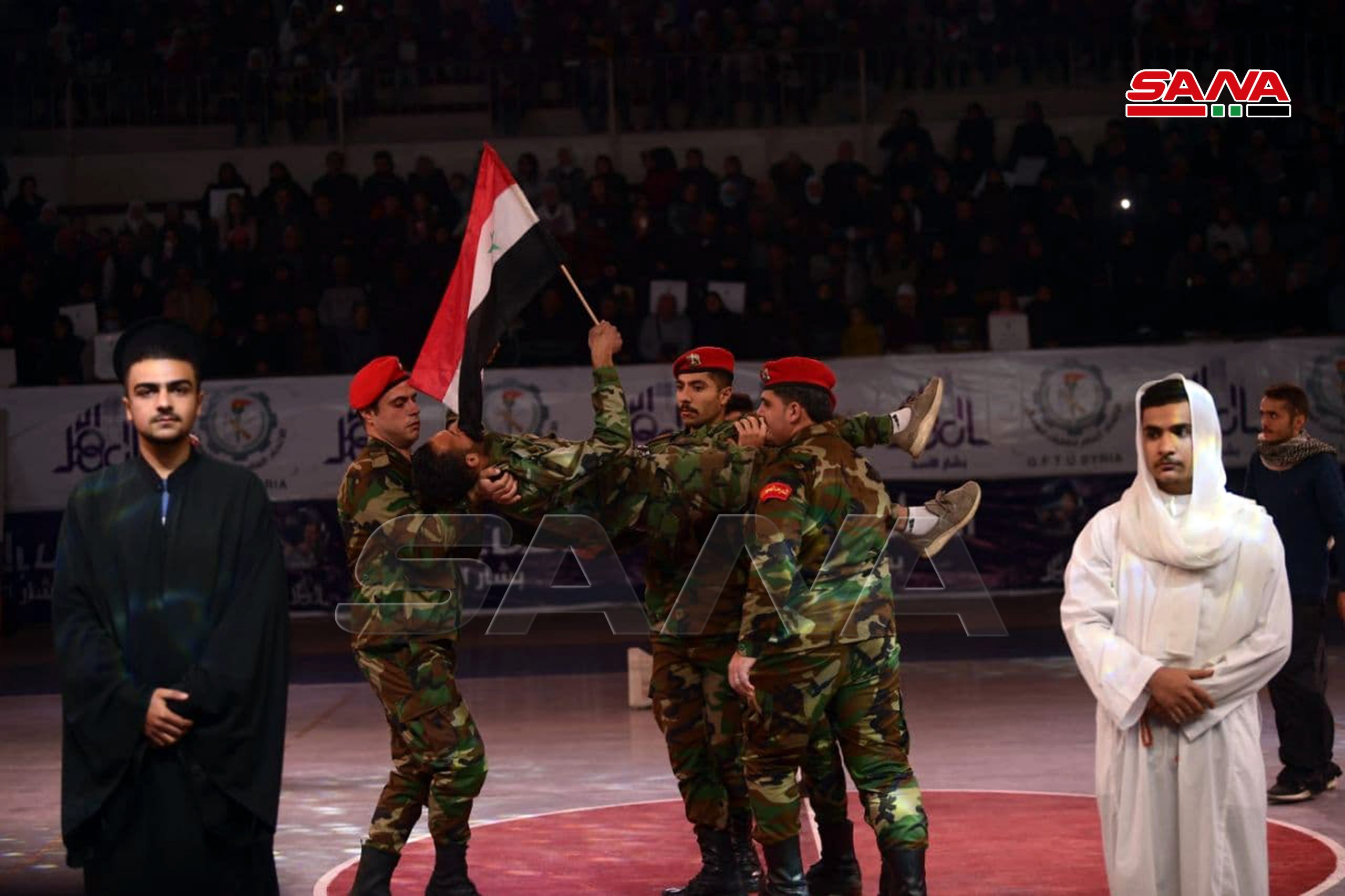 La ceremonia incluyó representaciones teatrales y artísticas que rememoran heroísmo del Ejército Árabe Sirio contra el terrorismo.