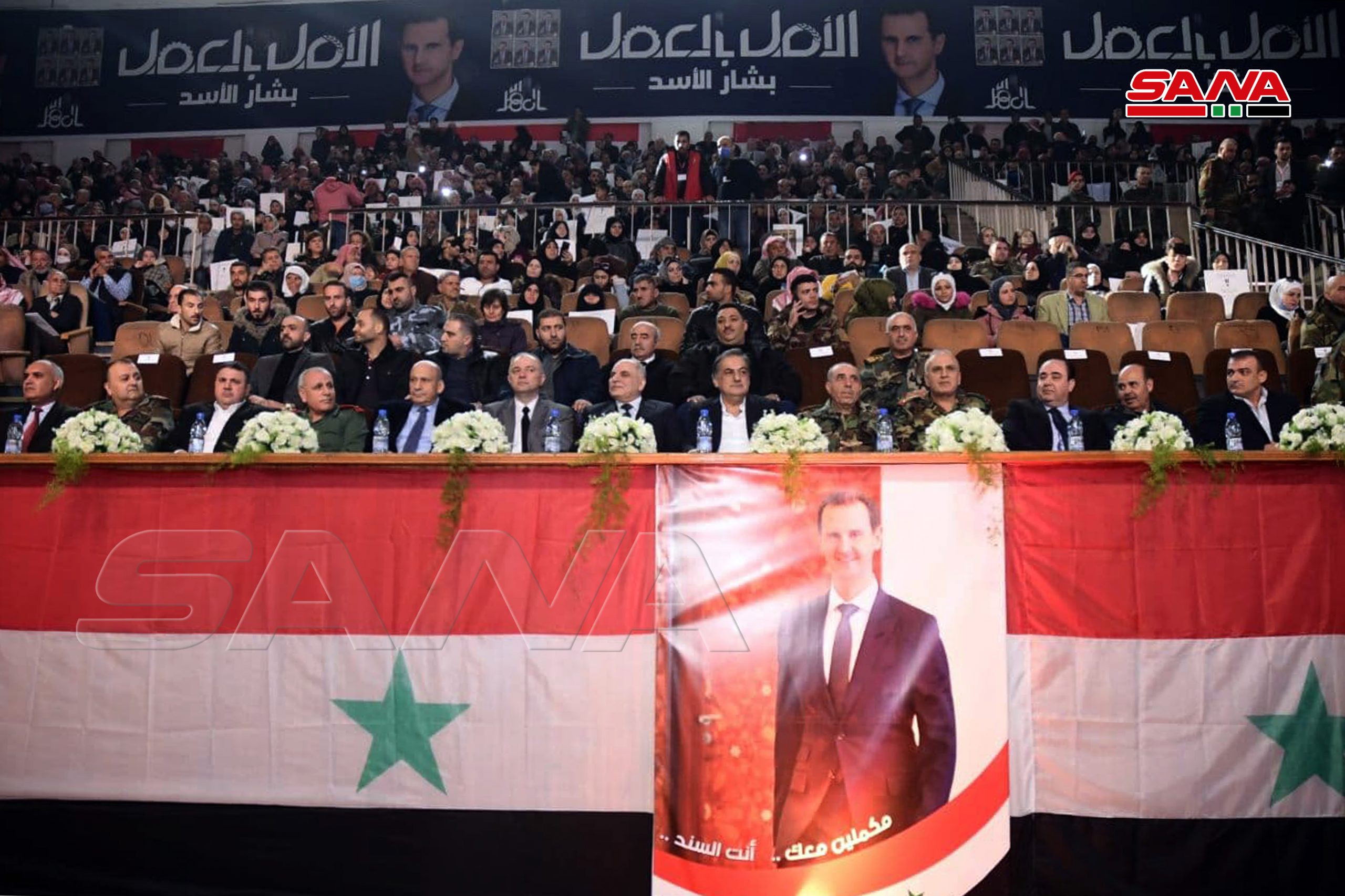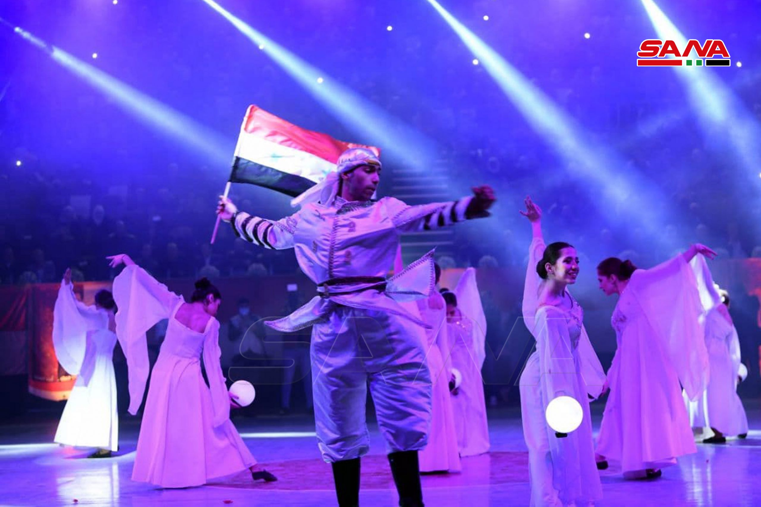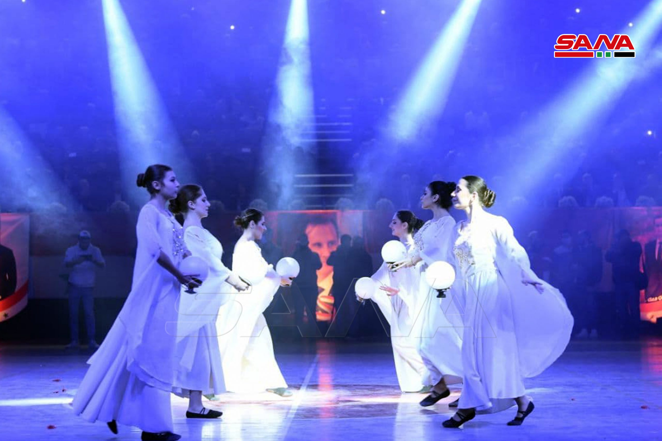 La ceremonia incluyó representaciones teatrales y artísticas que rememoran heroísmo del Ejército Árabe Sirio contra el terrorismo.