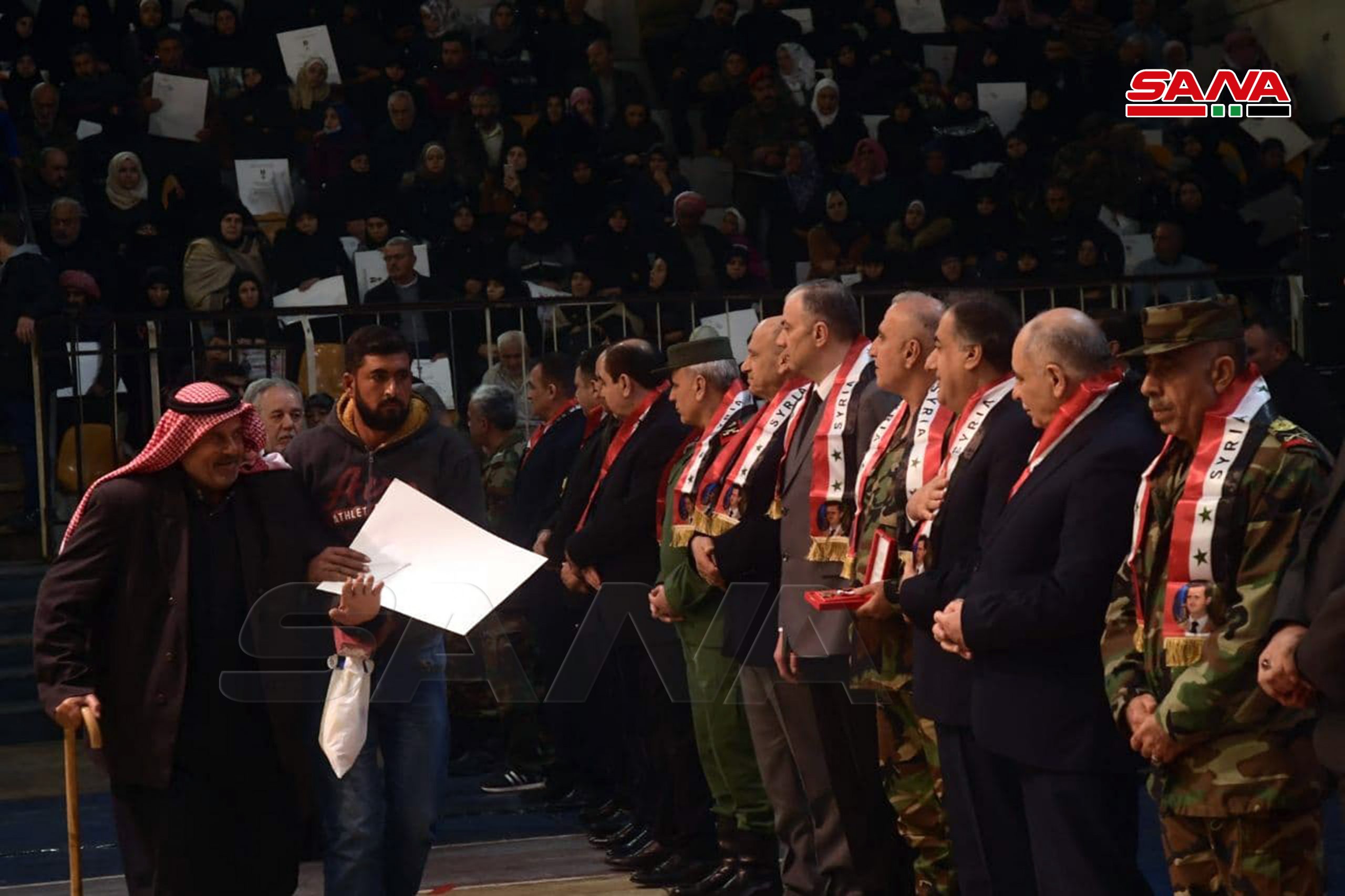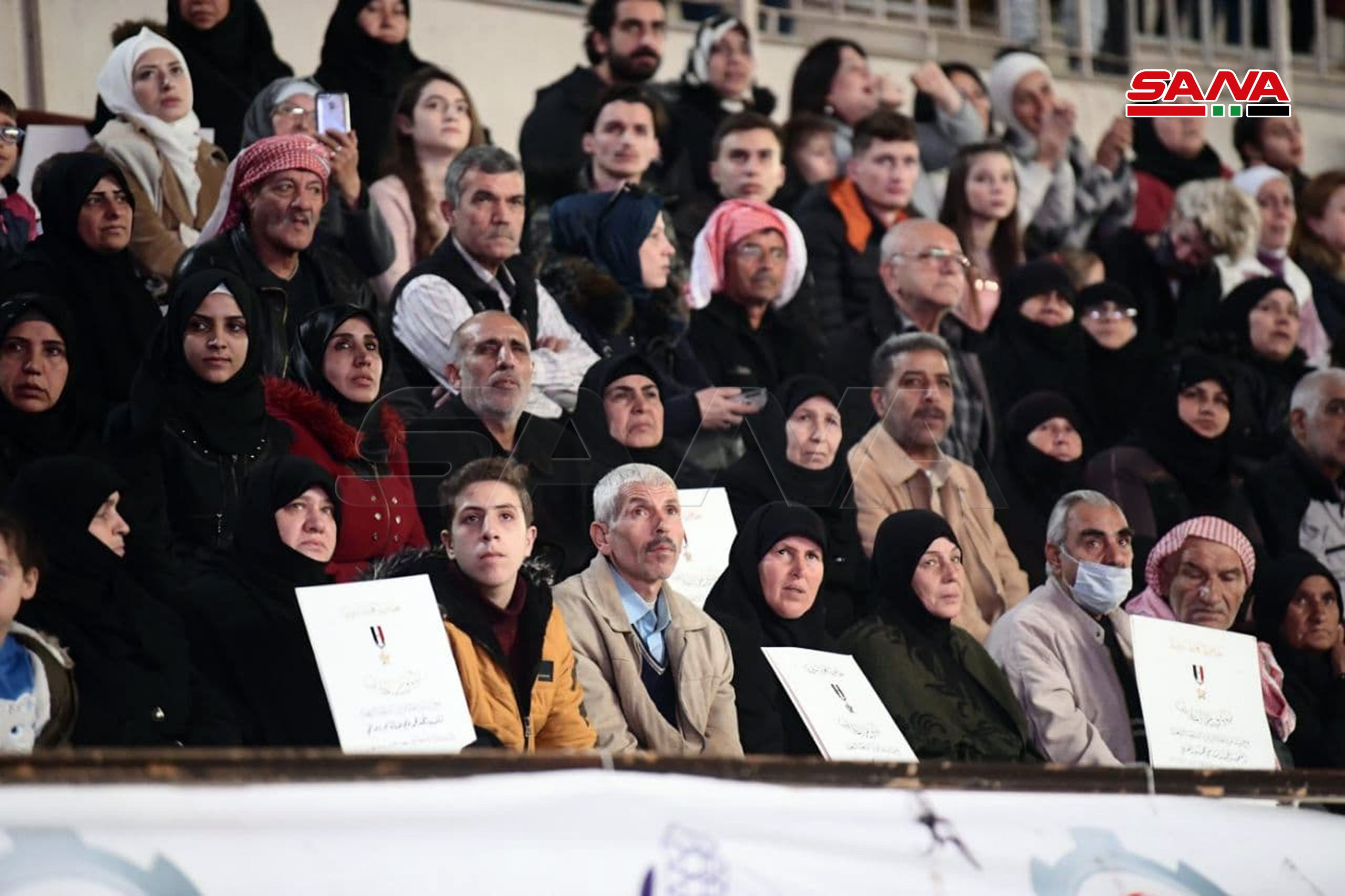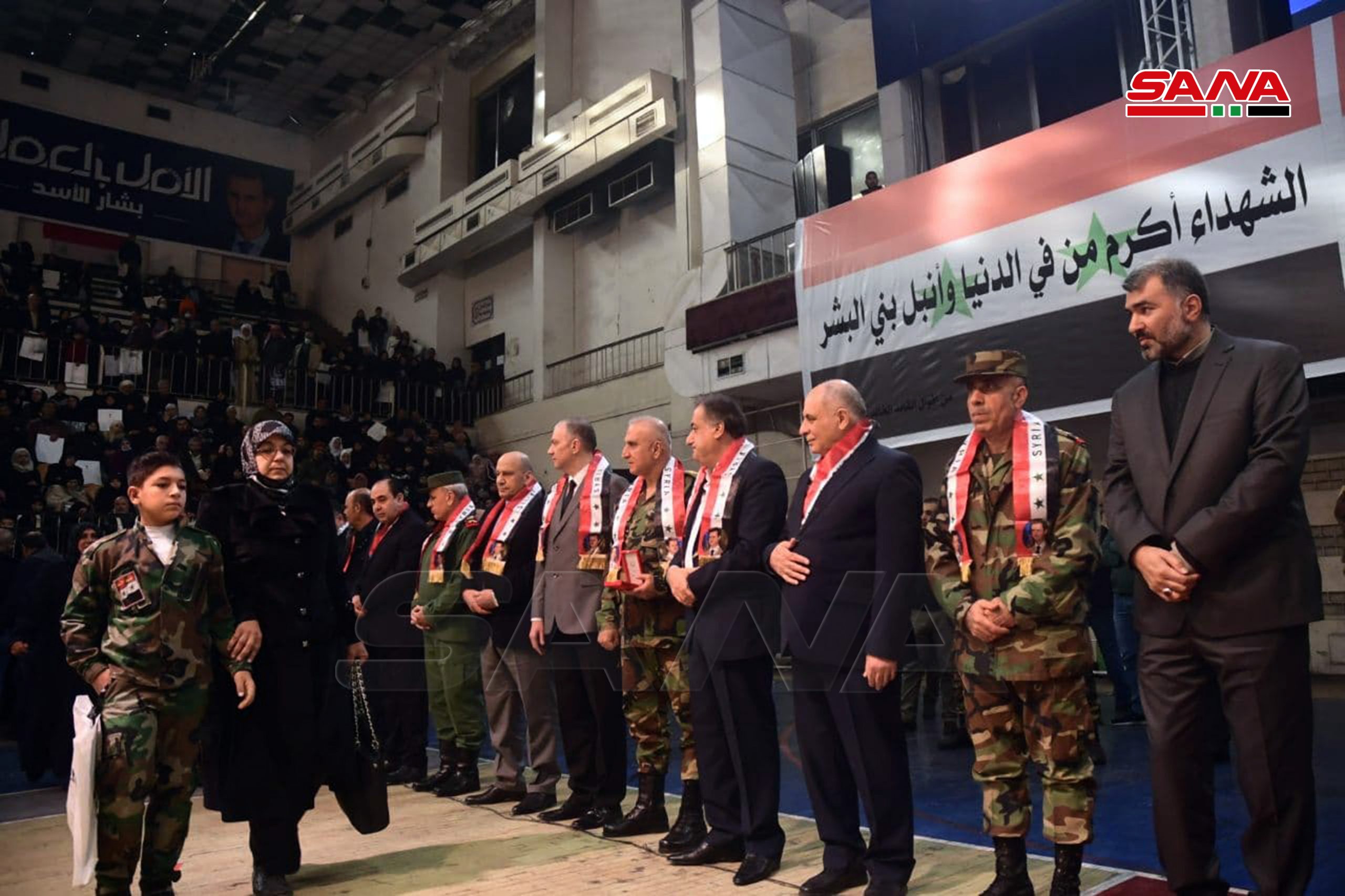 Alepo, 27 nov (SANA) La gobernación de Alepo homenajeó hoy a mil familias de mártires durante una ceremonia celebrada en el polideportivo Al-Assad.