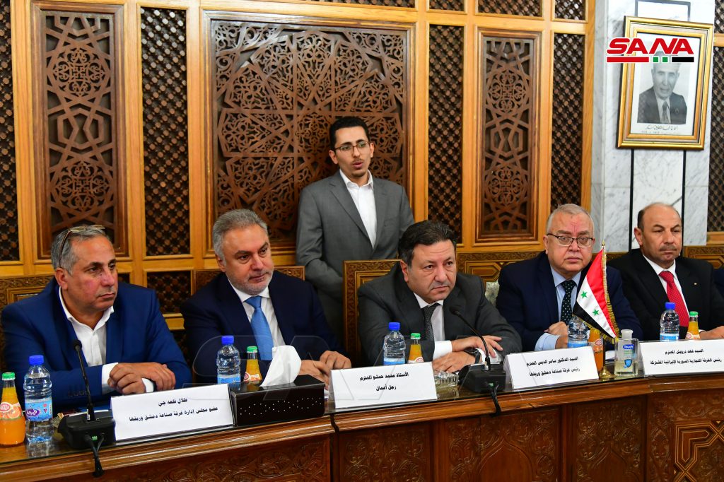 Damasco, 29 nov (SANA) El presidente de la Junta Directiva de la Cámara de Industria de Damasco y Damasco-campo, Samer Al-Debs, estudió este lunes con el presidente de la Federación de la Cámara de Comercio, Industria, Minas y Agricultura de Irán, Gholam hossein Shafei, y la delegación acompañante, los medios de mejorar las relaciones económicas entre empresas privadas y aumentar el volumen del intercambio comercial entre los dos países.