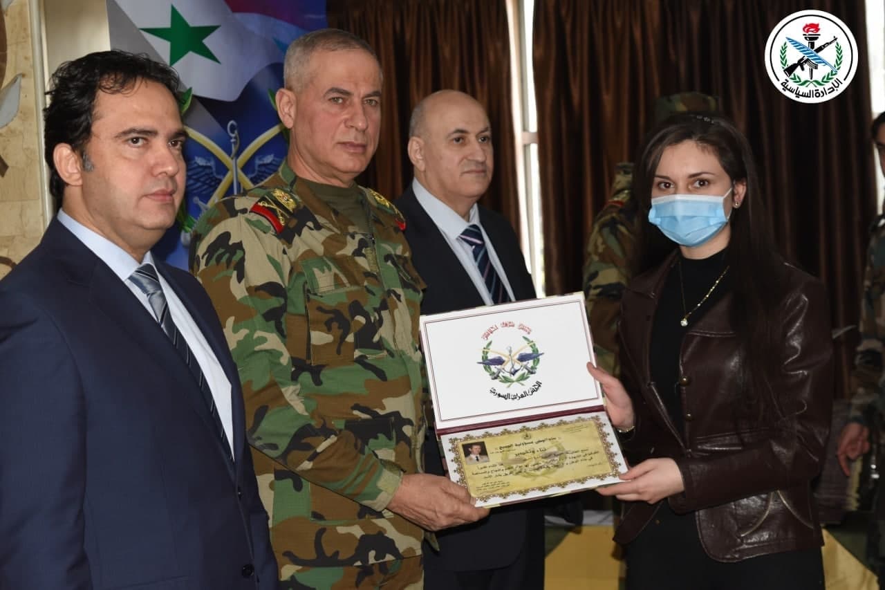 Provincias 4 dic (SANA) Bajo los auspicios del presidente Bashar al-Assad, se llevaron a cabo ceremonias de homenaje a los alumnos hijos del personal militar, mártires, desaparecidos y heridos por la guerra, que se sobresalieron en los exámenes de estudios secundarios de 2021.