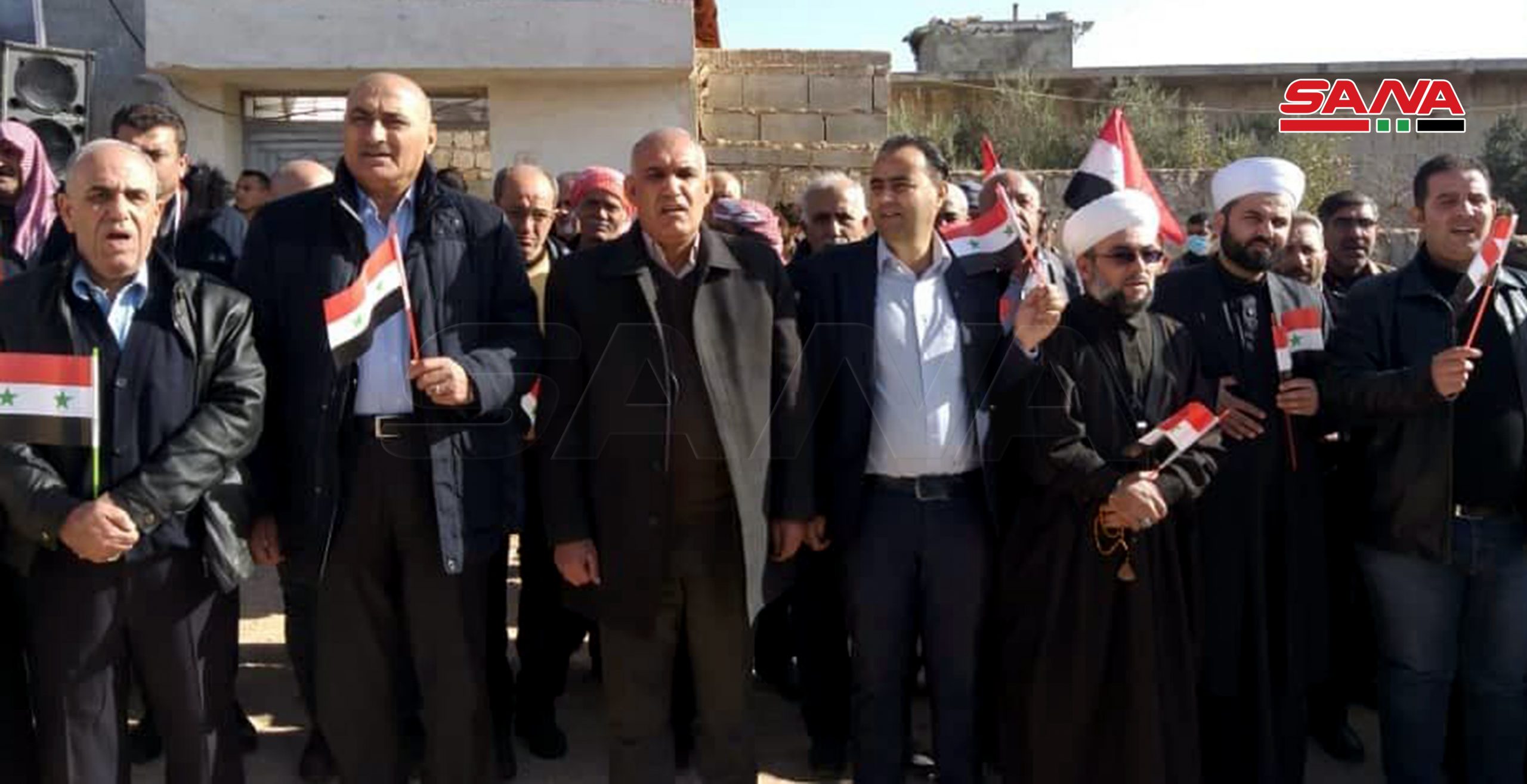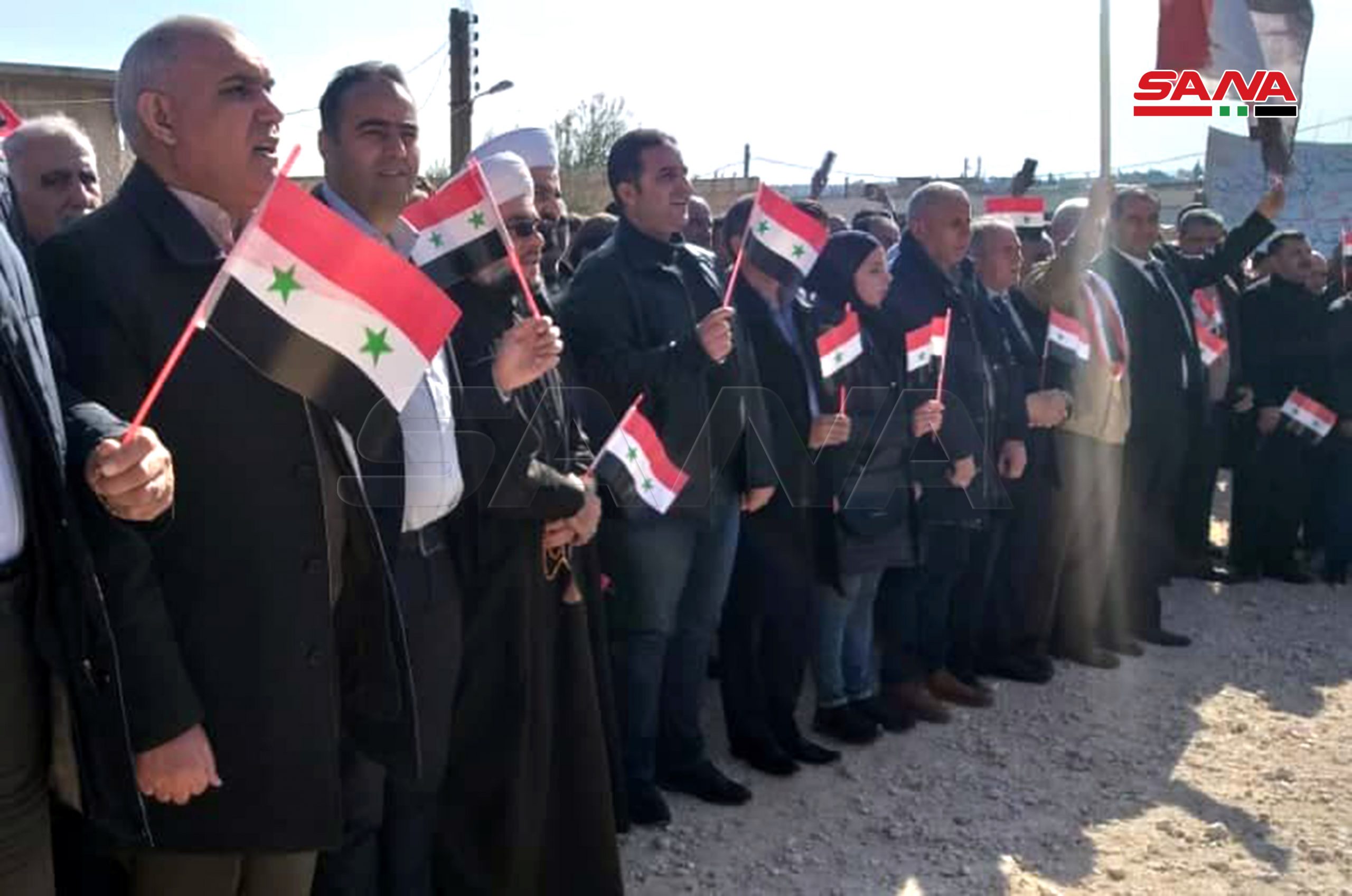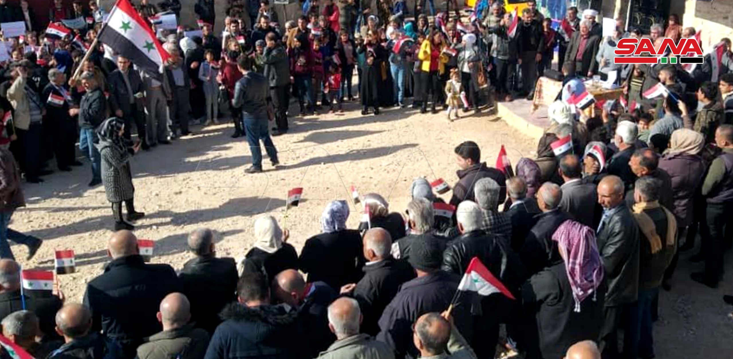Agregó que los participantes izaron banderas sirias y pancartas que exigen el fin de la ilegal presencia turca y de sus lacayos de organizaciones terroristas en el territorio sirio.