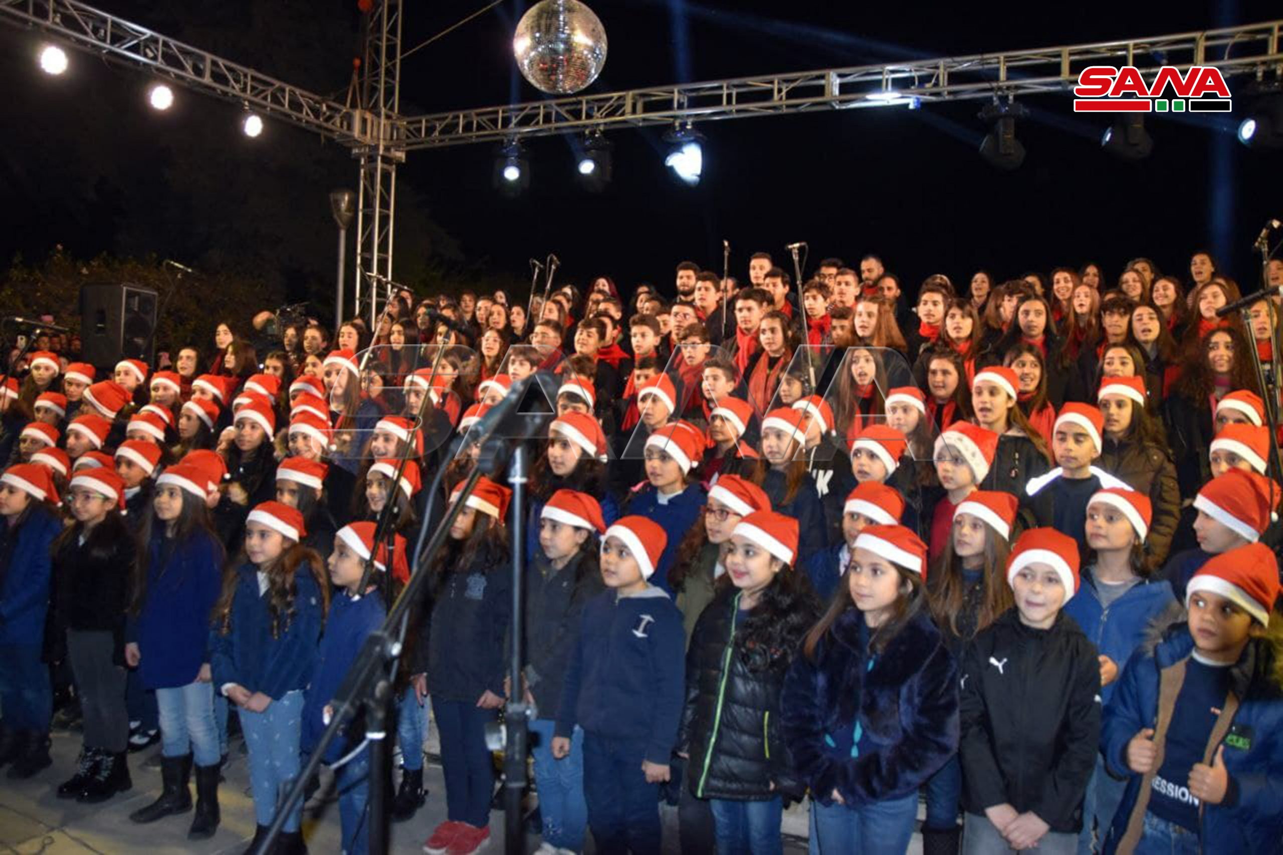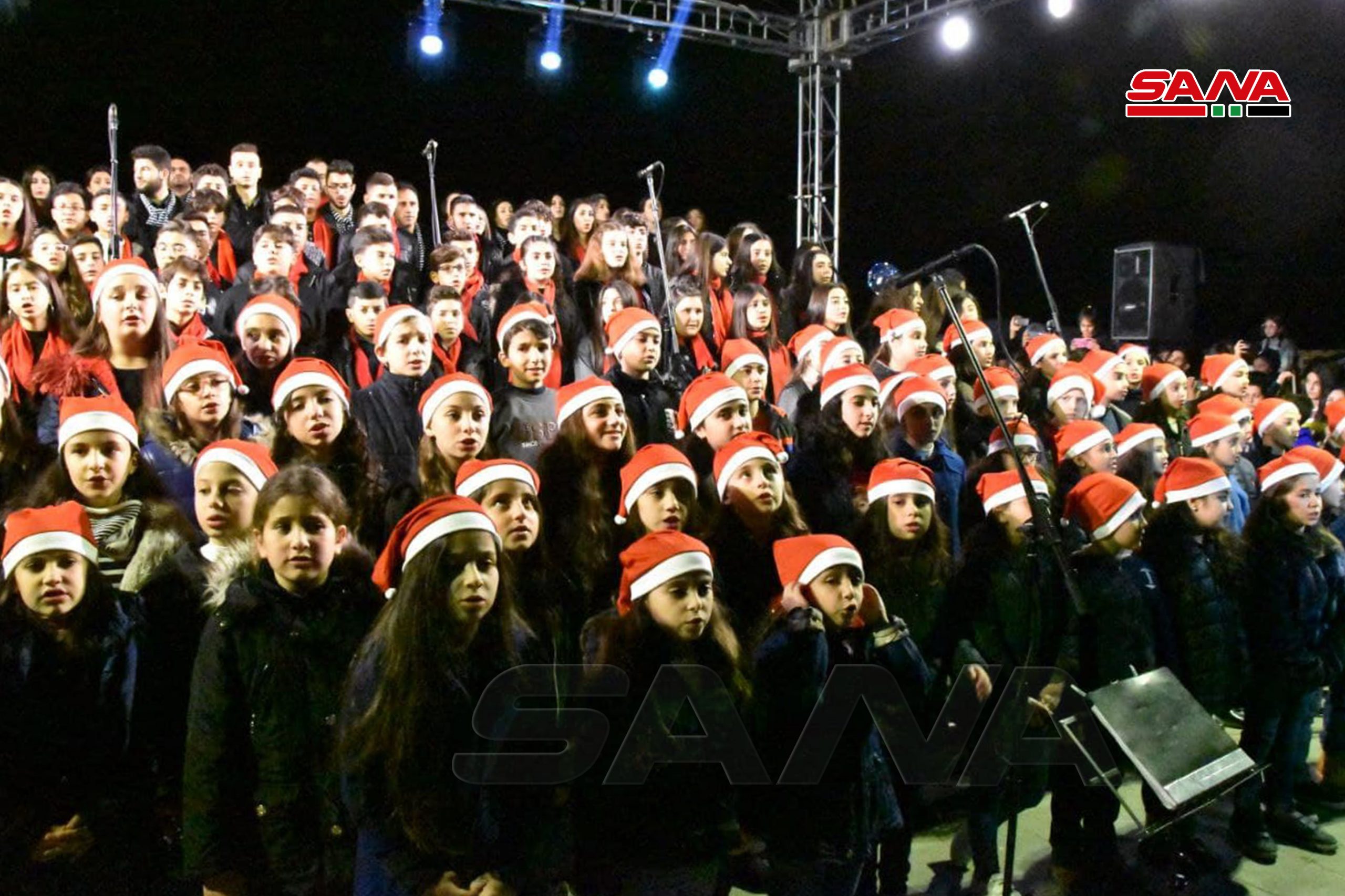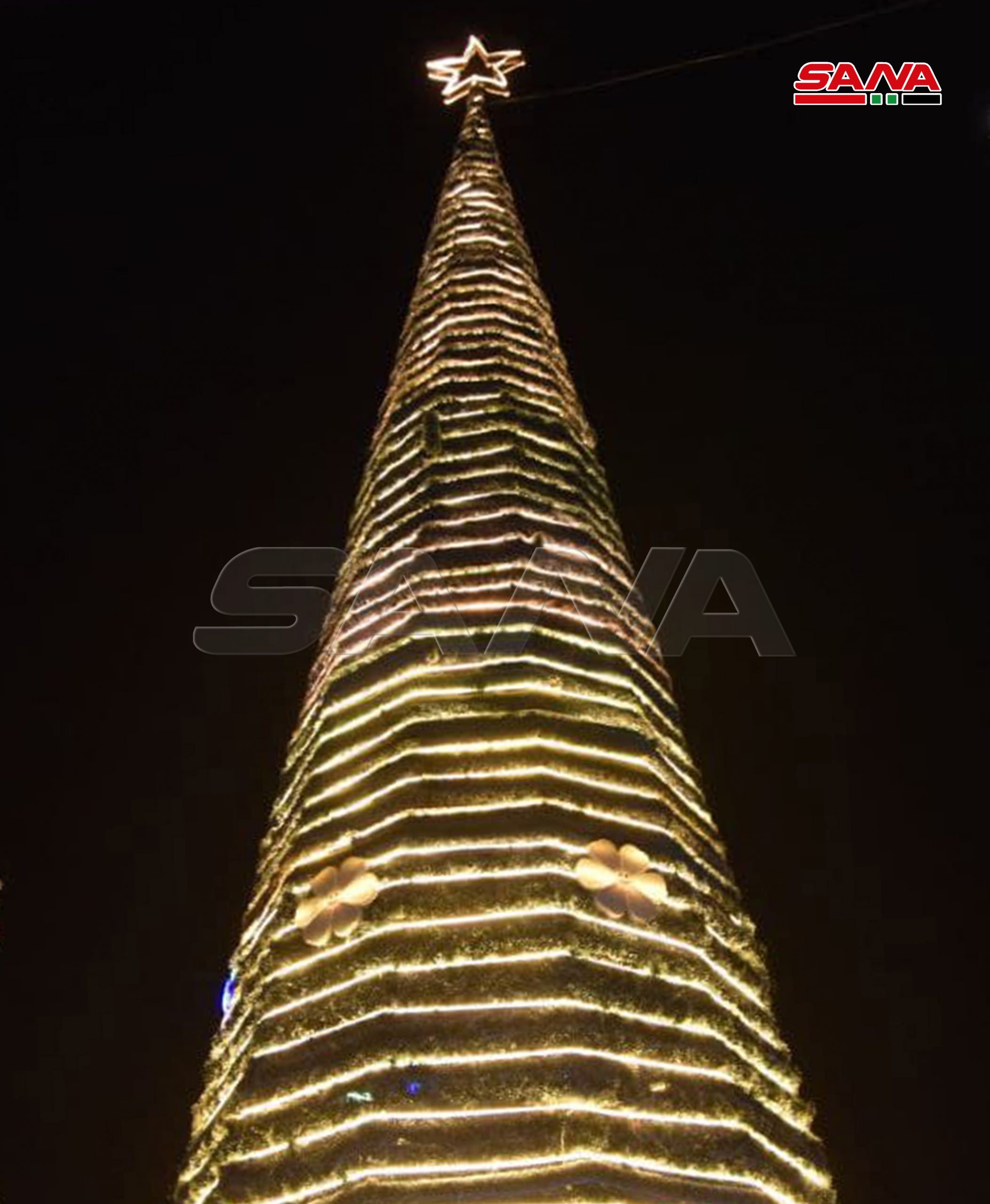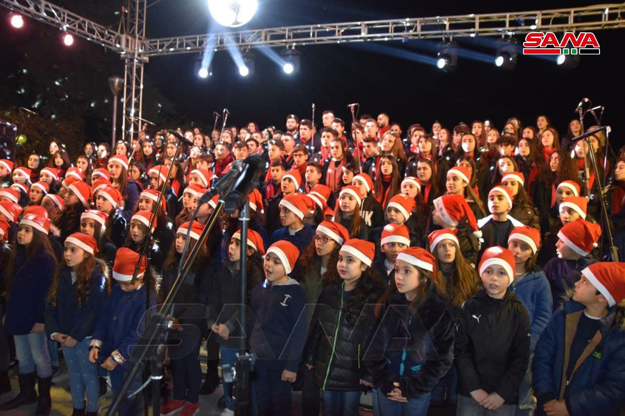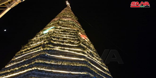 Tartus, 12 dic (SANA) Con ocasión de la Navidad y el Año Nuevo, la Cámara de Comercio e Industria de la provincia de costera de Tartus organizó una celebración frente al edificio del ayuntamiento, durante la cual se encendieron las luces del árbol de Navidad.