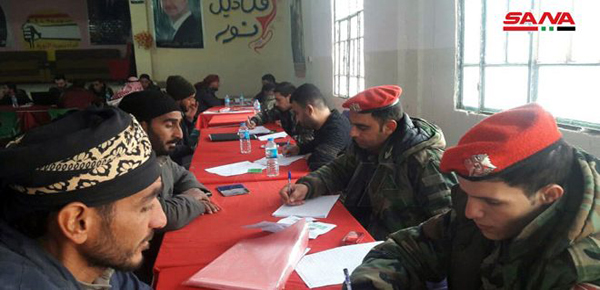 Deir Ezzor, 13 dic (SANA) El centro de reconciliación abierto el día 7 de este mes en la ciudad de Albukamal en el este de la provincia de Deir Ezzor, sigue recibiendo a cientos de personas prófugos y fugitivas del servicio militar que desean entregarse voluntariamente para que sean indultados.