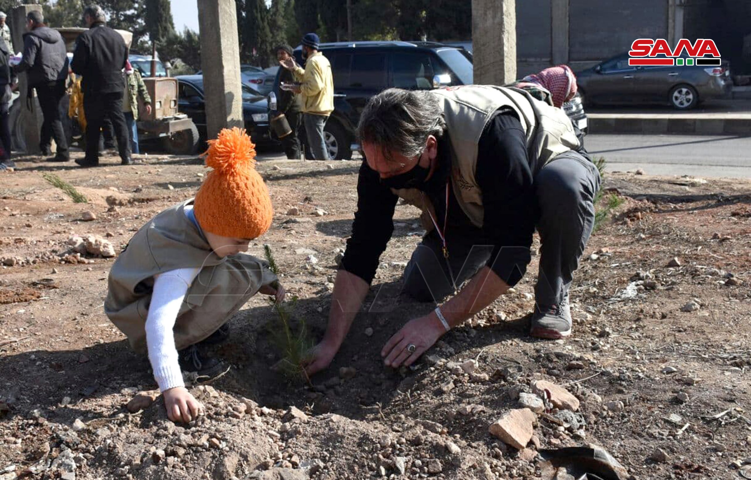 Homs, 17 dic (SANA) La Fundación “Sirios”, en cooperación con la Gobernación de Homs y la comunidad civil, organizó una campaña para plantar más de mil árboles forestales y fructíferos en varias áreas de la localidad de al-Musherfeh.
