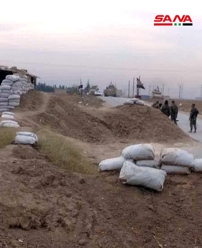 Militares sirios bloquean el camino de un convoy militar del ocupante estadounidense