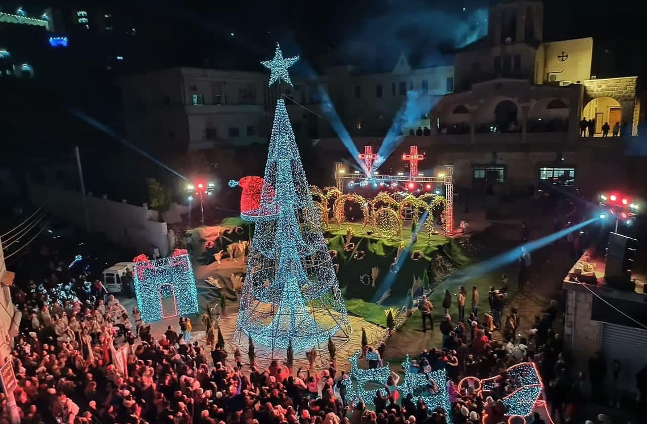 Iluminan luces del árbol de Navidad en Marmarita, Homs