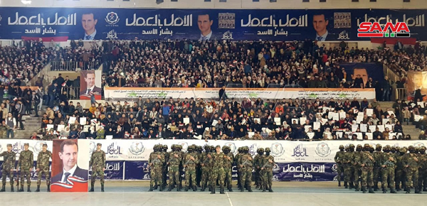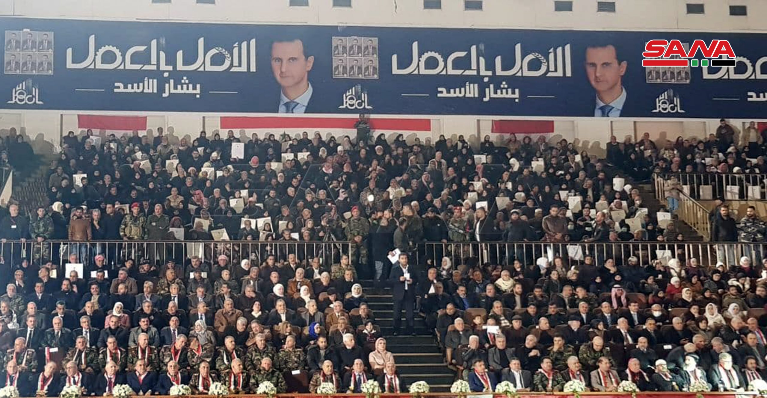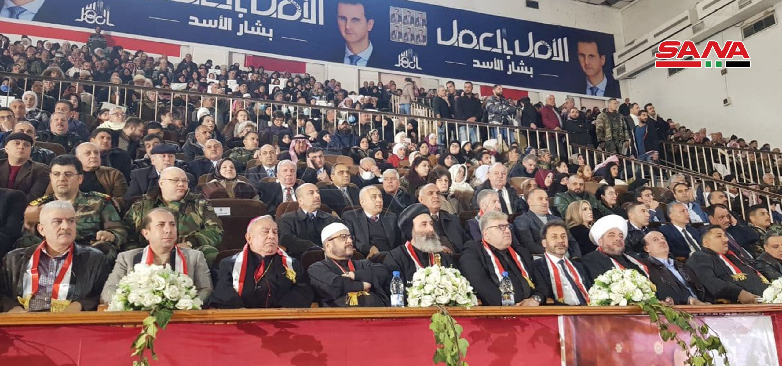 La celebración comenzó con un desfile militar de unidades del Ejército Árabe Sirio, luego, se proyectó un documental sobre la resiliencia de la población de Alepo frente al asedio y su victoria sobre el terrorismo.